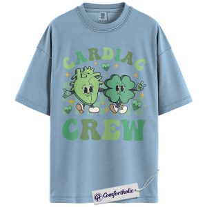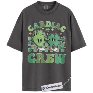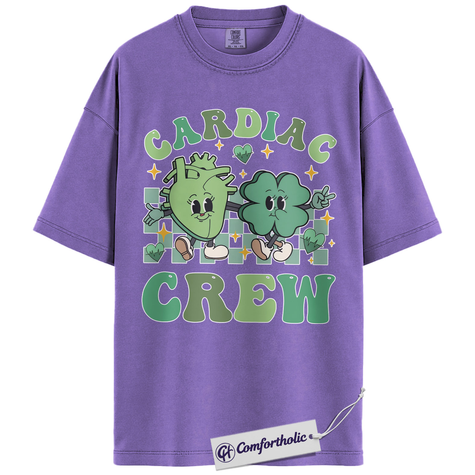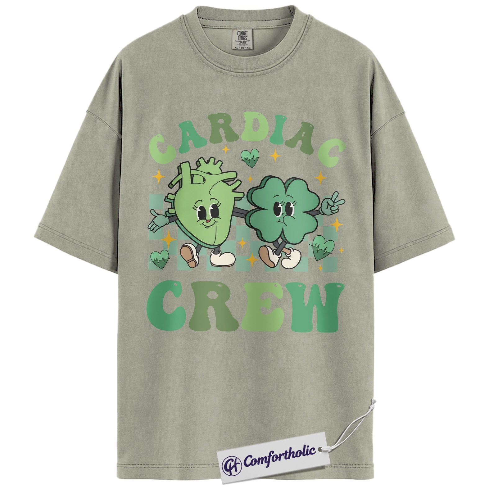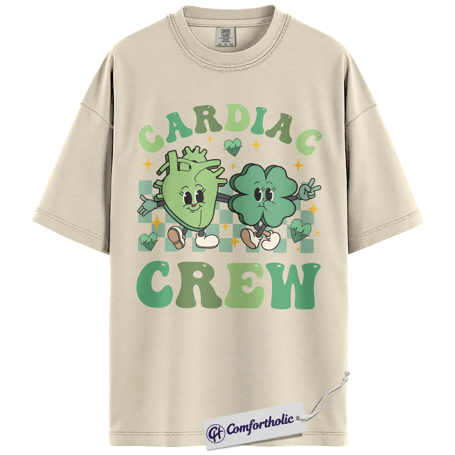 Cardiac Crew Nurse Shirt, Cute Heart & Shamrock Graphic Tee, Cardiology Nurse St Patrick’s Day T-Shirt, Gift for Nurses & Hospital Staff, Comfort Colors Shirt