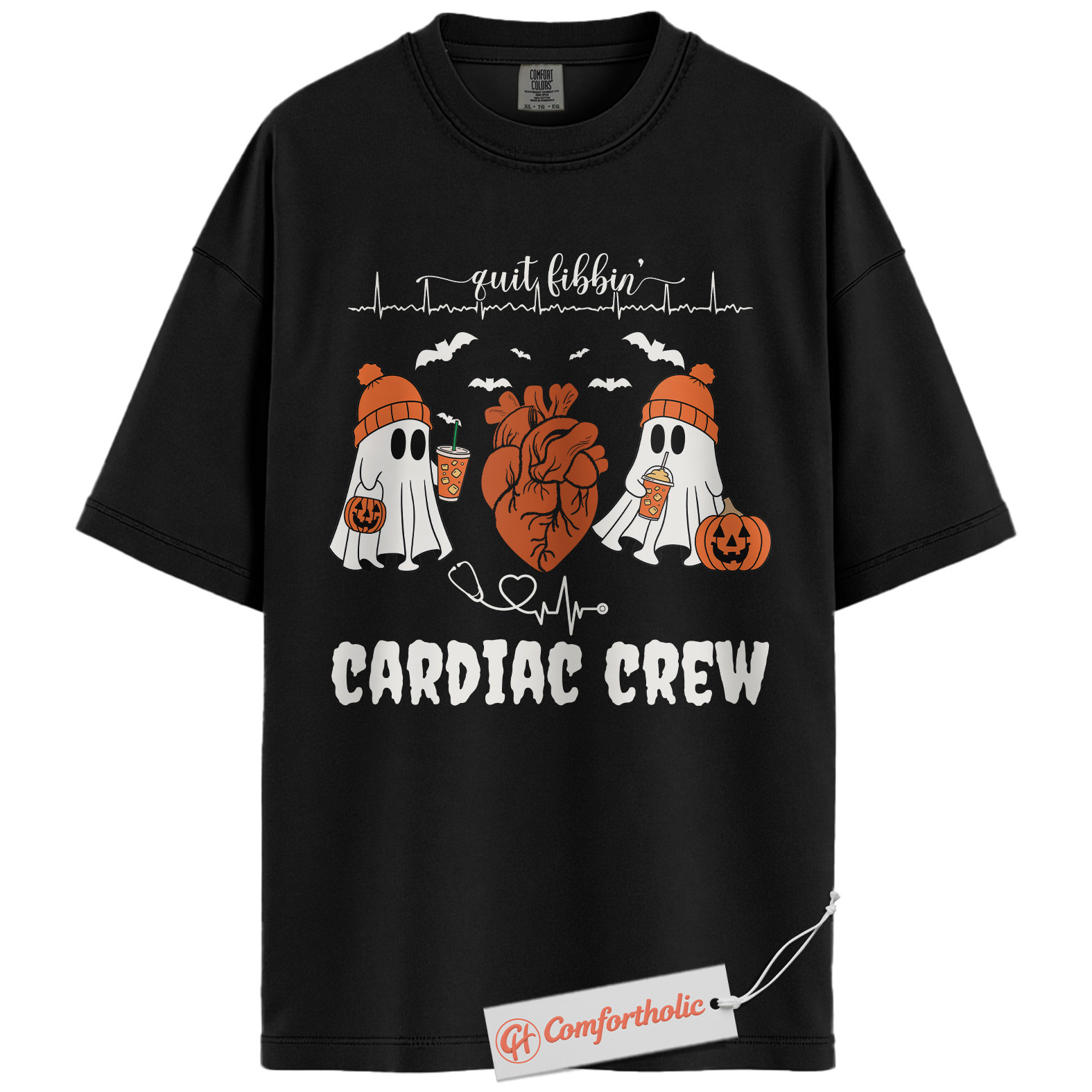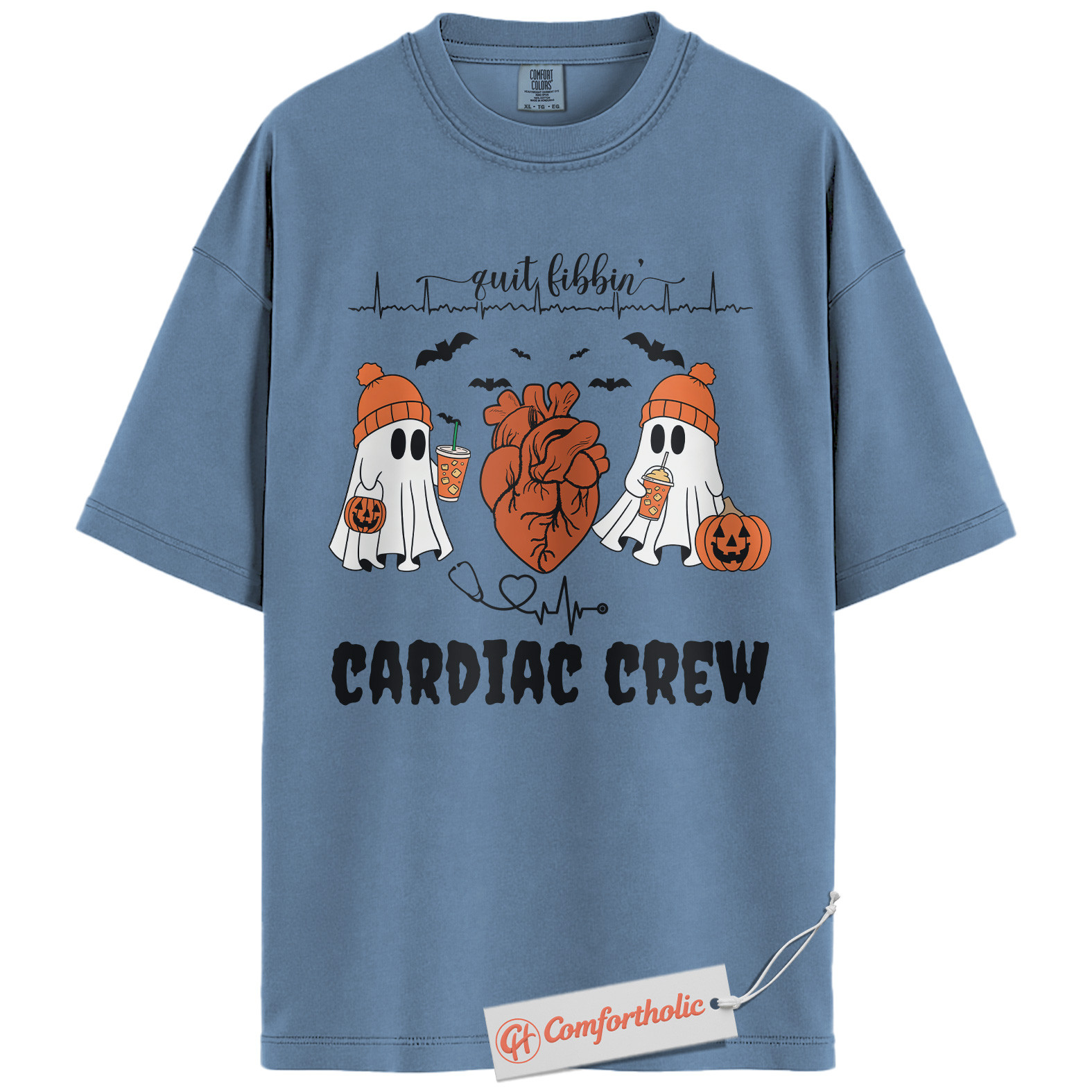 Cardiac Crew Shirt, Funny Cardiology Halloween T-Shirt, Quit Fibbin Ghost Nurse Graphic Tee, Medical Healthcare Comfort Colors Shirt