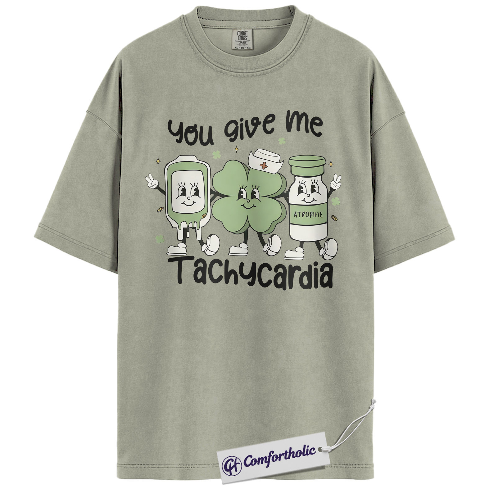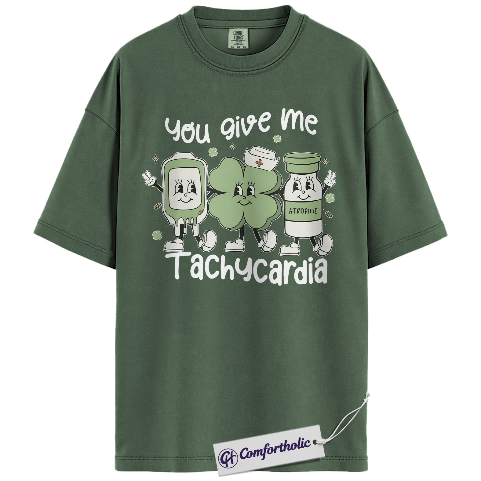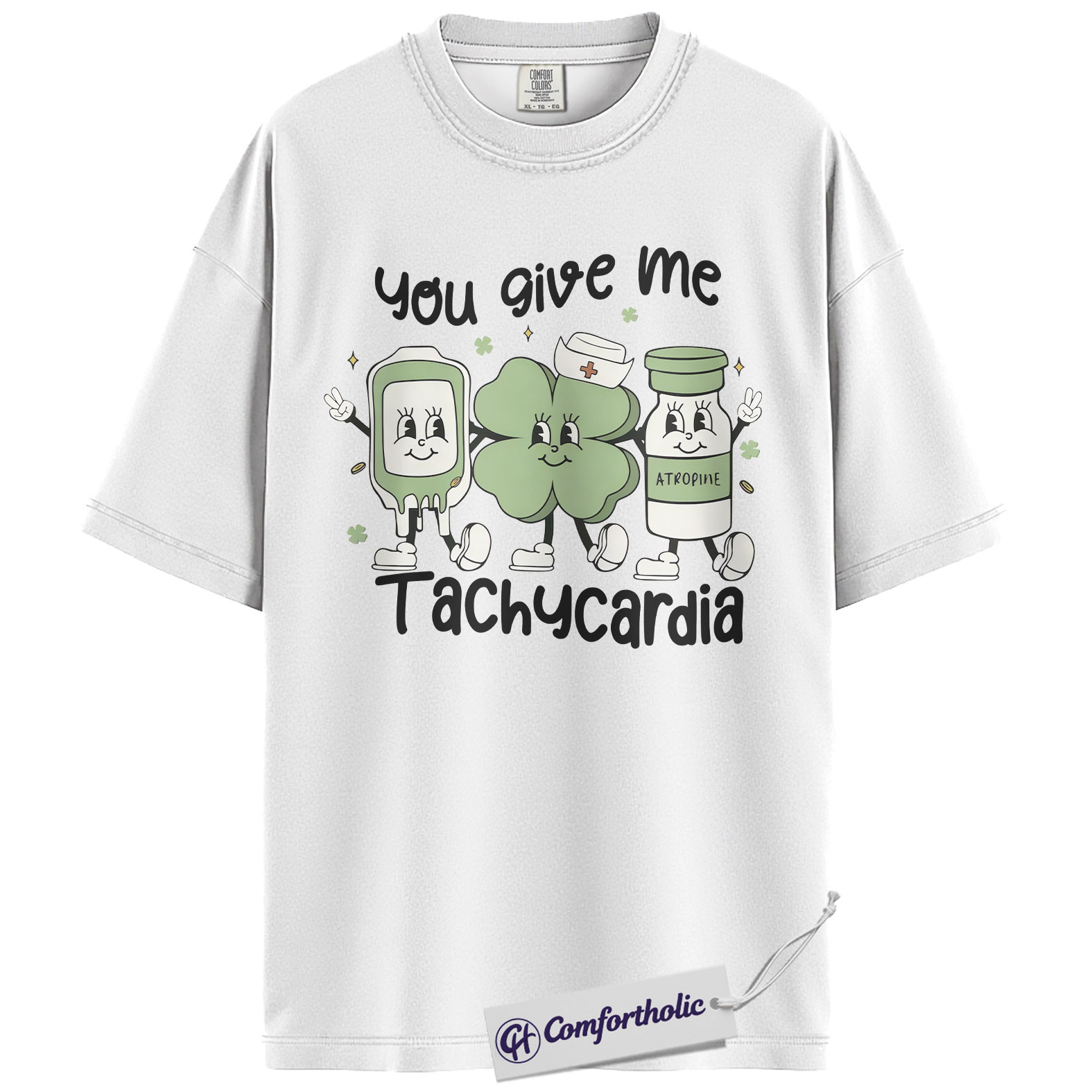 Cardiac Nurse Tachycardia Shirt, You Give Me Tachycardia Atropine Shamrock Graphic Tee, Funny RN T-Shirt, St Patrick’s Day Gift for Nurses, Comfort Colors Shirt