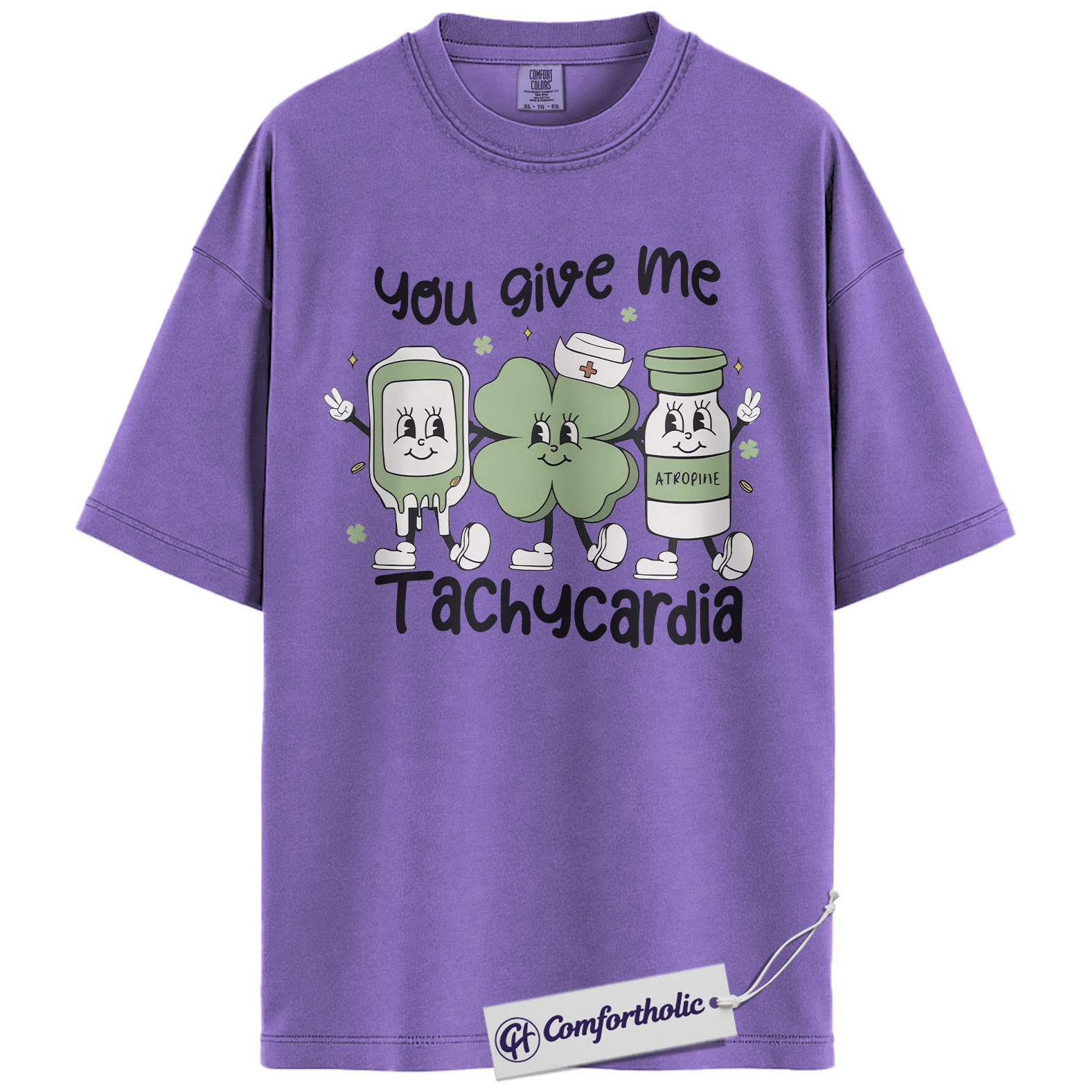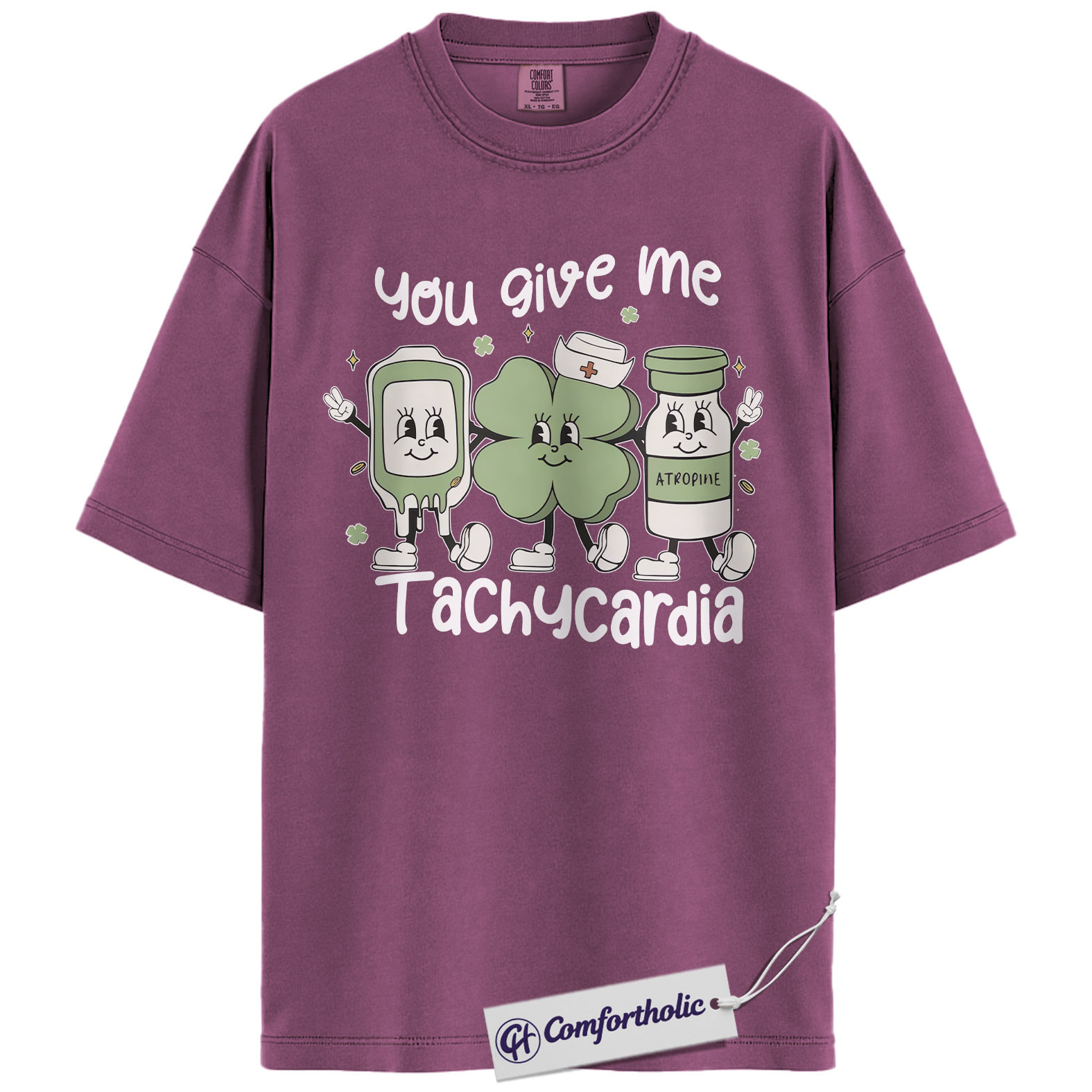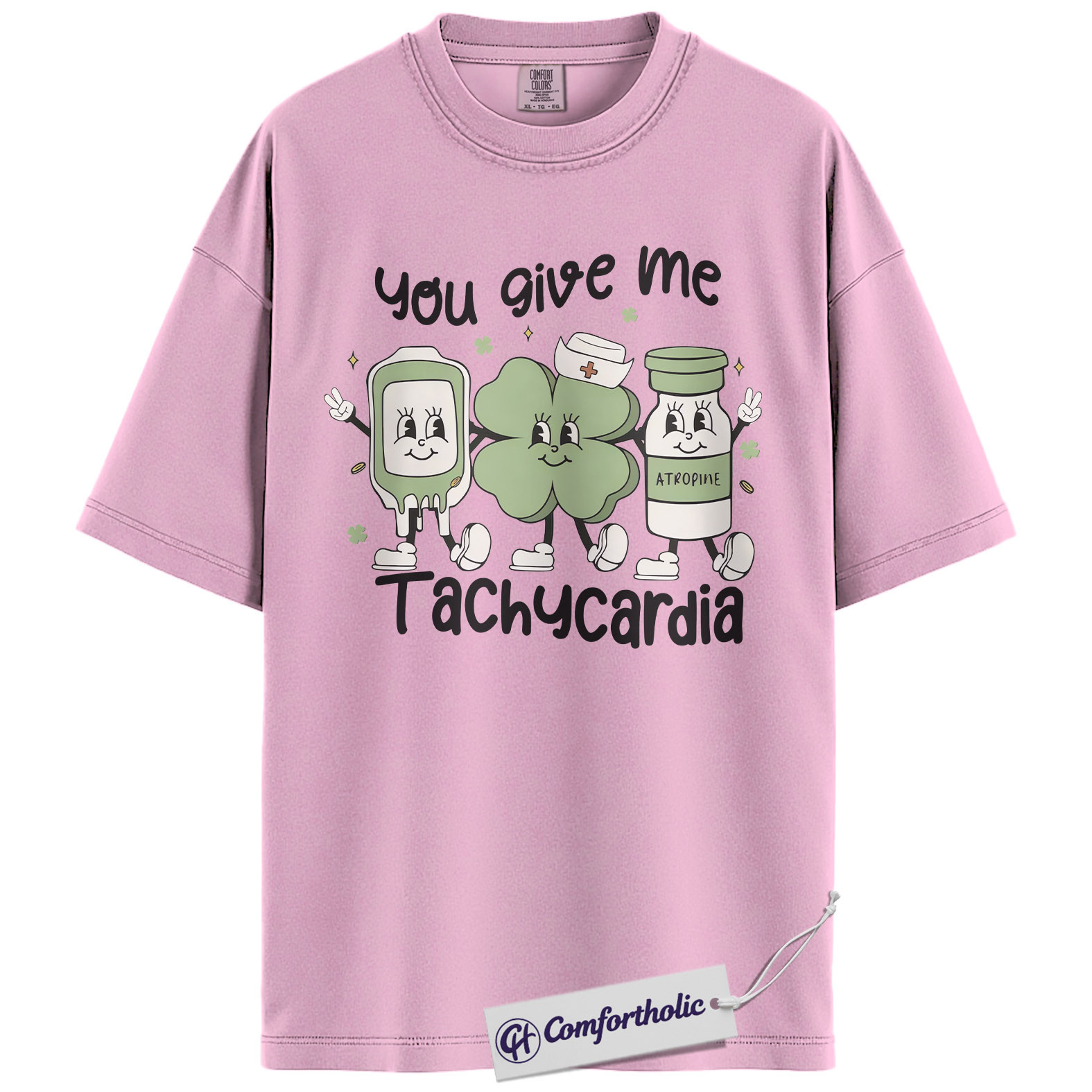 Cardiac Nurse Tachycardia Shirt, You Give Me Tachycardia Atropine Shamrock Graphic Tee, Funny RN T-Shirt, St Patrick’s Day Gift for Nurses, Comfort Colors Shirt