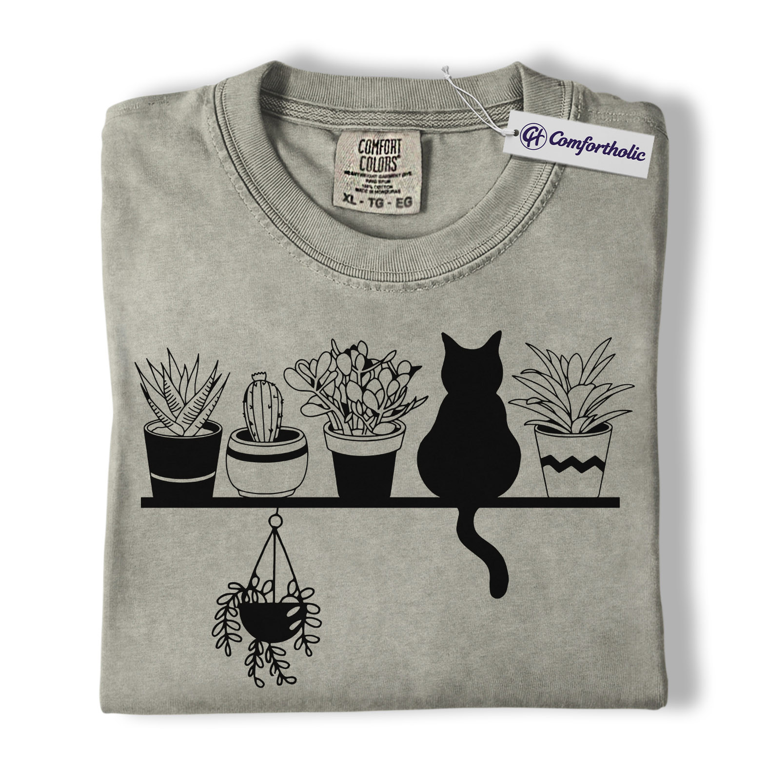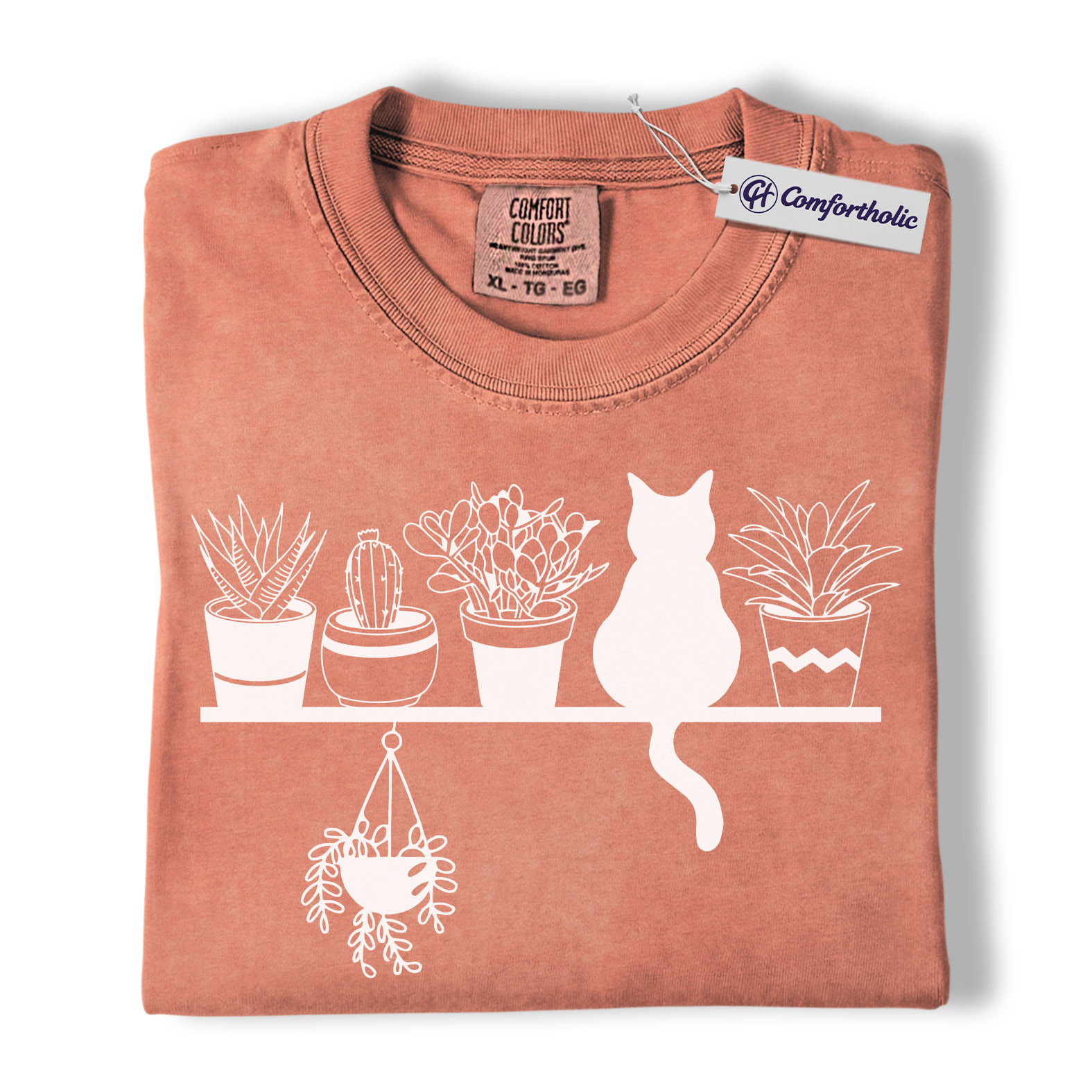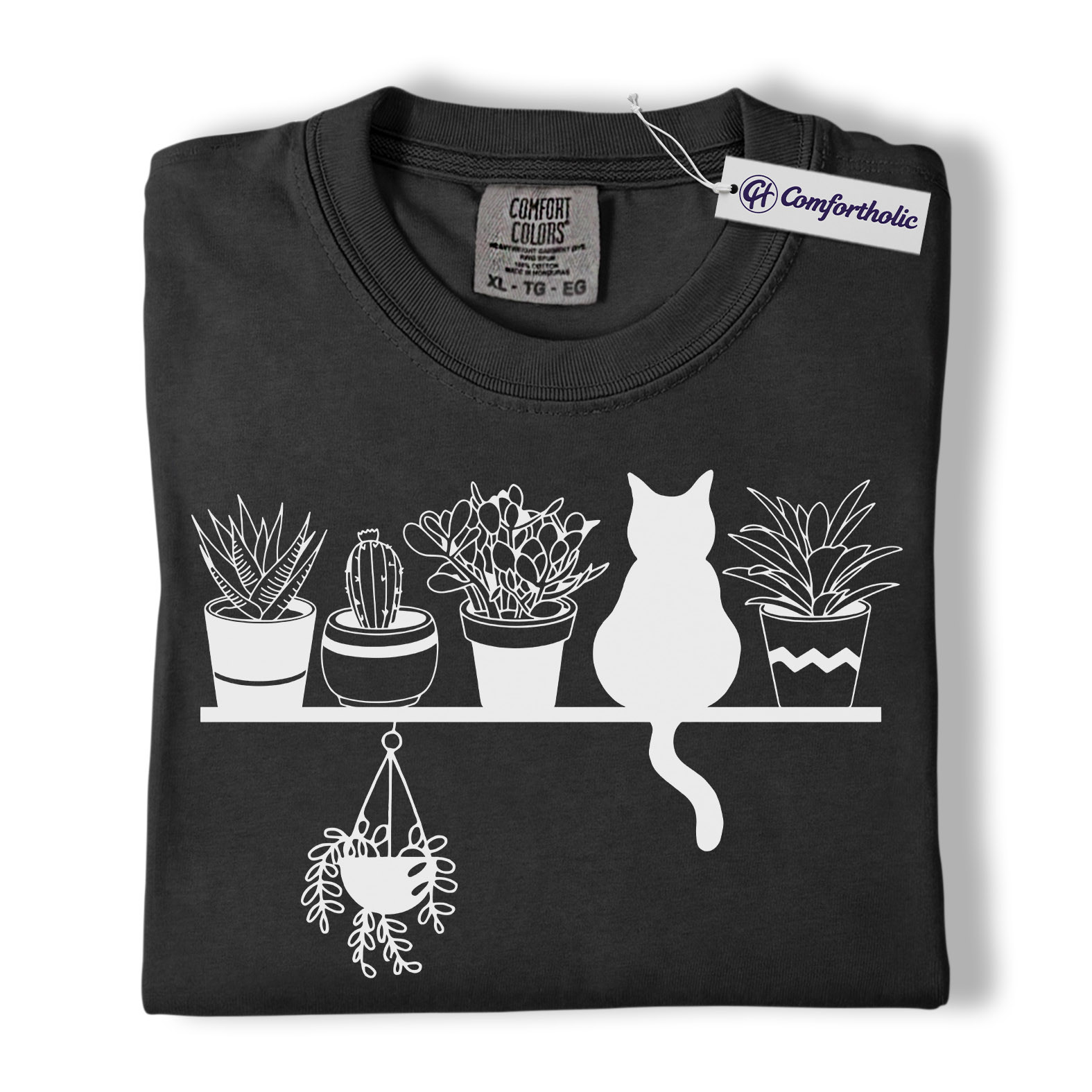 Cat and Plant Lover Shirt, Cute Cat and Houseplants Shelf Graphic Tee, Plant Lady T-Shirt for Cat Moms, Gardening Gift for Women, Comfort Colors Shirt