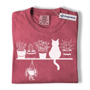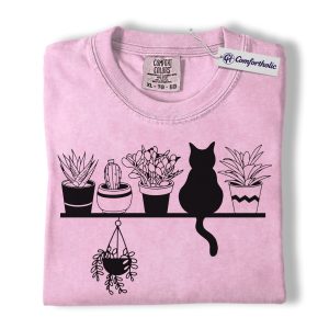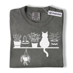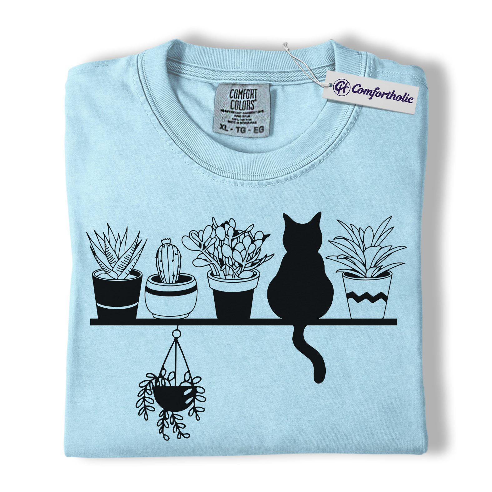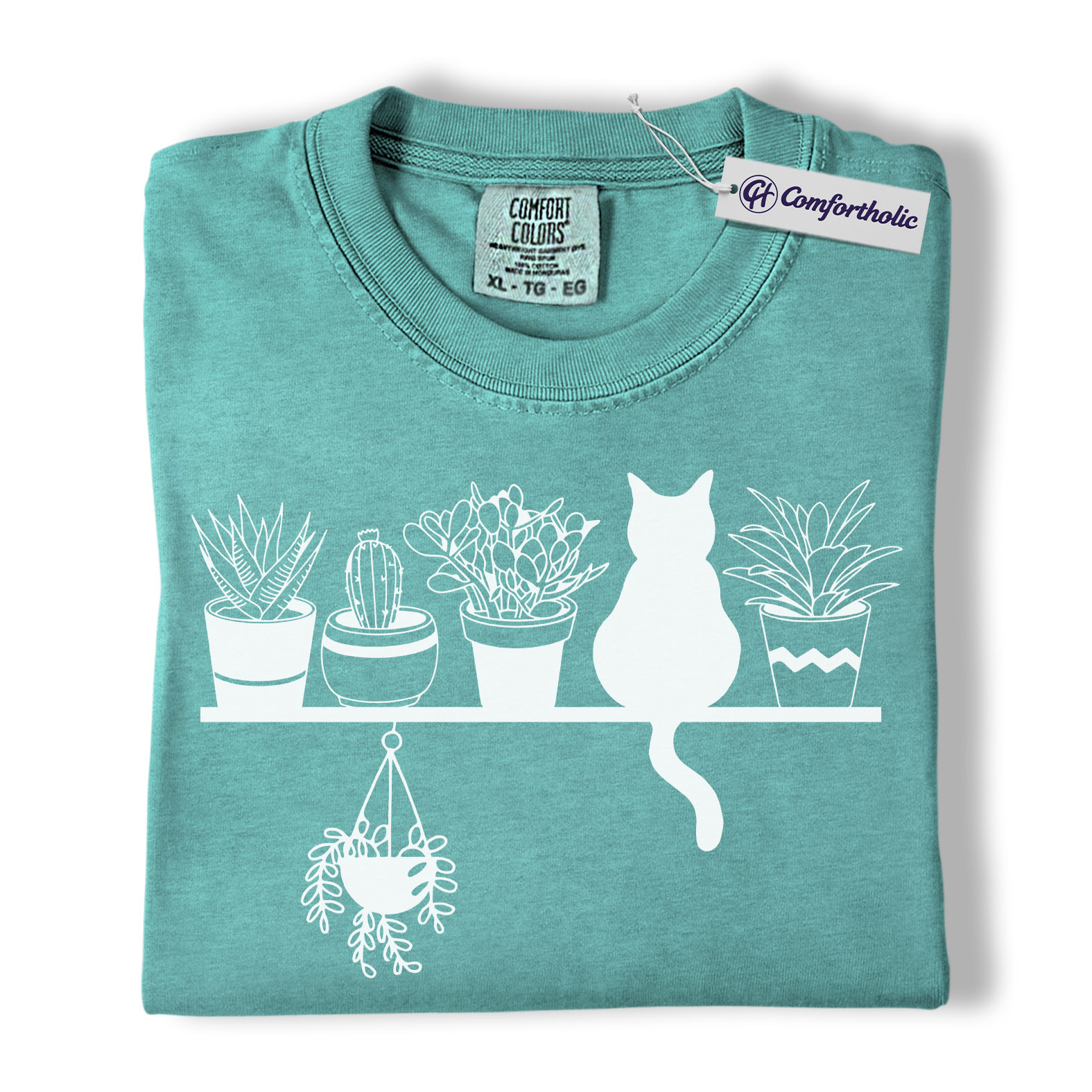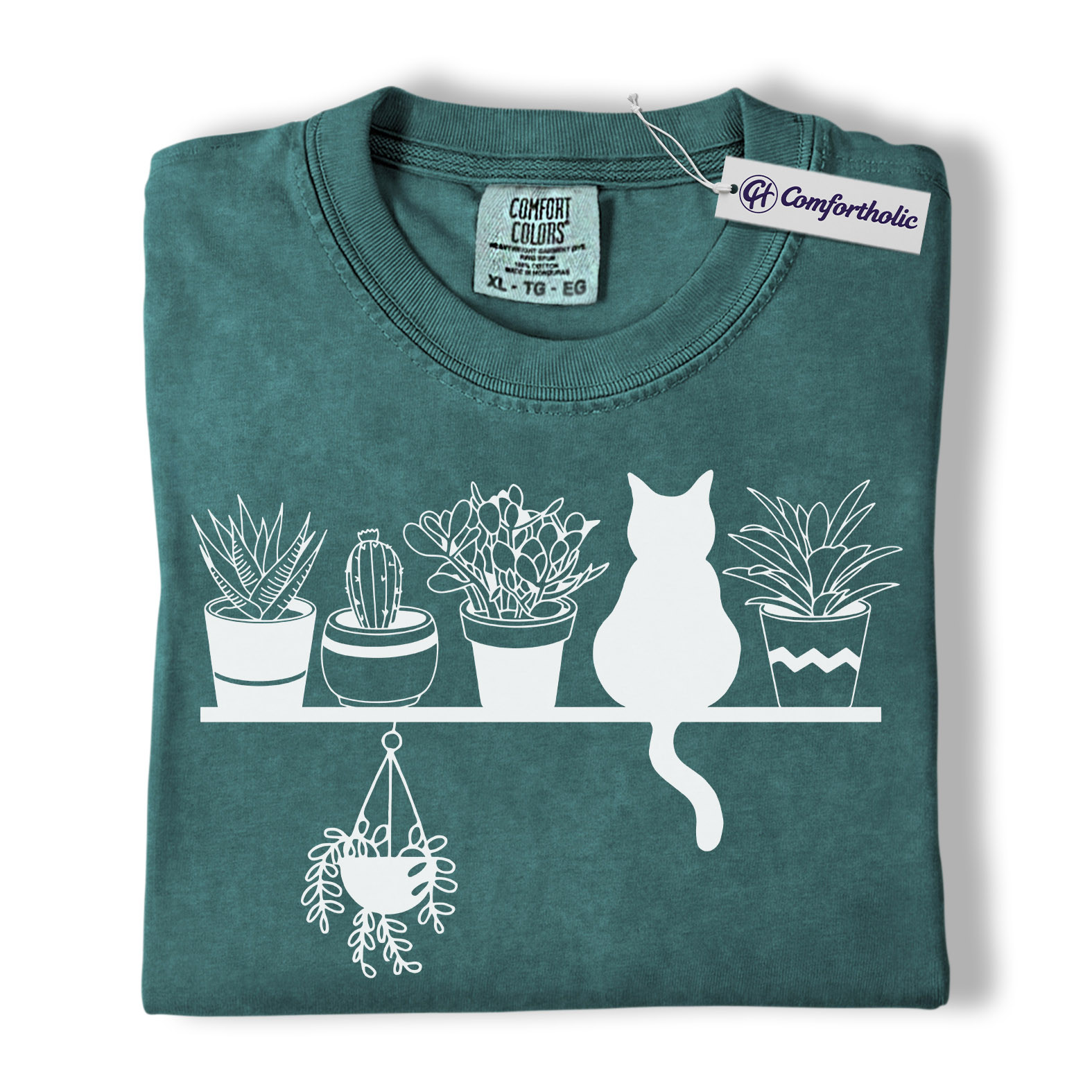 Cat and Plant Lover Shirt, Cute Cat and Houseplants Shelf Graphic Tee, Plant Lady T-Shirt for Cat Moms, Gardening Gift for Women, Comfort Colors Shirt