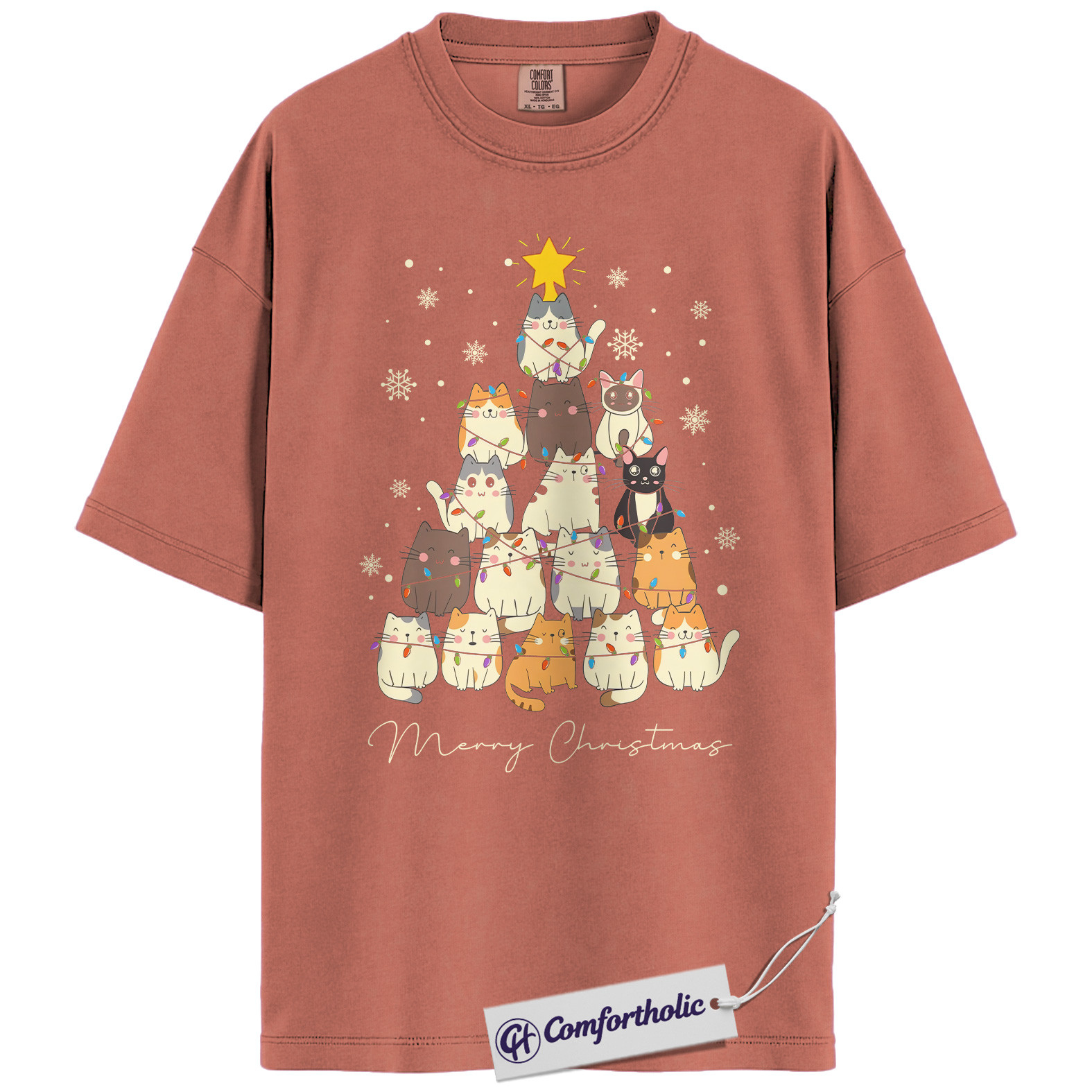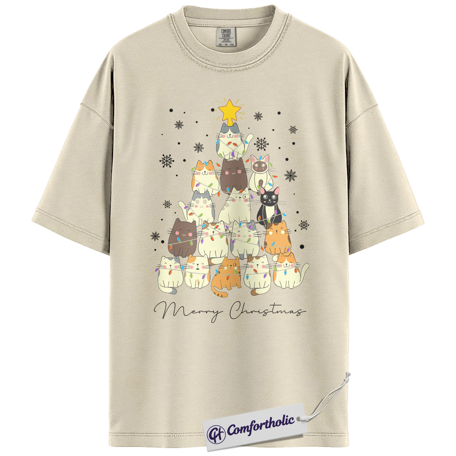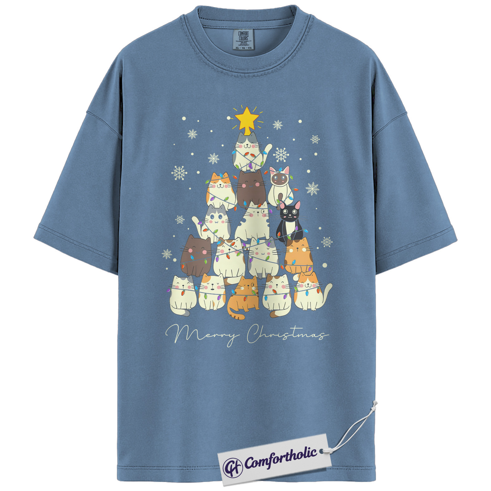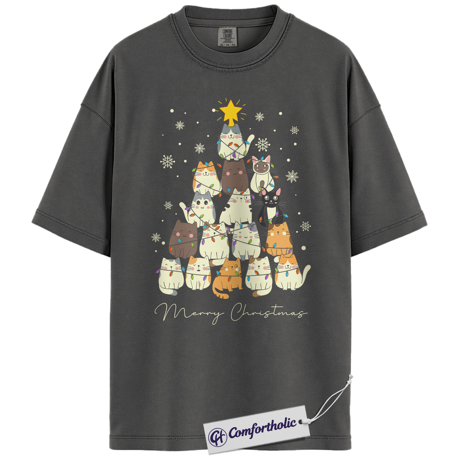 Cat Christmas Tree Shirt, Funny Holiday Cat Lover T-Shirt, Cute Festive Graphic Tee, Merry Christmas Gift for Pet Owners, Christmas Comfort Colors Shirt