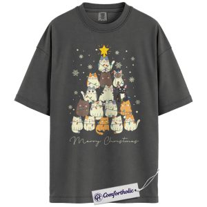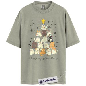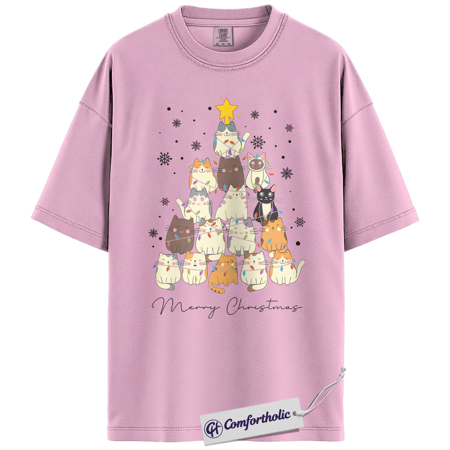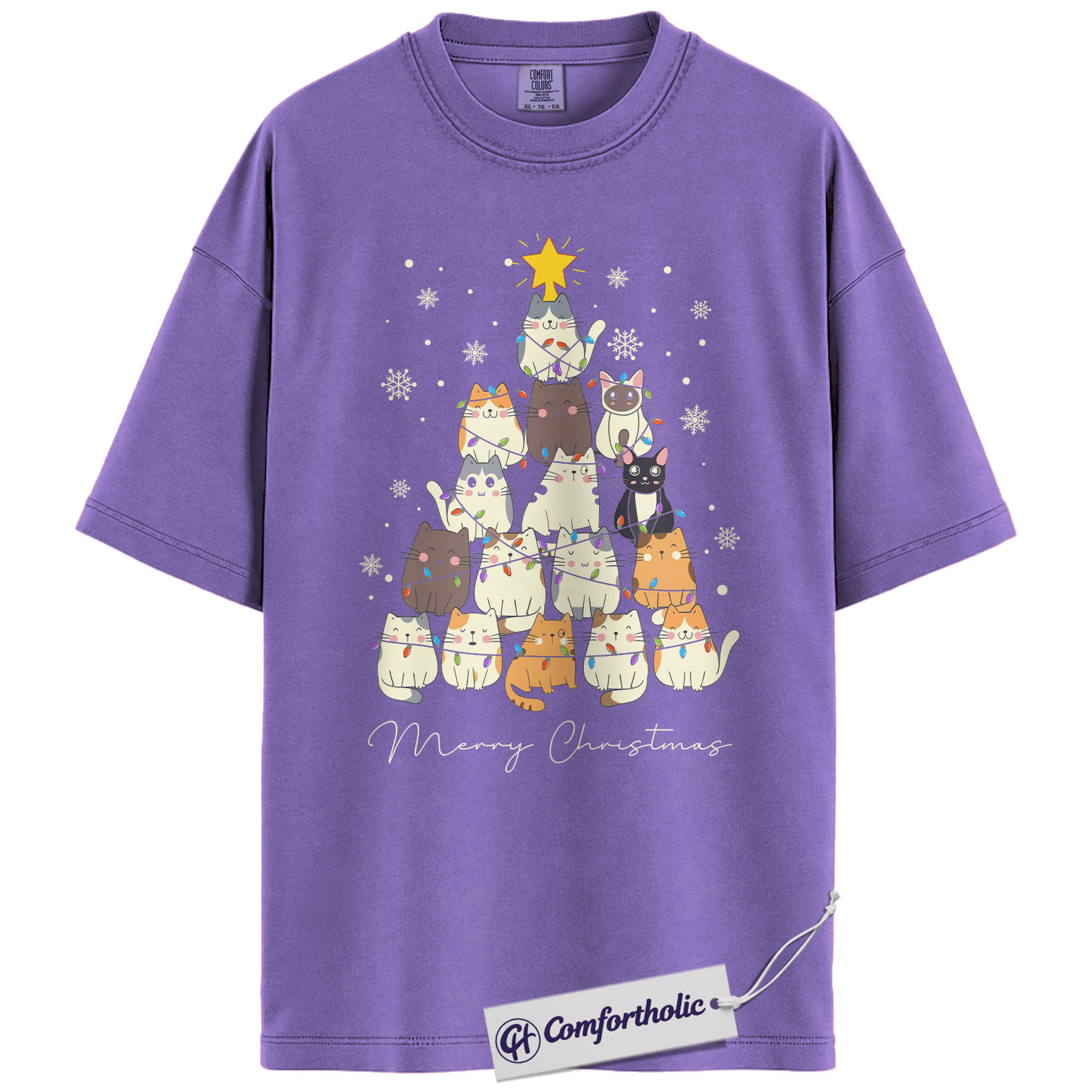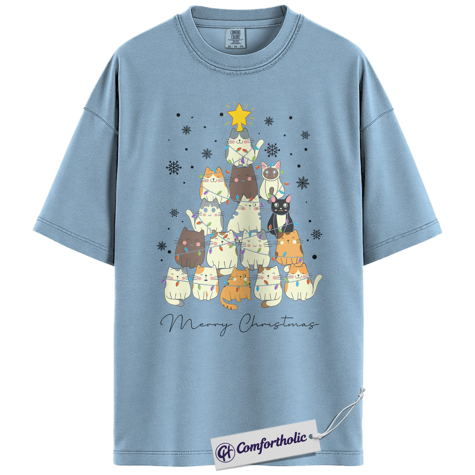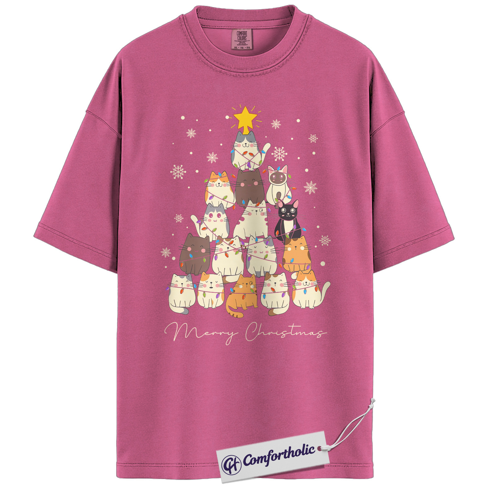 Cat Christmas Tree Shirt, Funny Holiday Cat Lover T-Shirt, Cute Festive Graphic Tee, Merry Christmas Gift for Pet Owners, Christmas Comfort Colors Shirt