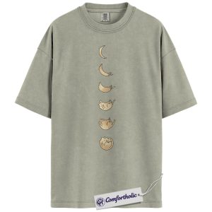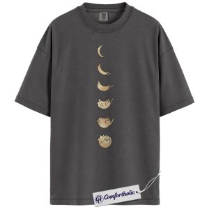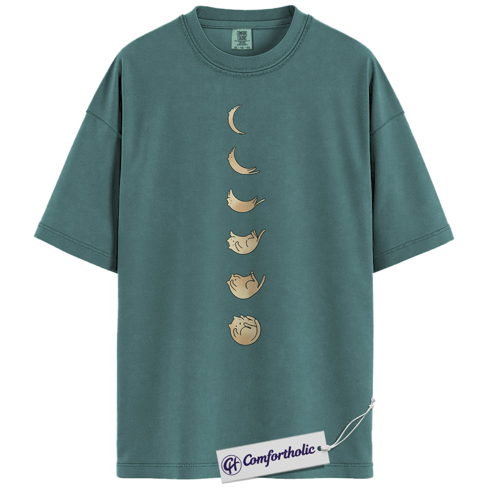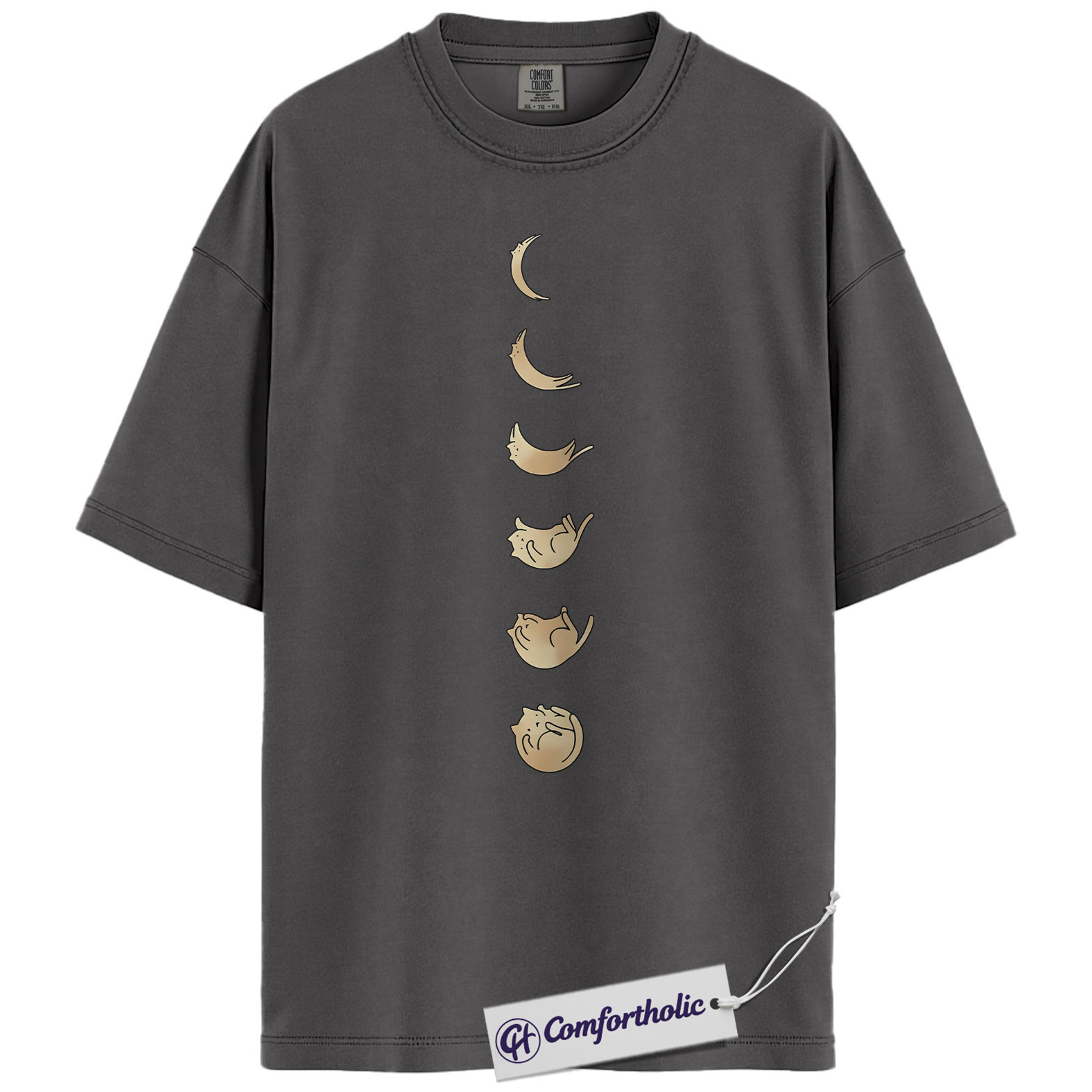 Cat Moon Phases Shirt, Minimalist Celestial Cat Graphic Tee, Witchy Cat Lover T-Shirt, Cute Gift for Pet Moms, Comfort Colors Shirt