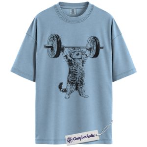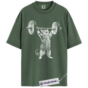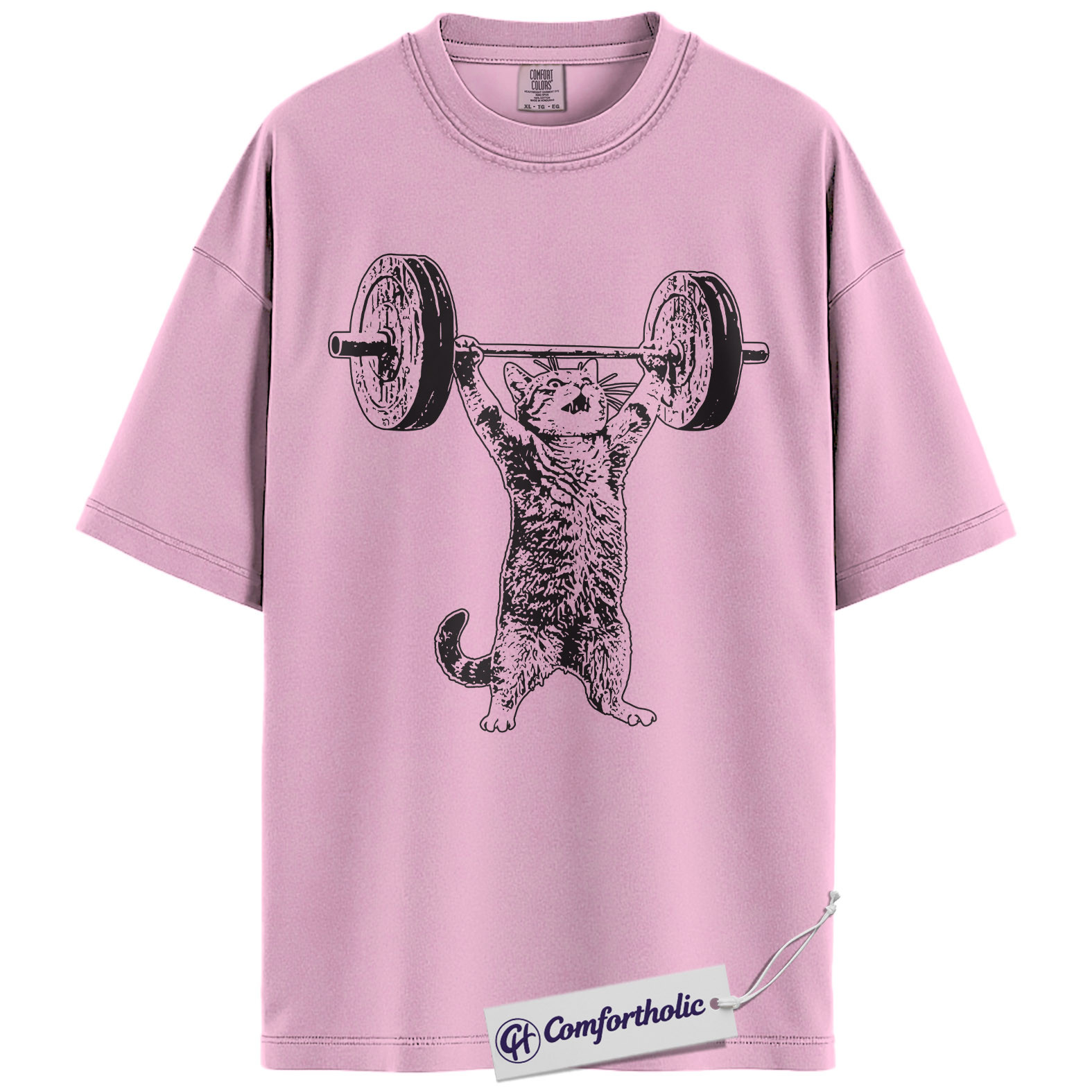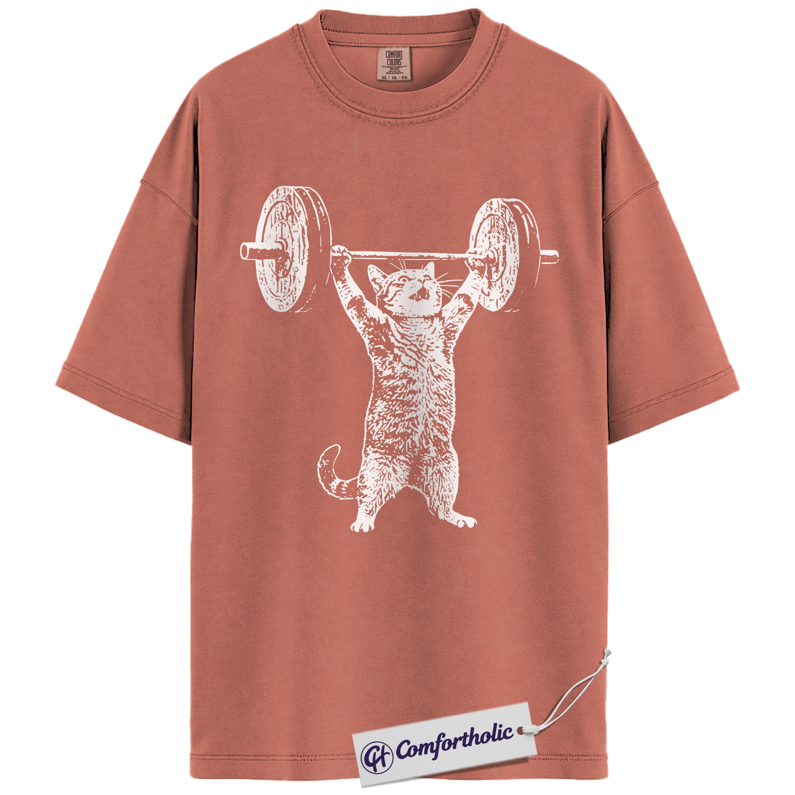 Cat Weightlifting Shirt, Funny Cat Gym Graphic Tee, Workout Fitness Cat T-Shirt, Cute Gift for Cat and Gym Lovers, Comfort Colors Shirt