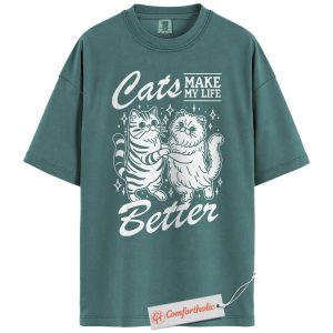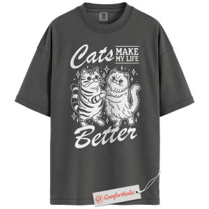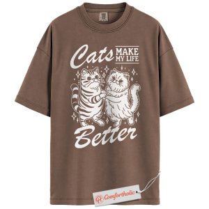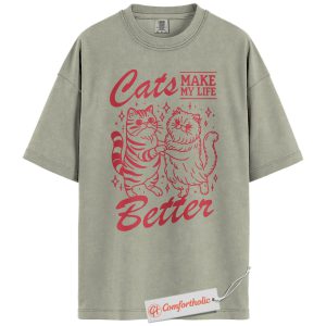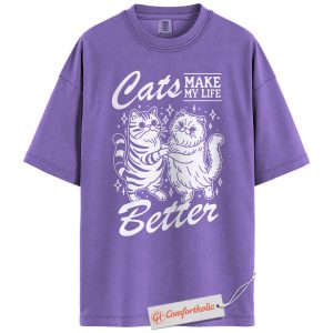 Cats Make My Life Better Shirt, Cute Cat Lover T-Shirt, Whimsical Kitty Graphic Tee, Funny Gift for Feline Owners, Aesthetic Pet Comfort Colors Shirt