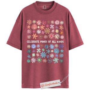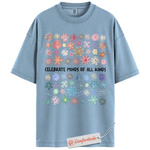 Celebrate Minds of All Kinds Shirt, Neurodiversity Awareness T-Shirt, Mental Health Positivity Tee, Colorful Flower Comfort Colors Shirt