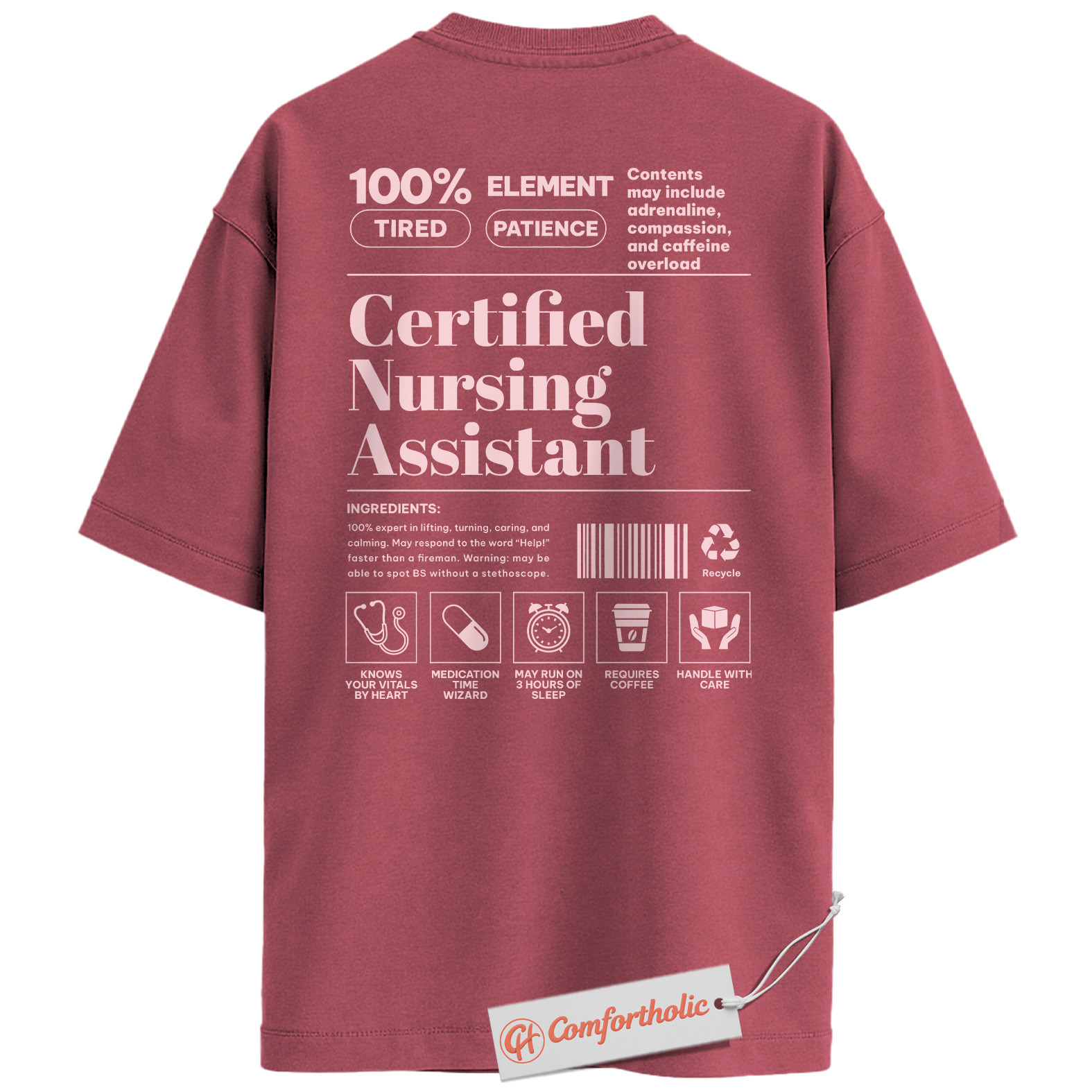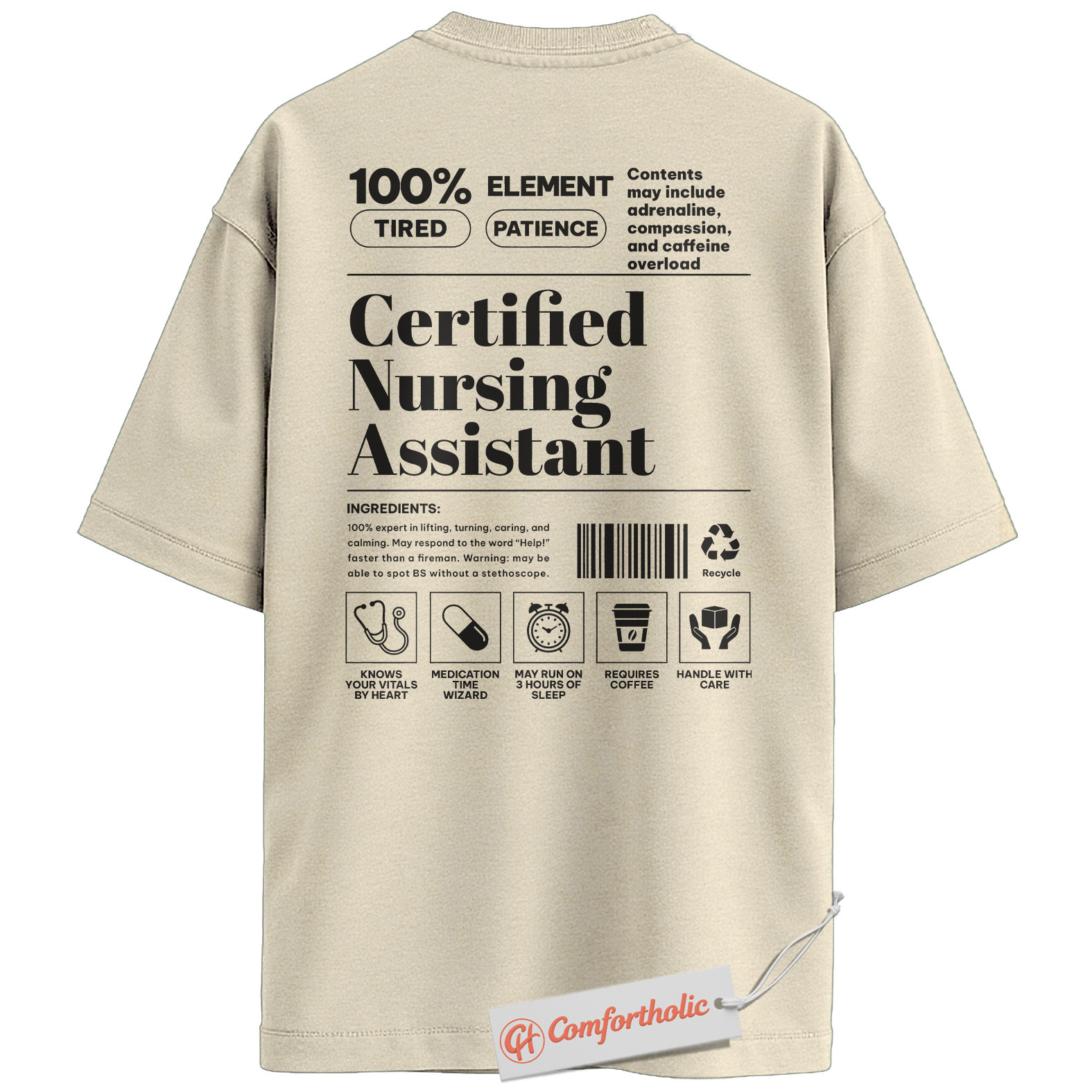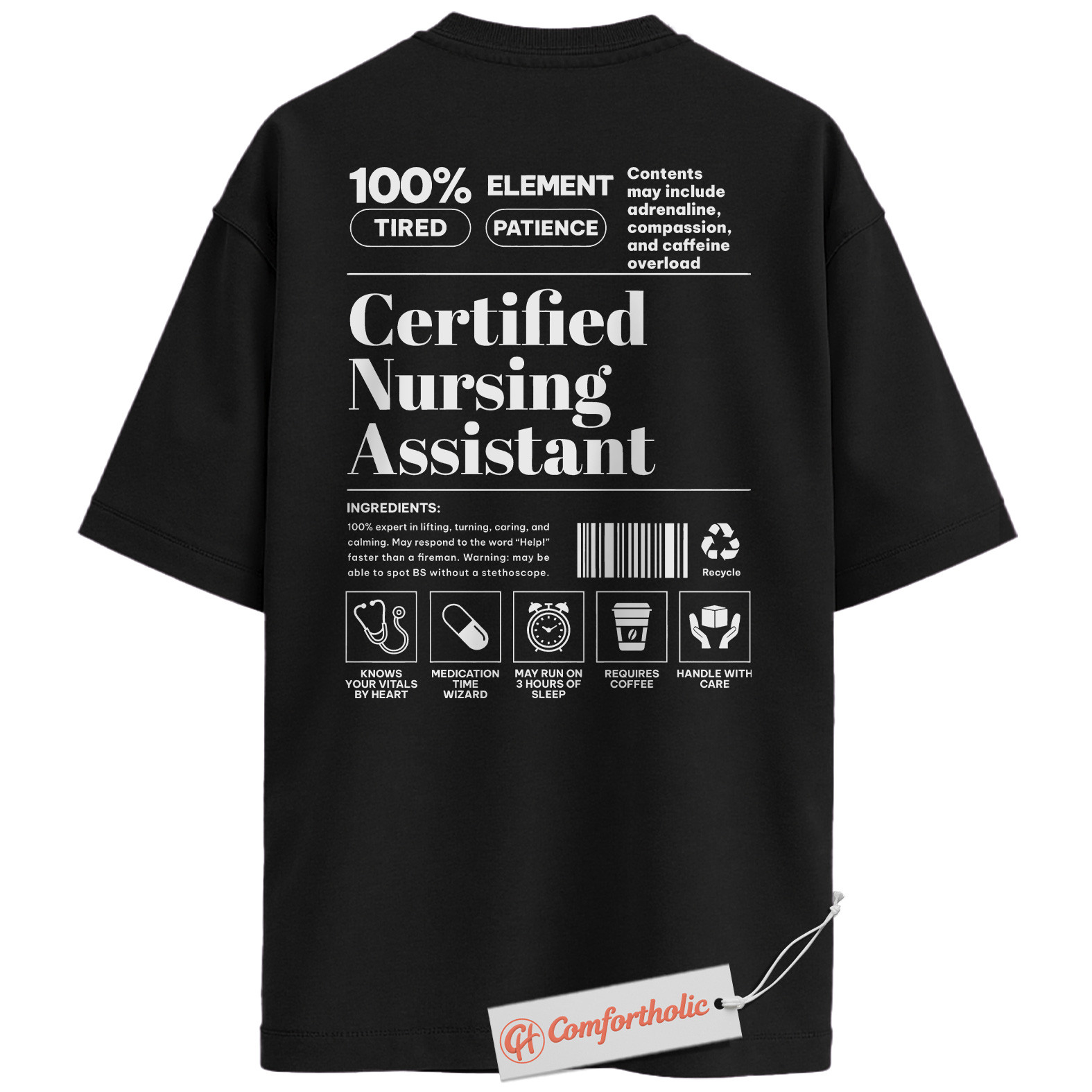 Certified Nursing Assistant Shirt, Funny CNA Nutrition Facts T-Shirt, Healthcare Worker Graphic Tee, Cute CNA Comfort Colors Back Print Shirt