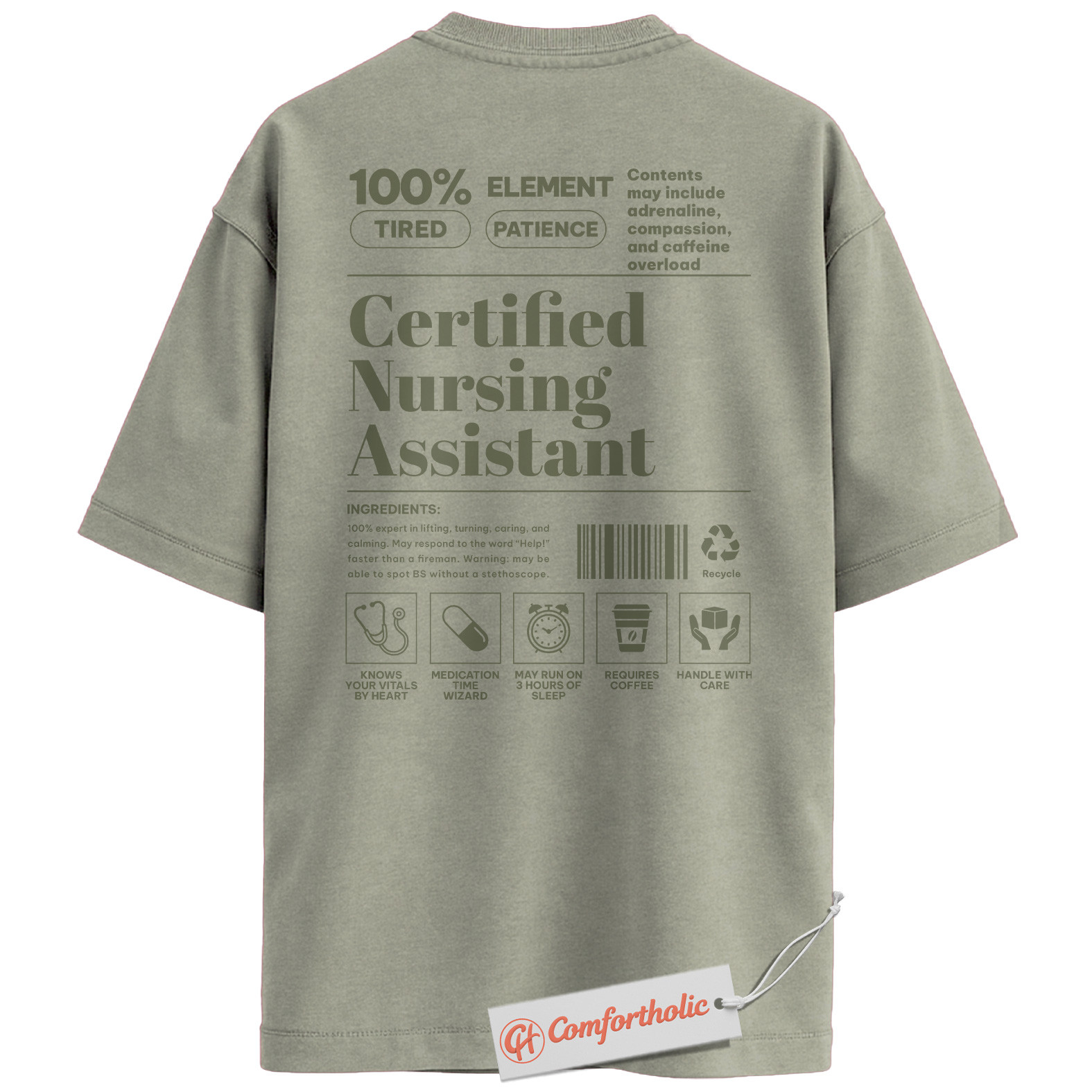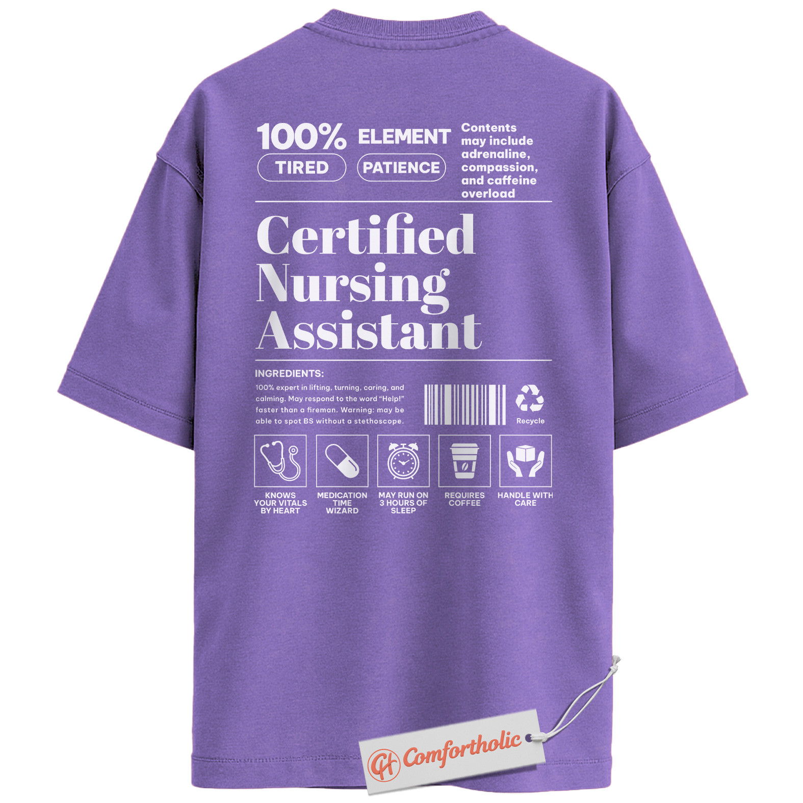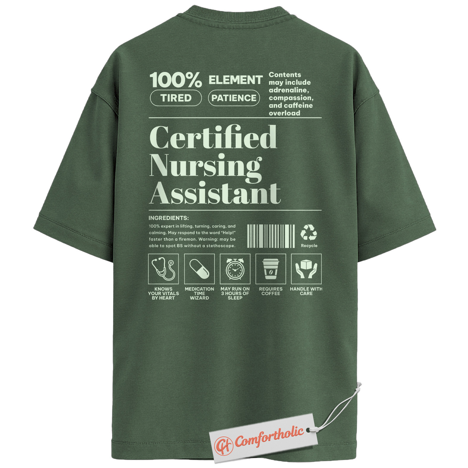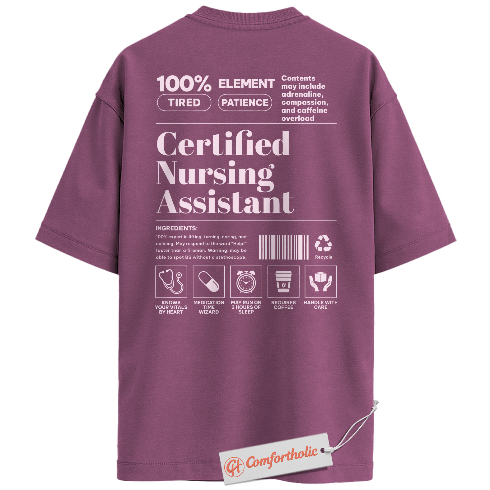 Certified Nursing Assistant Shirt, Funny CNA Nutrition Facts T-Shirt, Healthcare Worker Graphic Tee, Cute CNA Comfort Colors Back Print Shirt