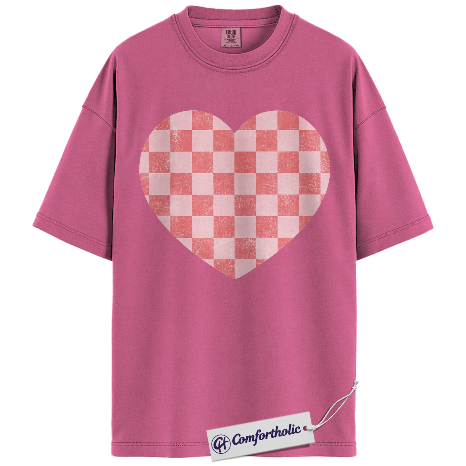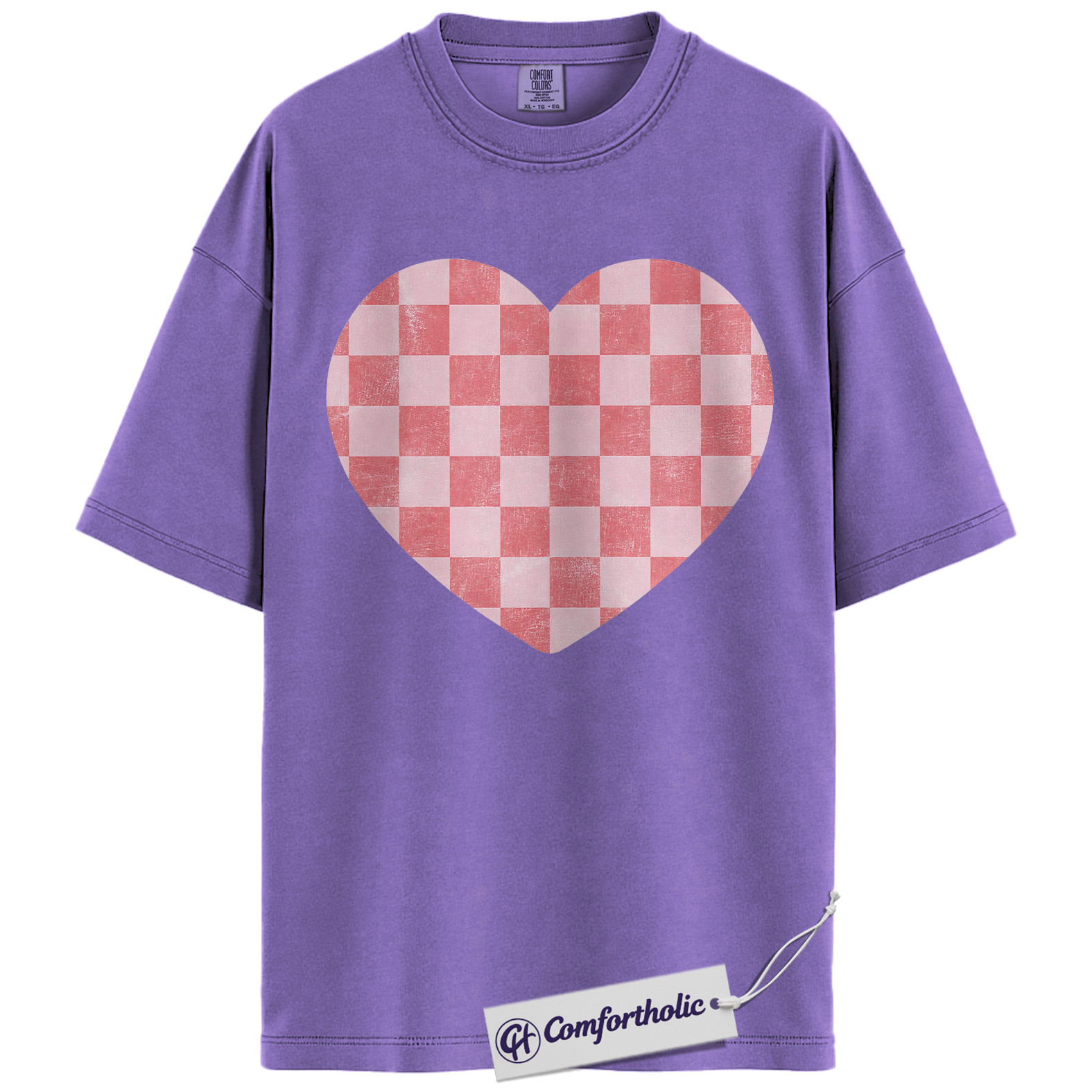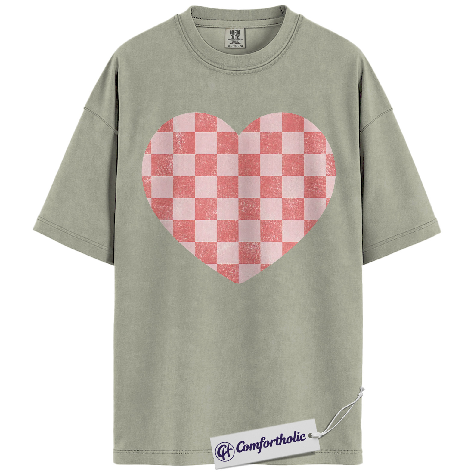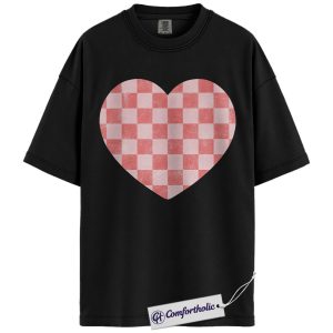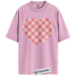 Checkerboard Heart Shirt, Retro Aesthetic Checkered Graphic Tee, Cute Valentine’s Day T-Shirt for Women, Pastel Soft Girl Gift, Comfort Colors Shirt