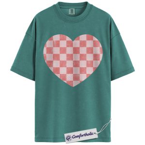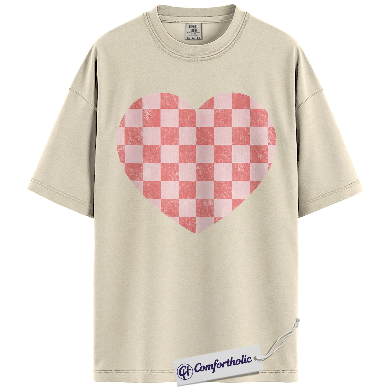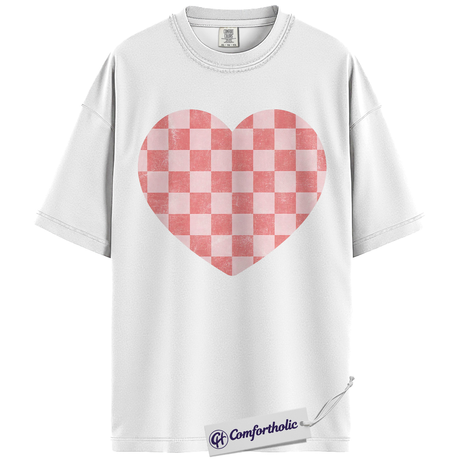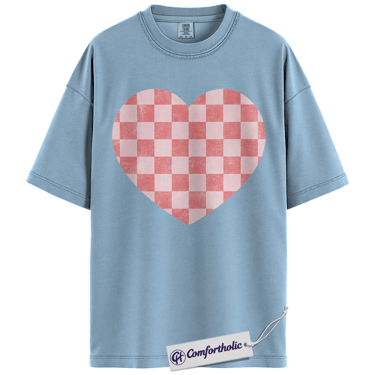 Checkerboard Heart Shirt, Retro Aesthetic Checkered Graphic Tee, Cute Valentine’s Day T-Shirt for Women, Pastel Soft Girl Gift, Comfort Colors Shirt
