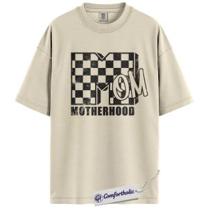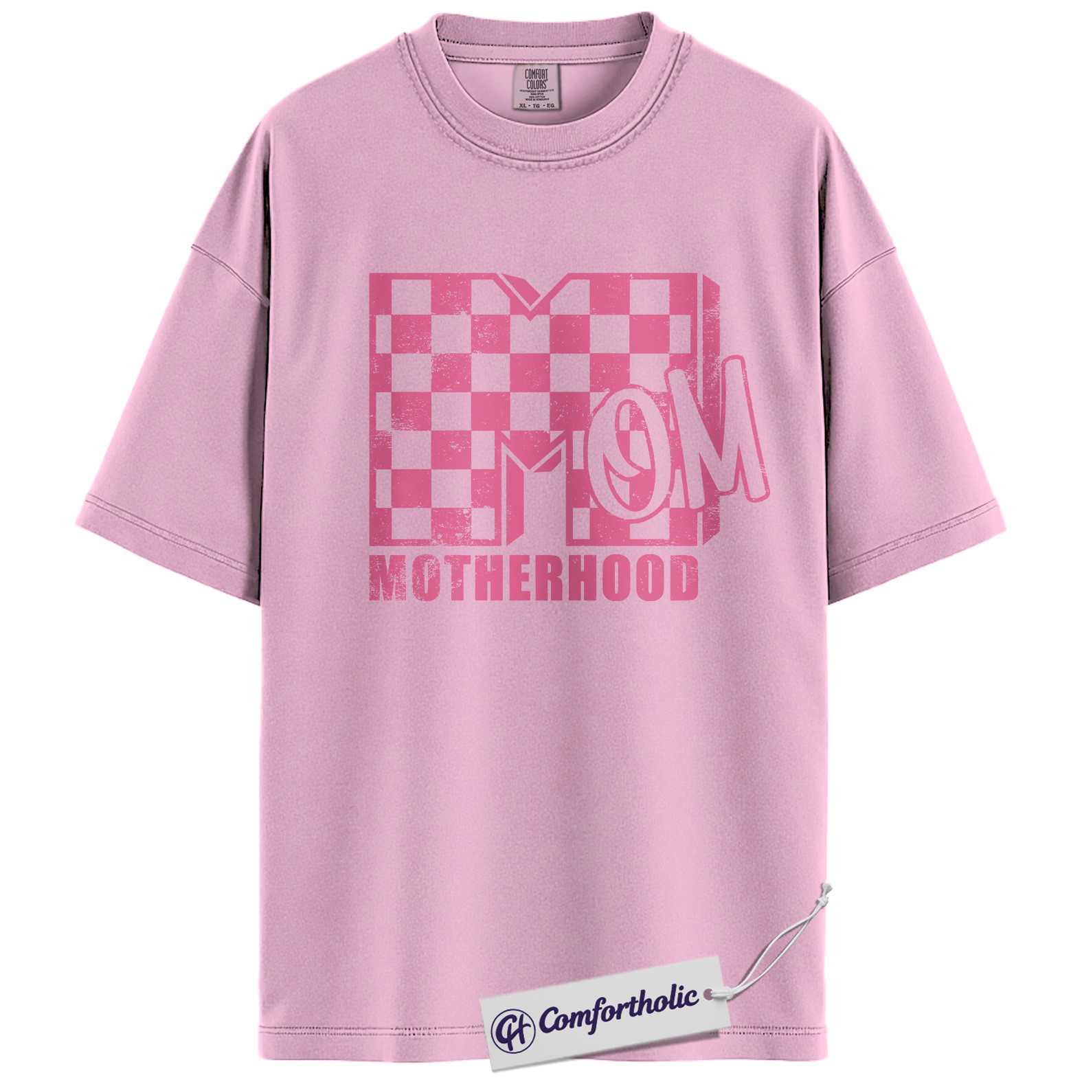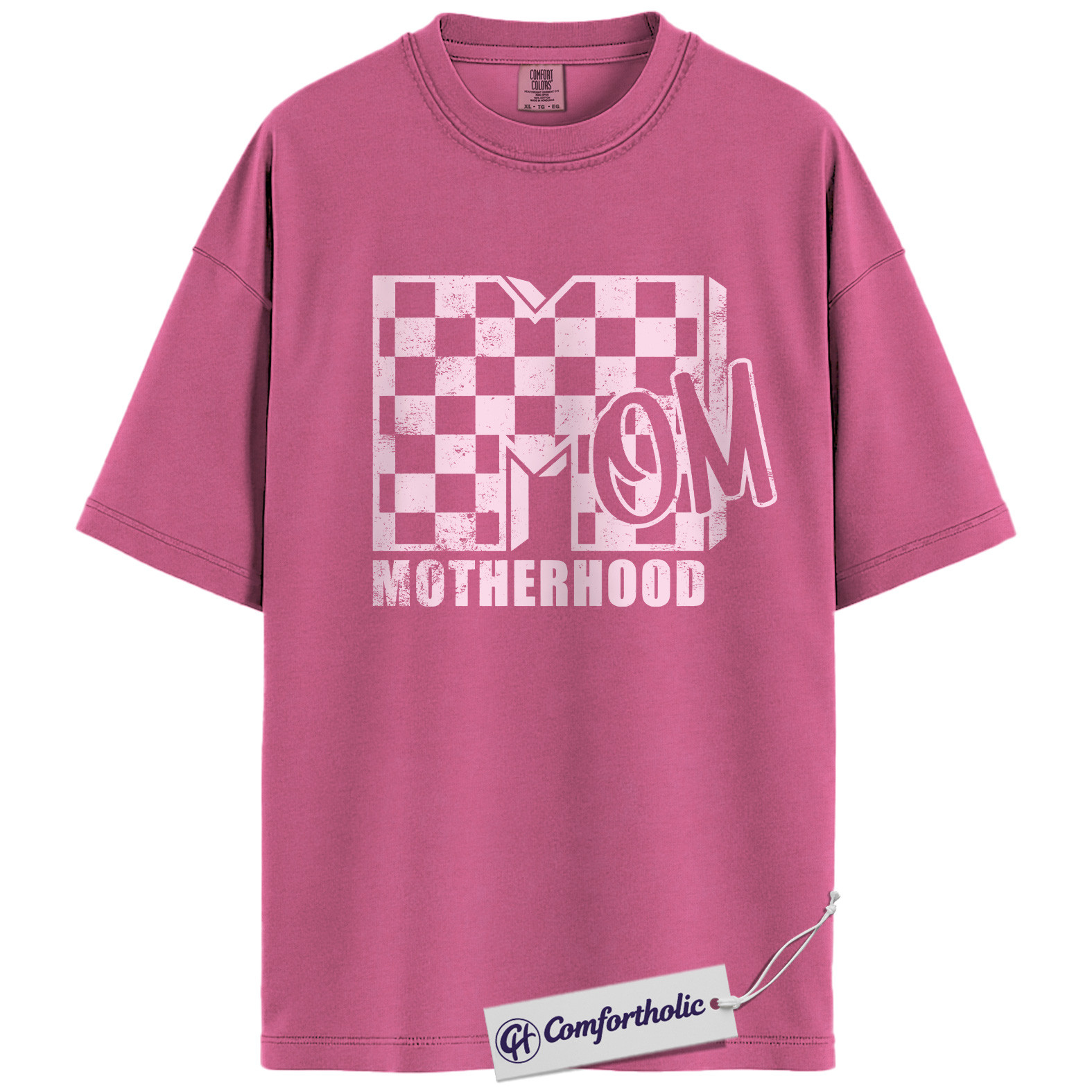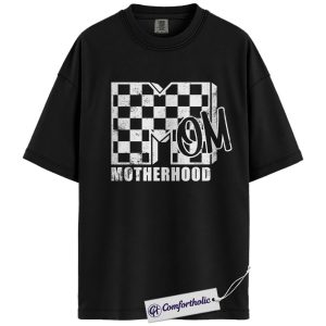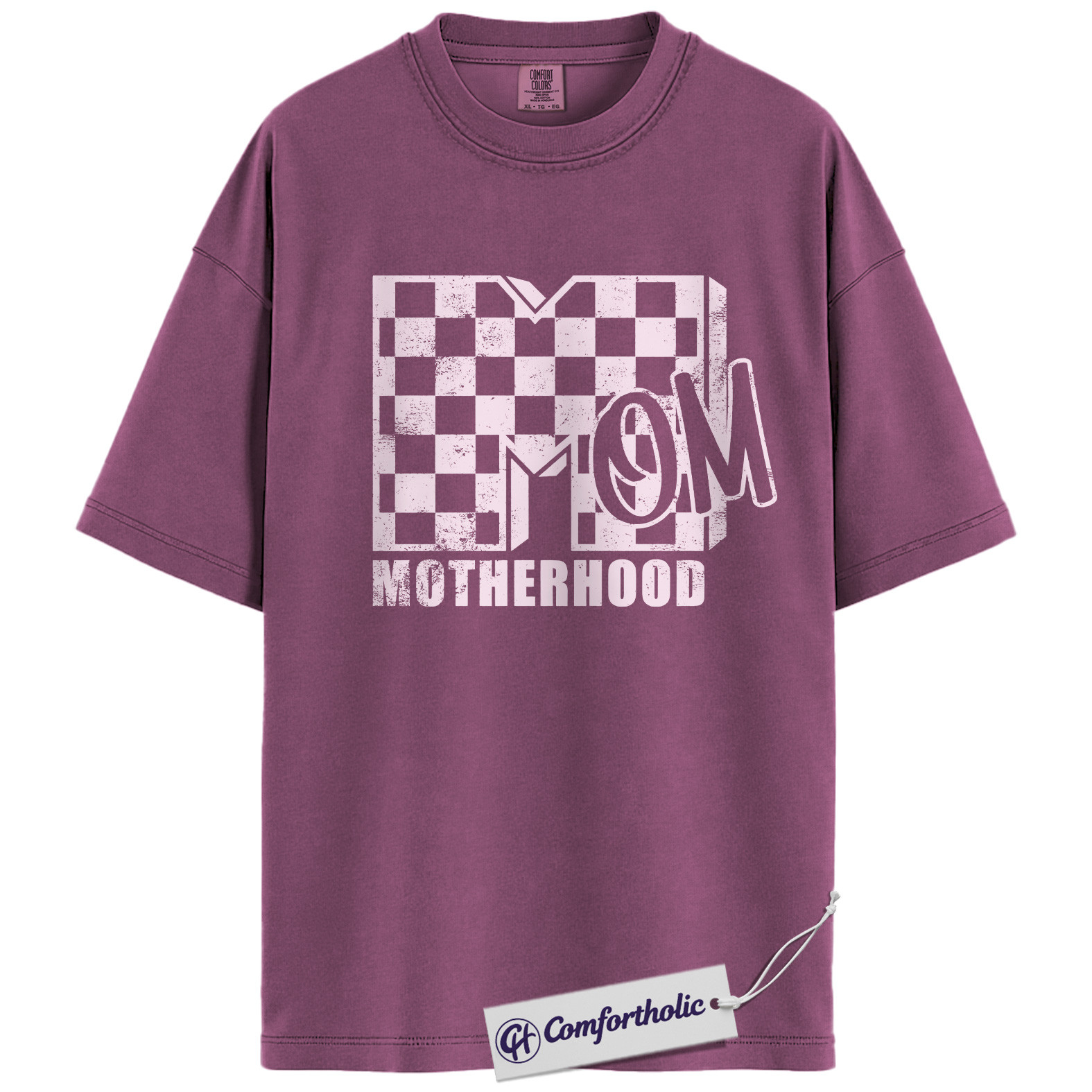 Checkerboard Mom Shirt, Trendy Motherhood T-Shirt, Minimalist Mom Life Graphic Tee, Cute Gift for Moms, Family Comfort Colors Shirt