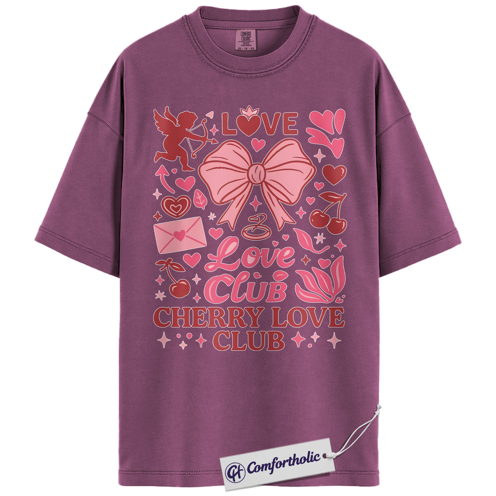 Cherry Love Club Shirt, Cute Cupid Bow Graphic Tee, Valentine’s Day Cherry T-Shirt, Gift for Girlfriend Wife, Comfort Colors Shirt