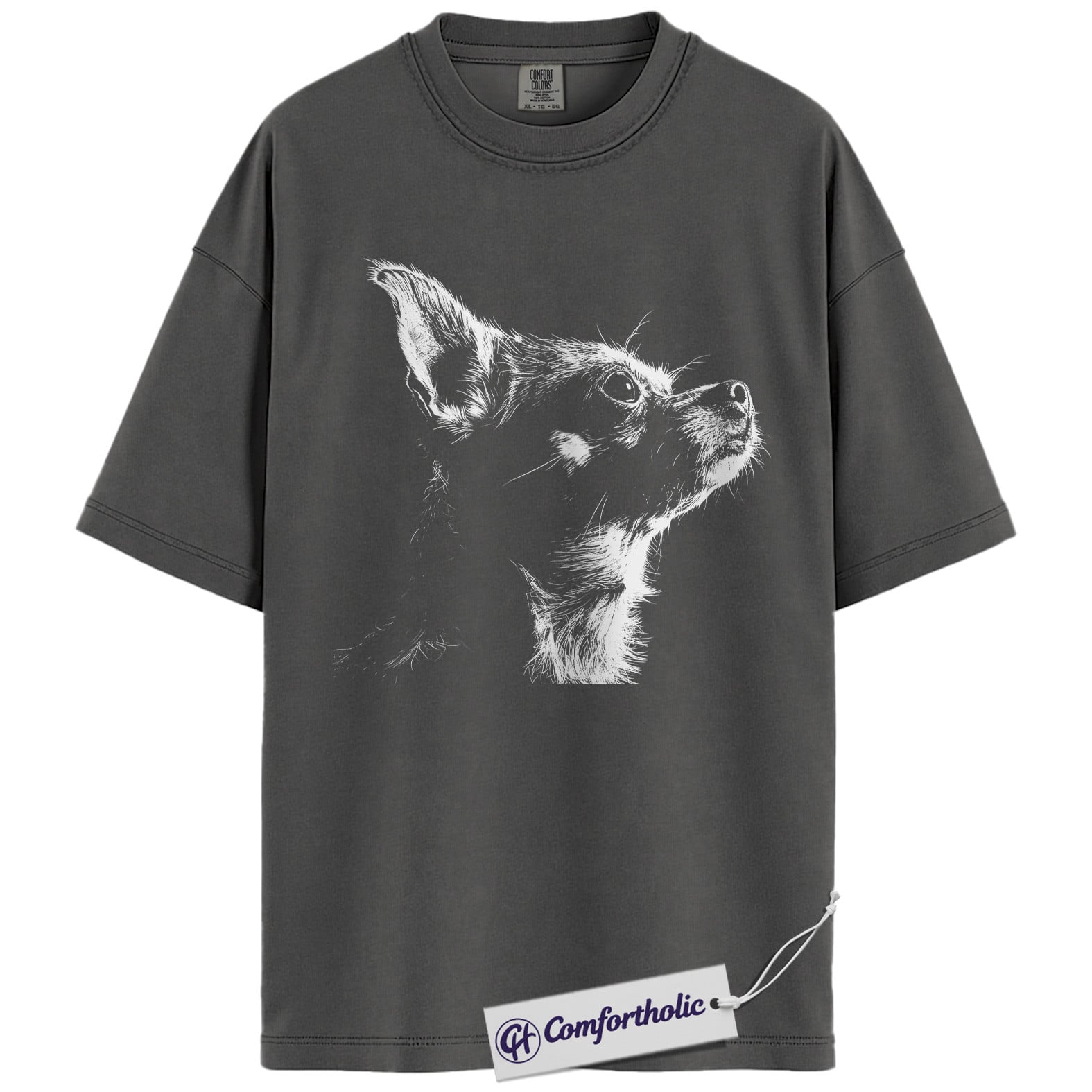 Chihuahua Dog Shirt, Realistic Line Art T-Shirt, Minimalist Pet Lover Graphic Tee, Cute Gift for Small Dog Owners, Comfort Colors Shirt