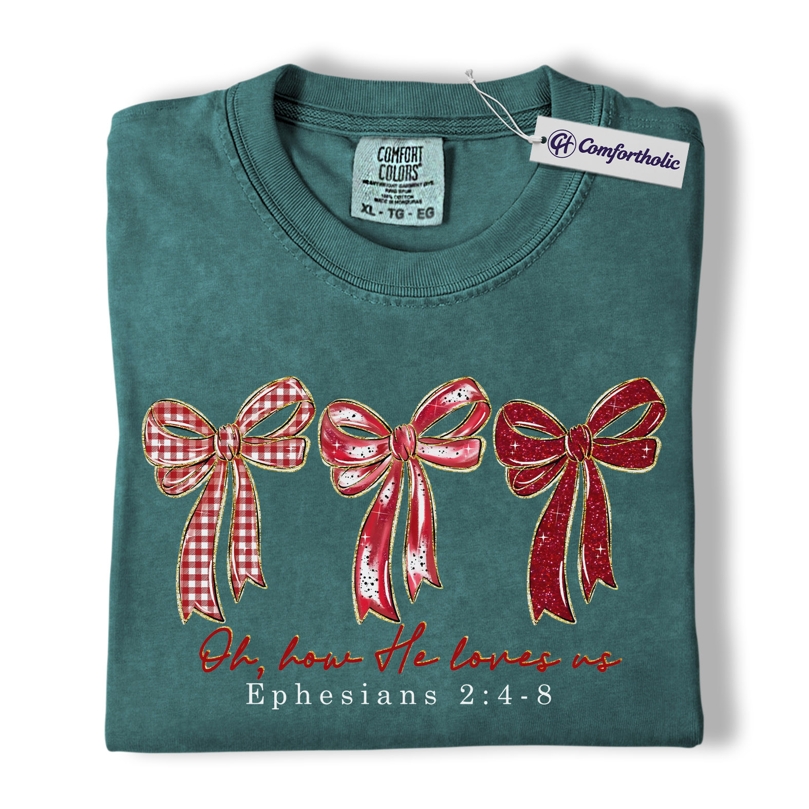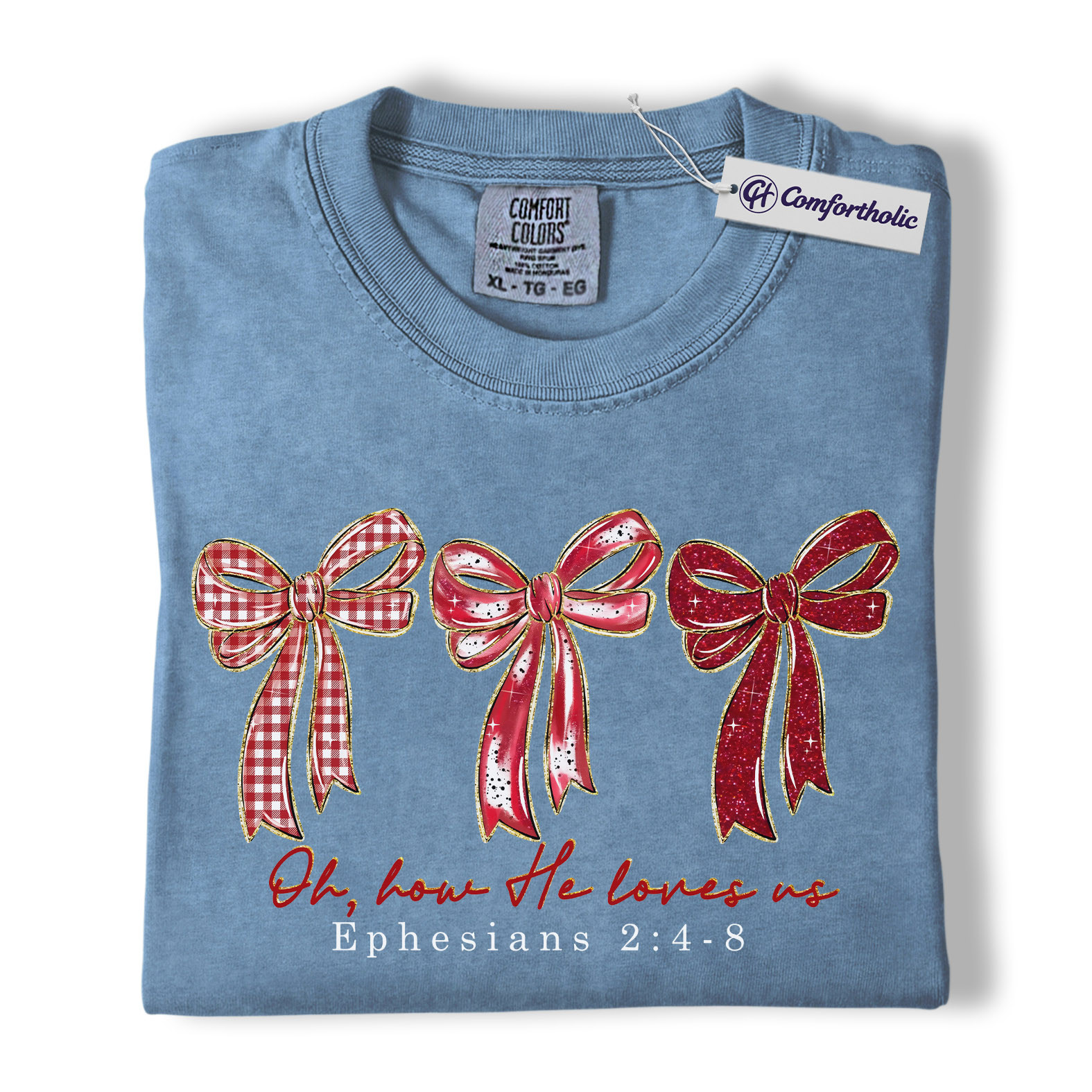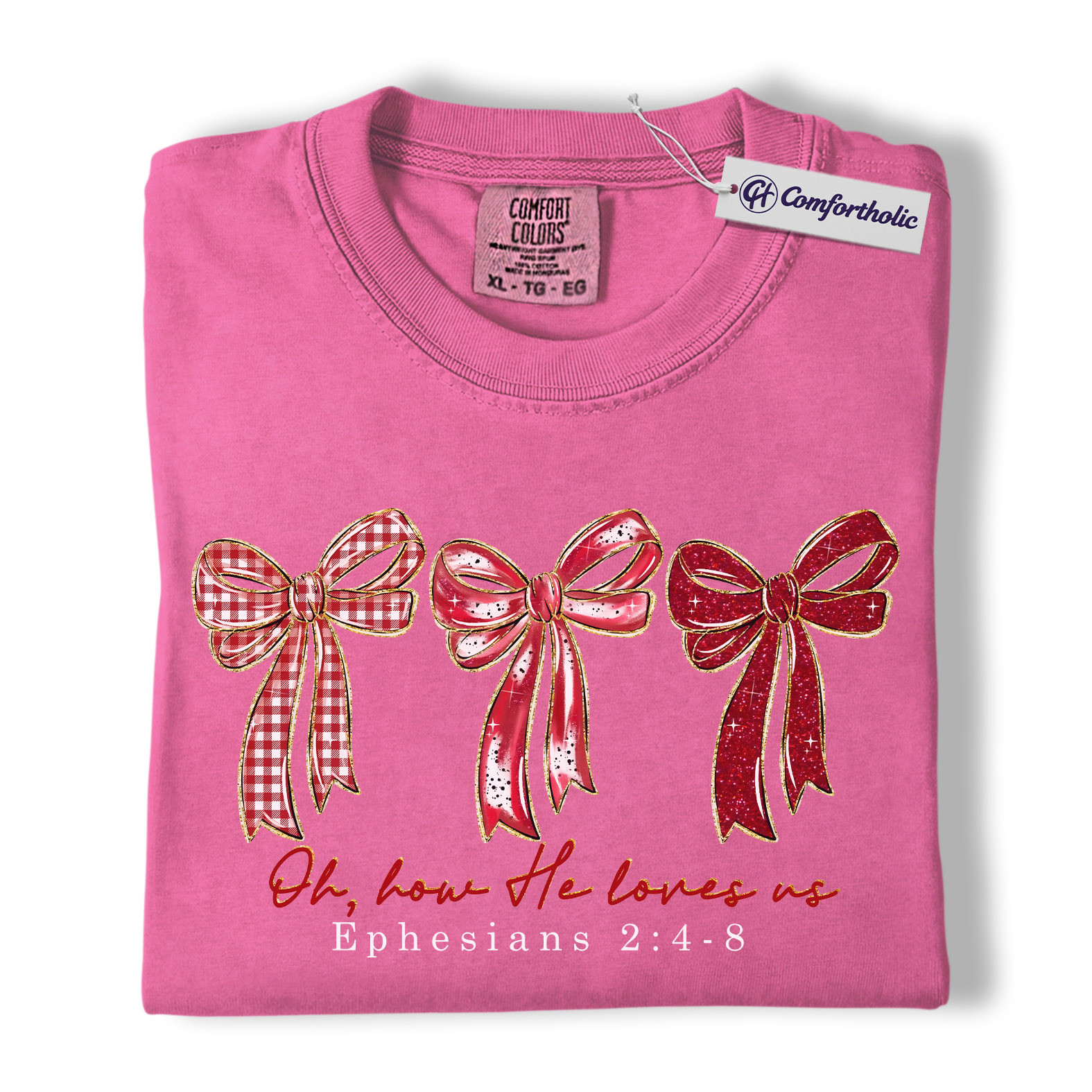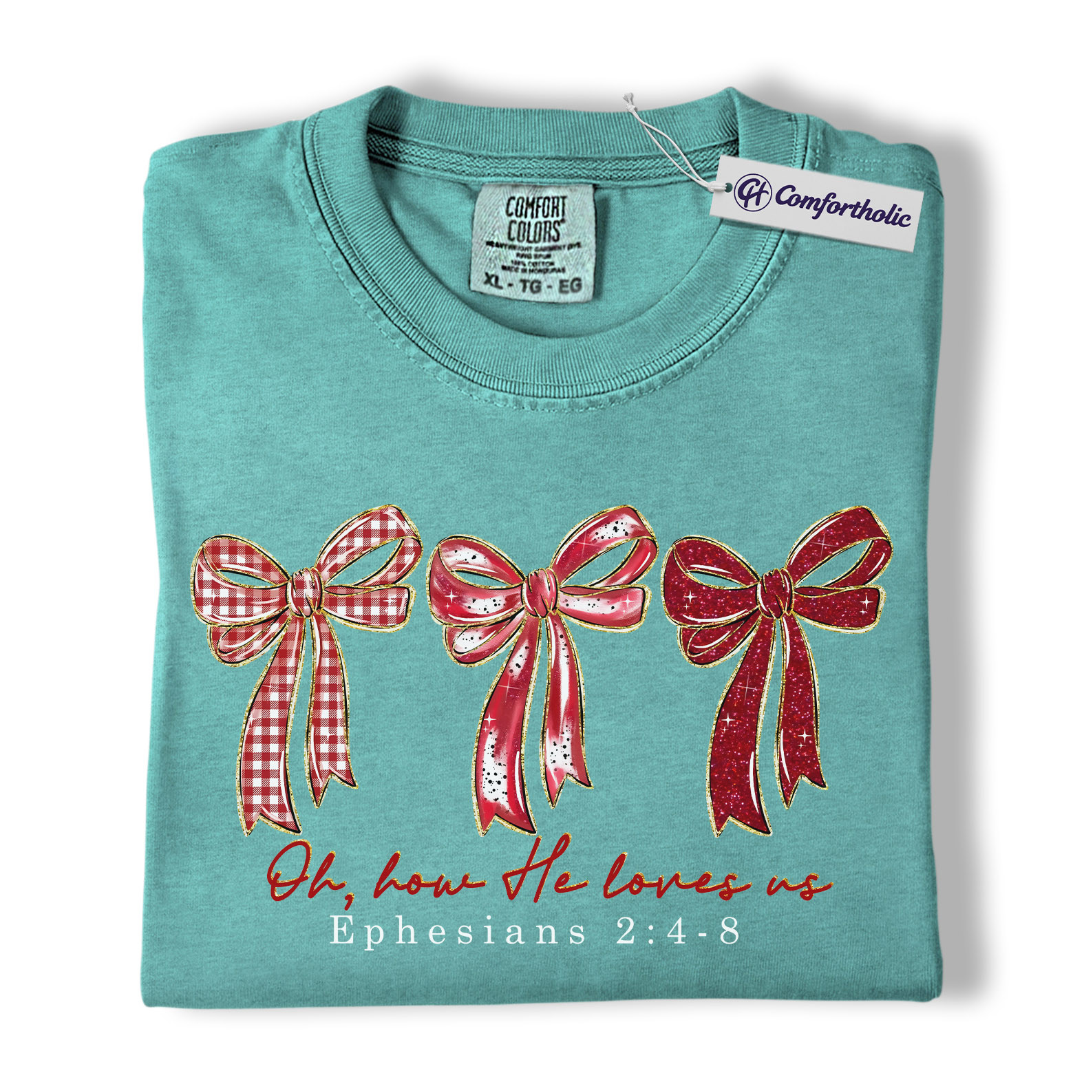Christian Bow Shirt, Coquette Bible Verse Graphic Tee, Ephesians 2:4-8 Faith T-Shirt, Valentine’s Day Gift for Christian Women, Comfort Colors Shirt