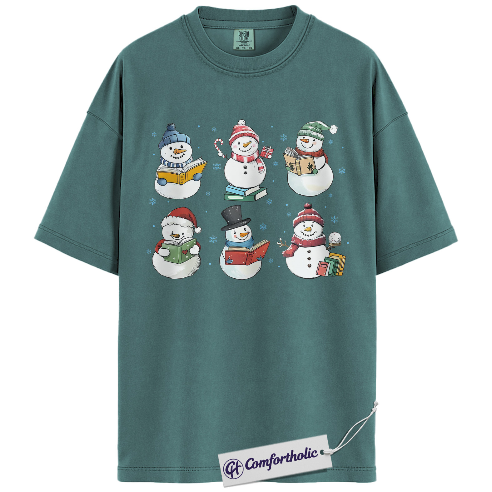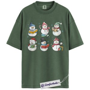 Christmas Book Lover Shirt, Cute Snowman Reading T-Shirt, Winter Literary Graphic Tee, Holiday Gift for Teachers and Readers, Christmas Comfort Colors Shirt
