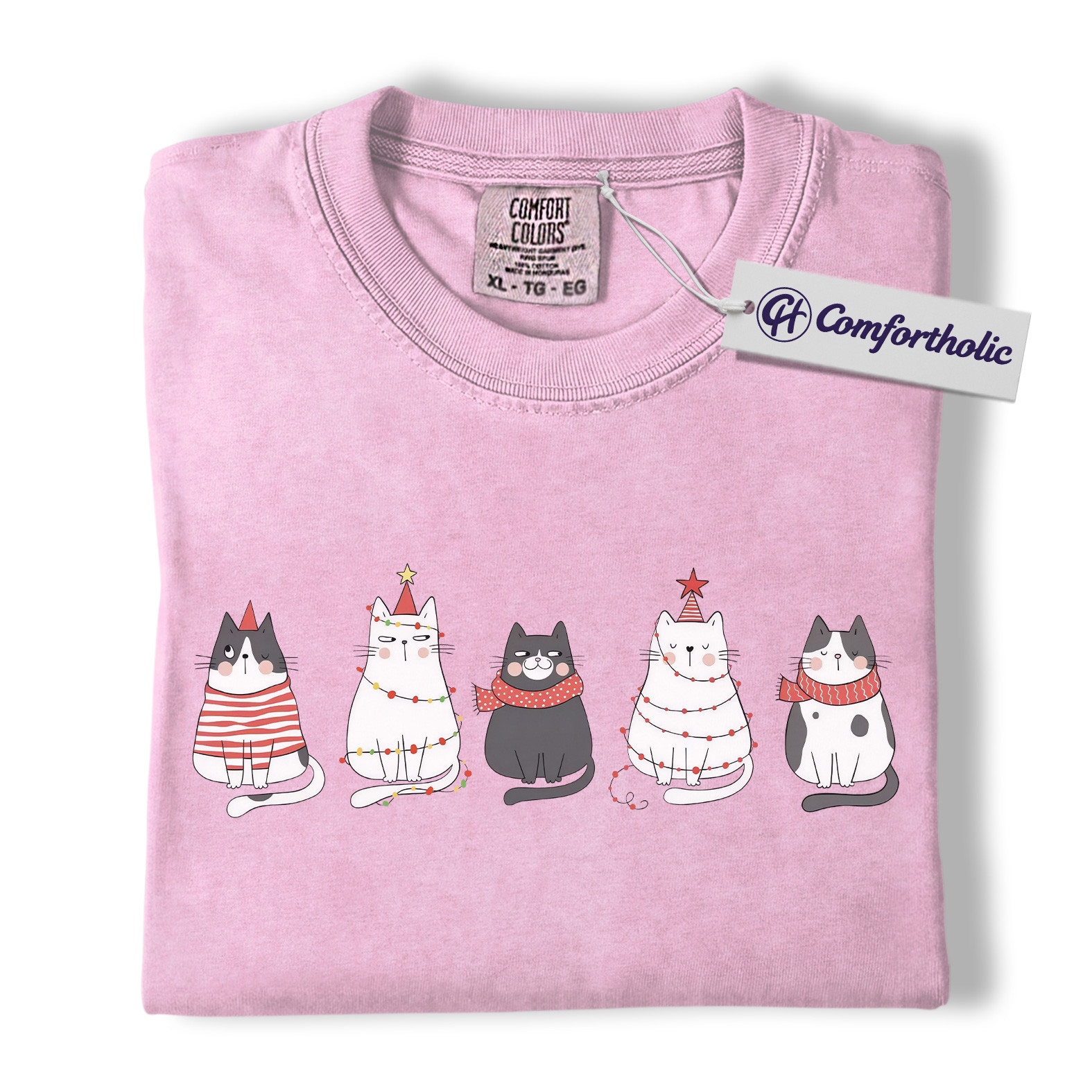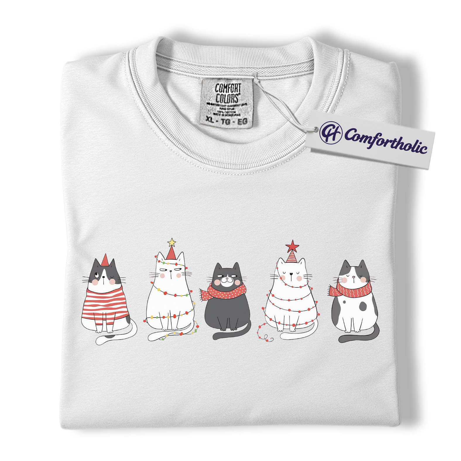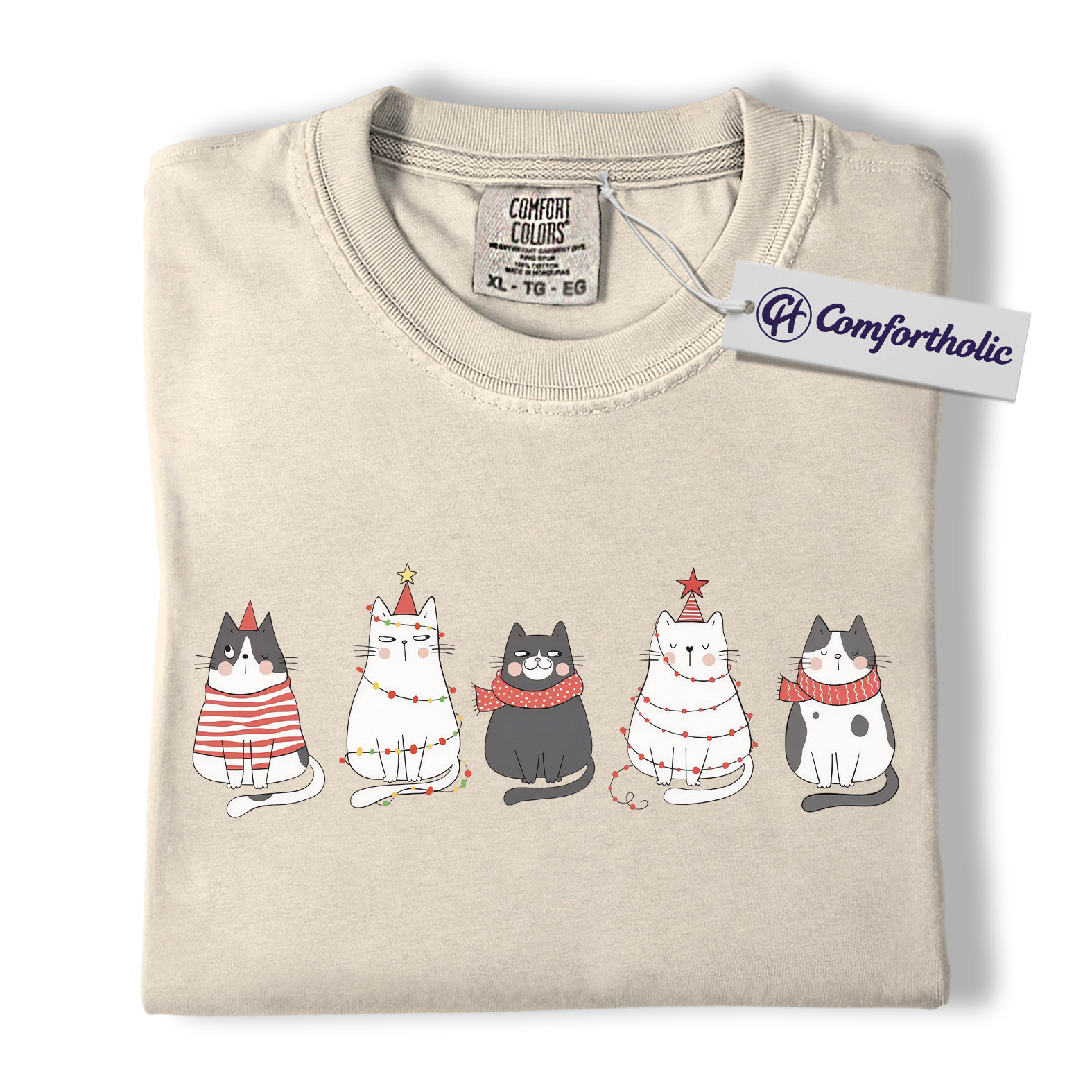 Christmas Cat Shirt, Cute Holiday Kitty T-Shirt, Funny Festive Cat Lover Graphic Tee, Cozy Gift for Pet Owners, Christmas Comfort Colors Shirt