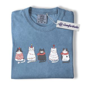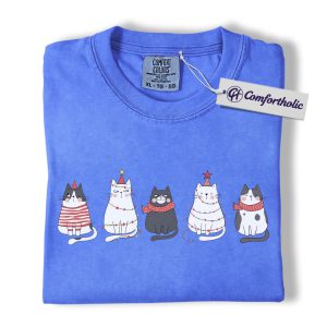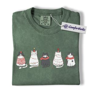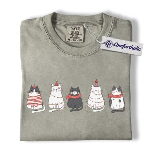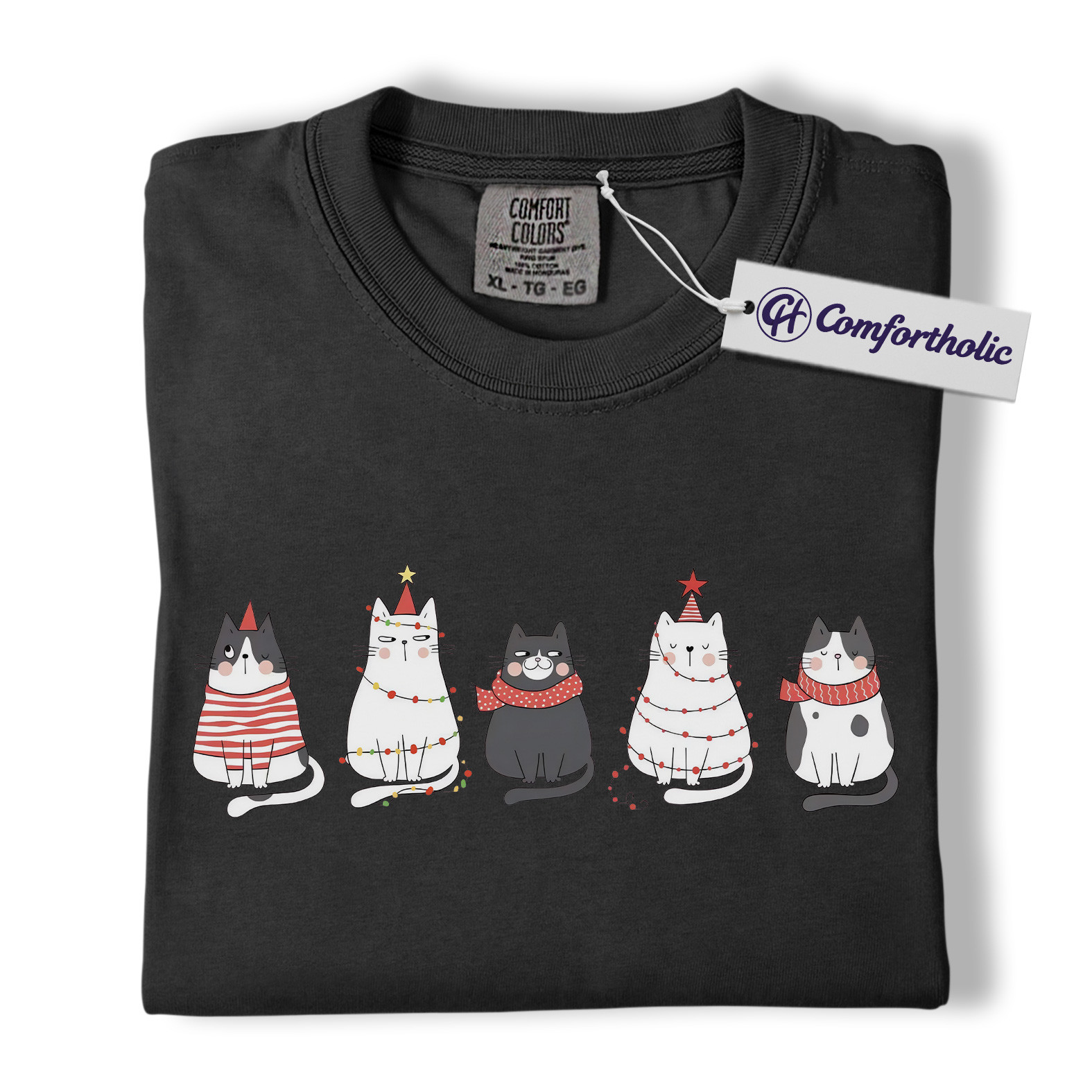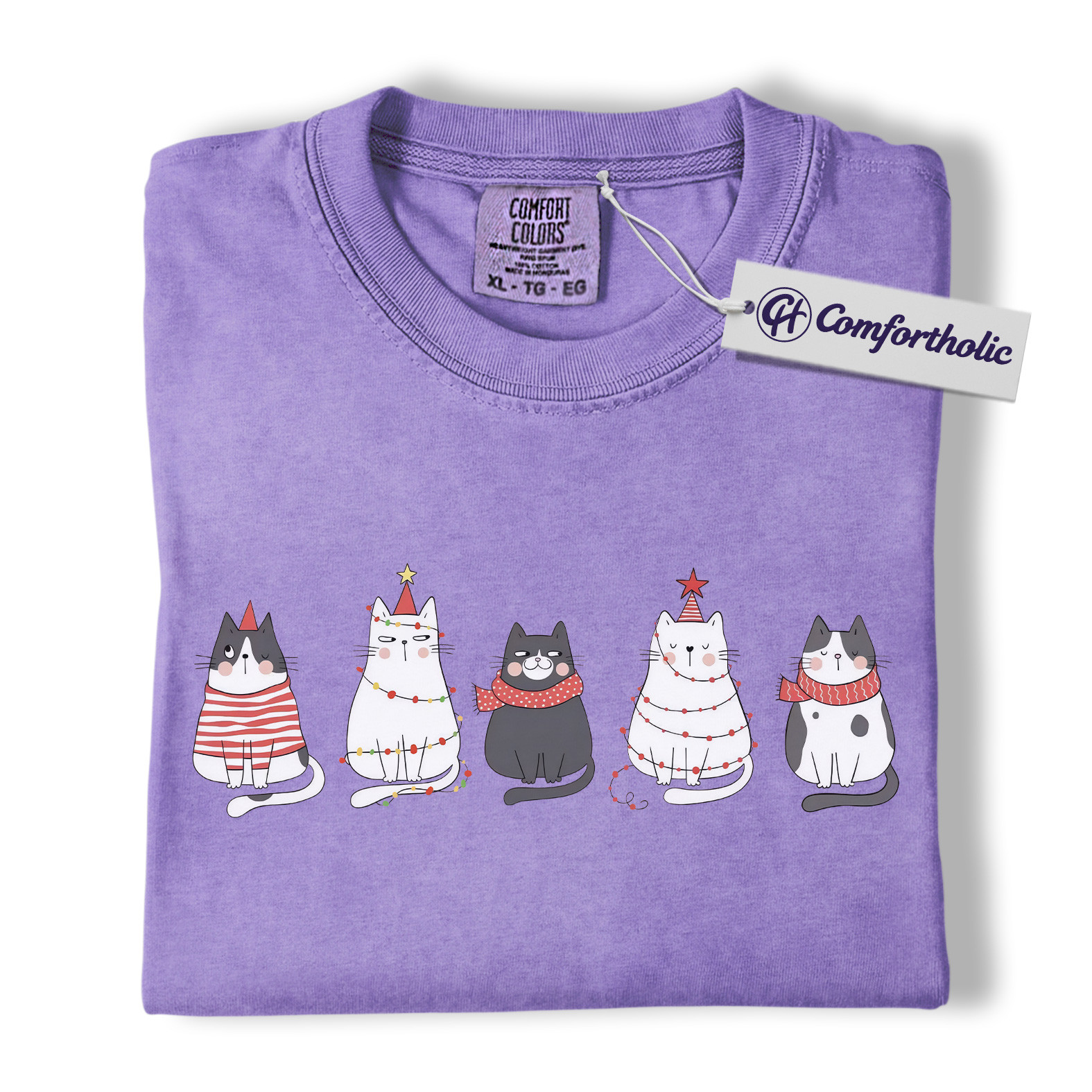 Christmas Cat Shirt, Cute Holiday Kitty T-Shirt, Funny Festive Cat Lover Graphic Tee, Cozy Gift for Pet Owners, Christmas Comfort Colors Shirt