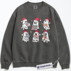 Christmas Ghost Book Lover Sweatshirt, Cute Holiday Ghost Reading Pullover, Funny Spooky Season Bookworm Graphic Sweatshirt, Festive Halloween and Christmas Gift, Comfort Colors Sweatshirt