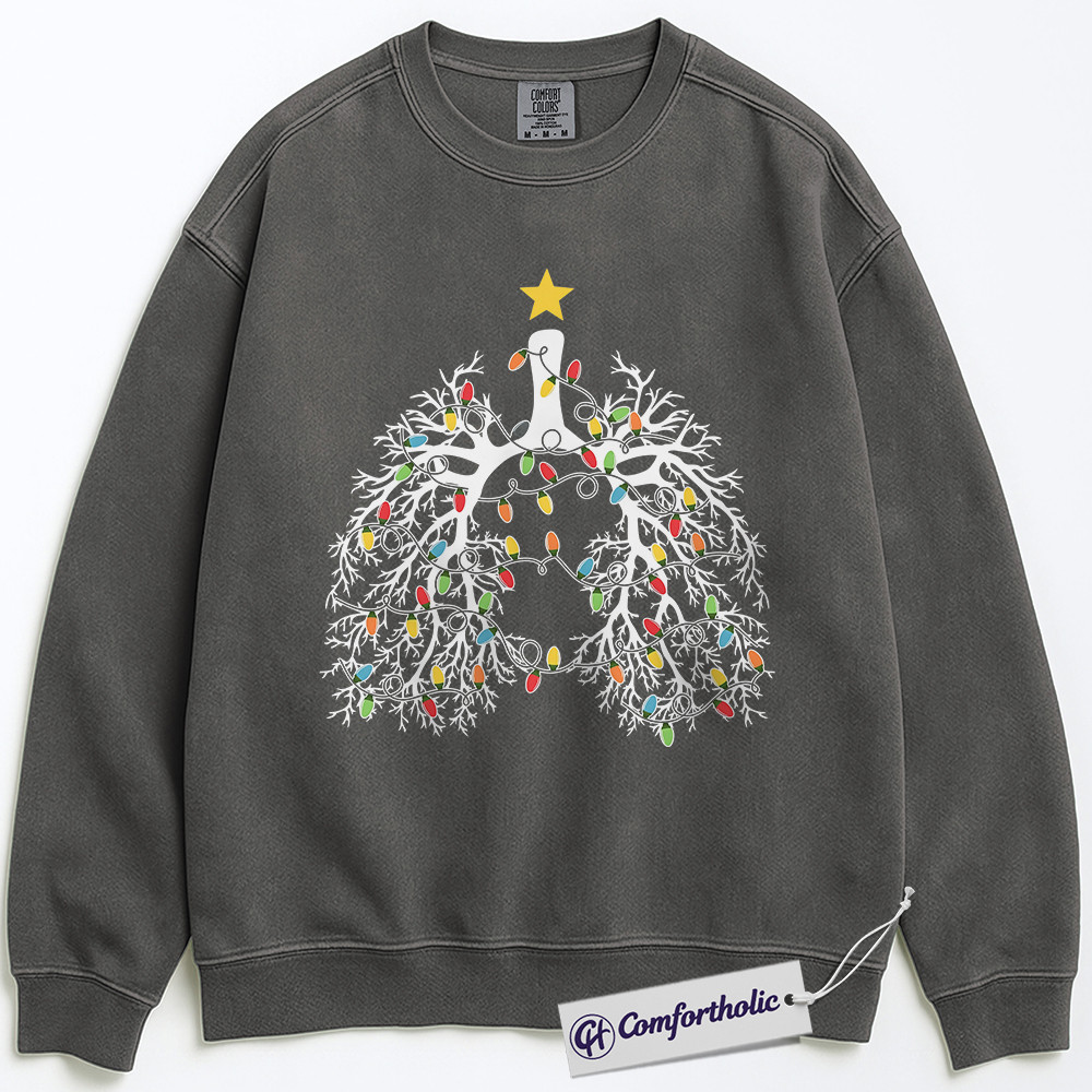 Christmas Lungs Tree Sweatshirt, Respiratory Therapist Holiday Pullover, Medical Anatomy Graphic Crewneck, Unique Healthcare Gift for Professionals, Christmas Comfort Colors Sweatshirt
