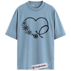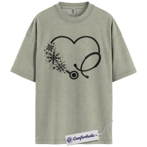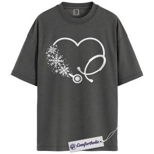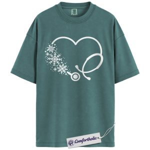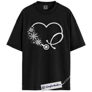 Christmas Nurse Shirt, Snowflake Stethoscope Heart T-Shirt, Cute Winter Medical Worker Graphic Tee, Holiday Gift for Nurses, Comfort Colors Shirt