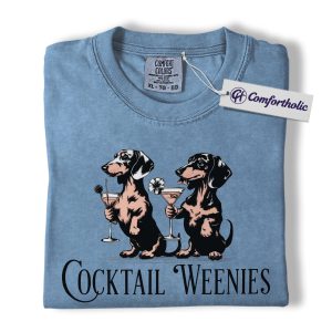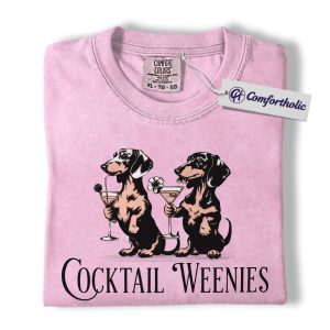 Cocktail Weenies Shirt, Funny Dachshund Dog T-Shirt, Cute Wiener Dog Drinking Graphic Tee, Humorous Pet Lover Gift, Comfort Colors Shirt