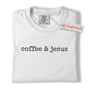 Coffee and Jesus Shirt, Christian Faith T-Shirt, Minimalist Religious Graphic Tee, Inspirational Morning Outfit Gift, Faith-Based Comfort Colors Shirt