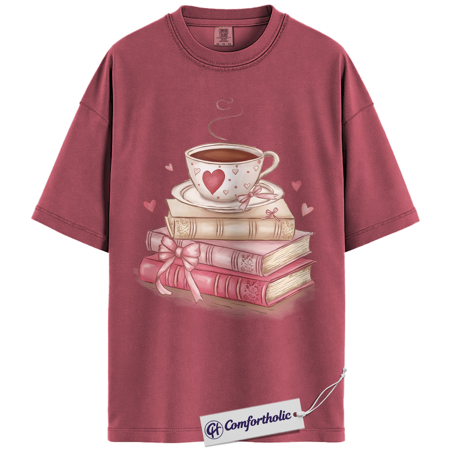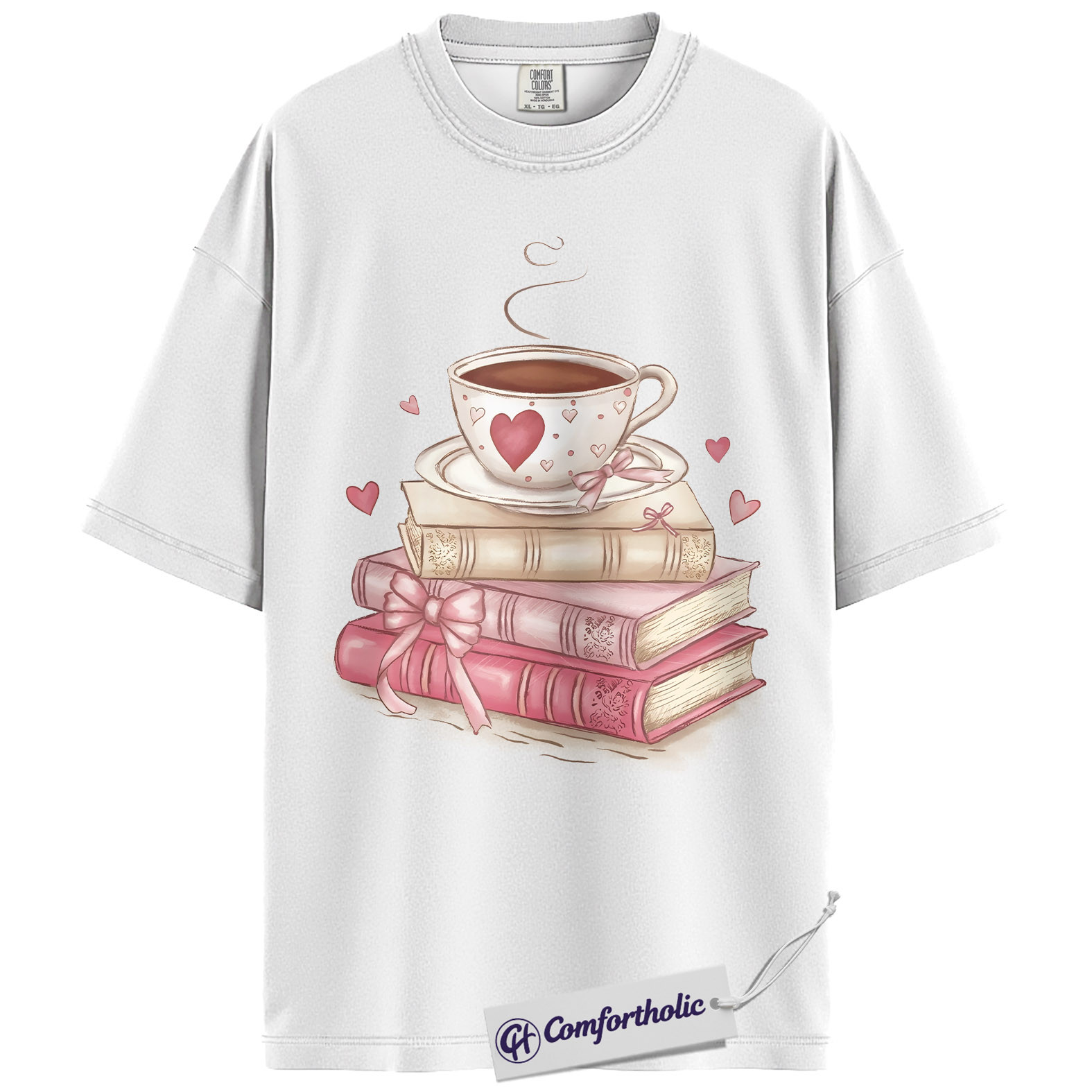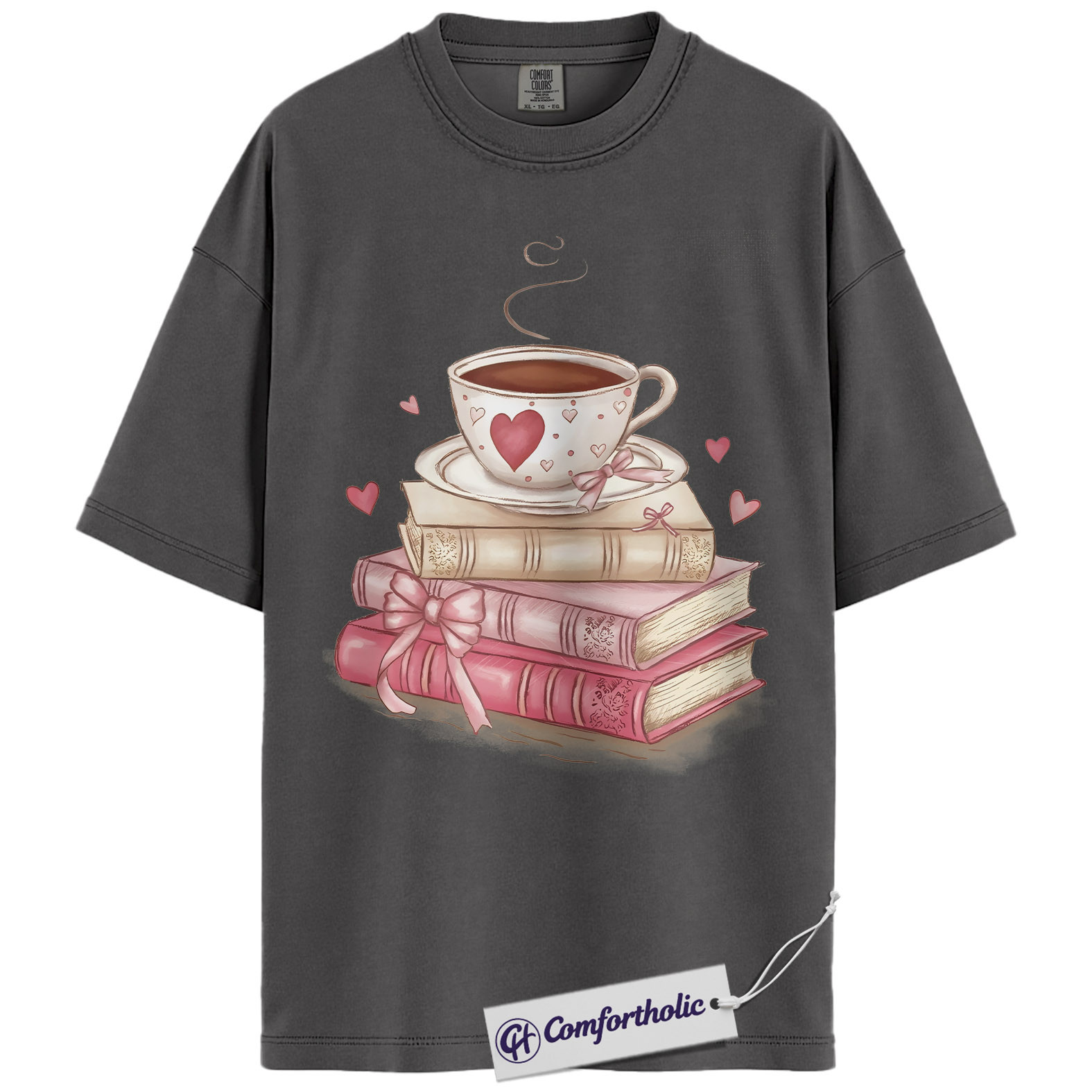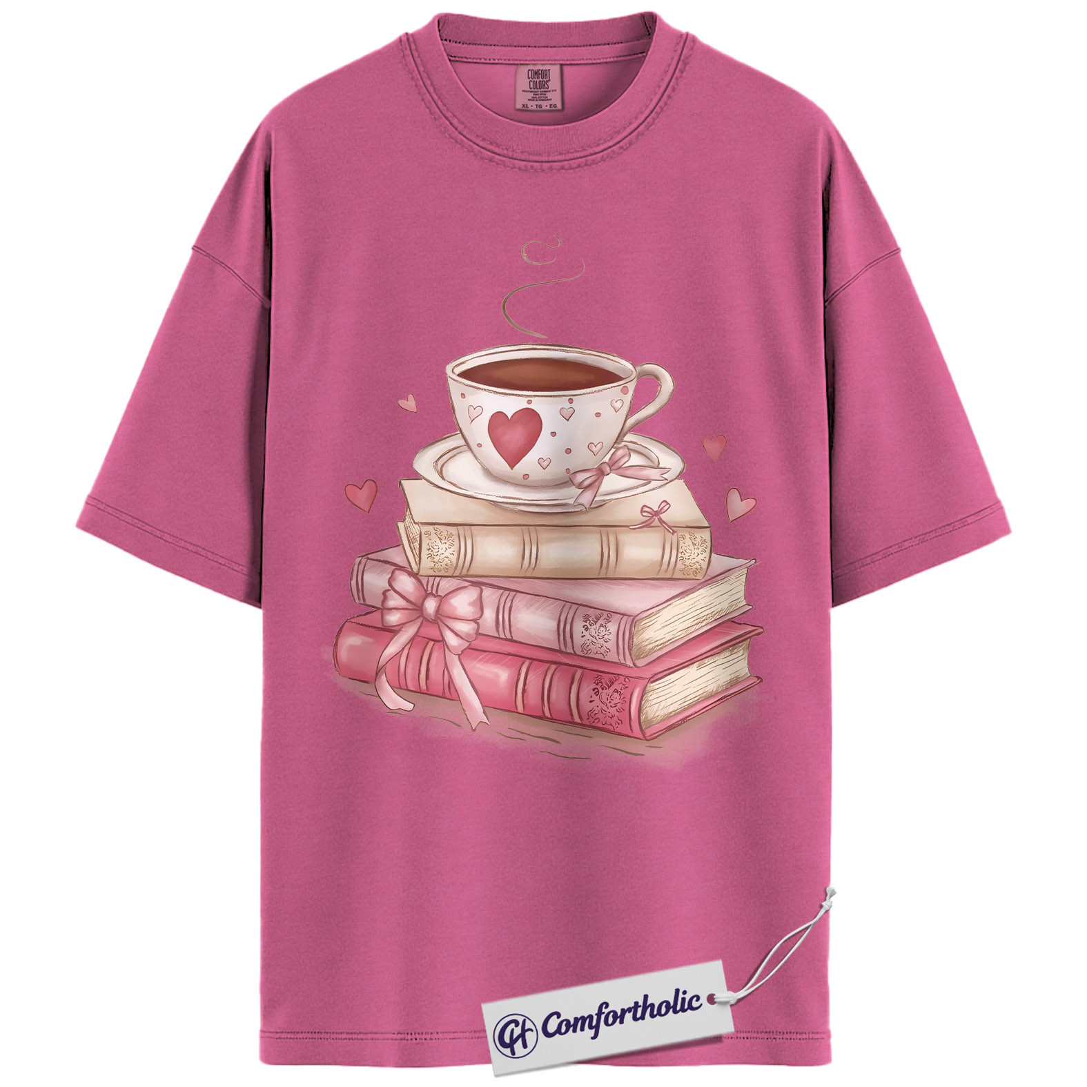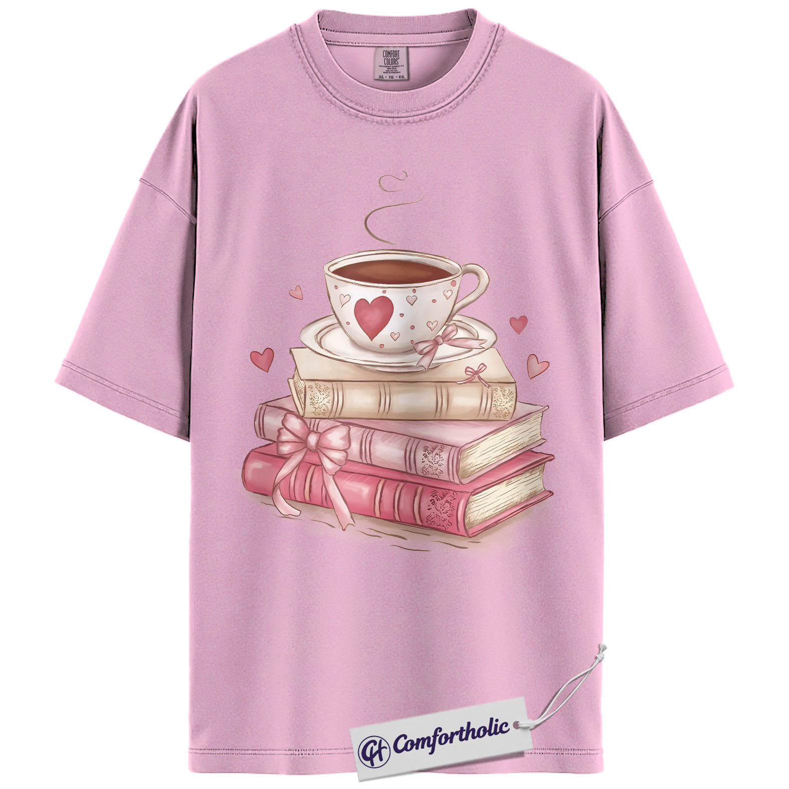 Coffee & Books Shirt, Coquette Pink Book Lover Graphic Tee, Romance Reader Valentine T-Shirt, Gift for Bookworms & Coffee Lovers, Comfort Colors Shirt