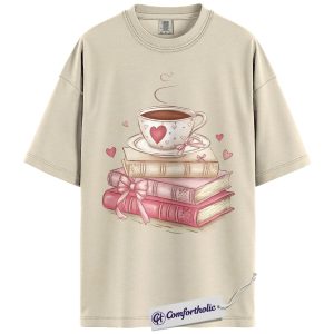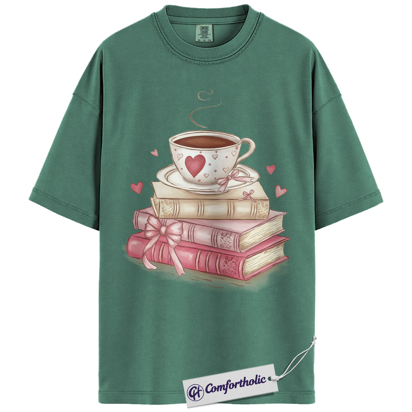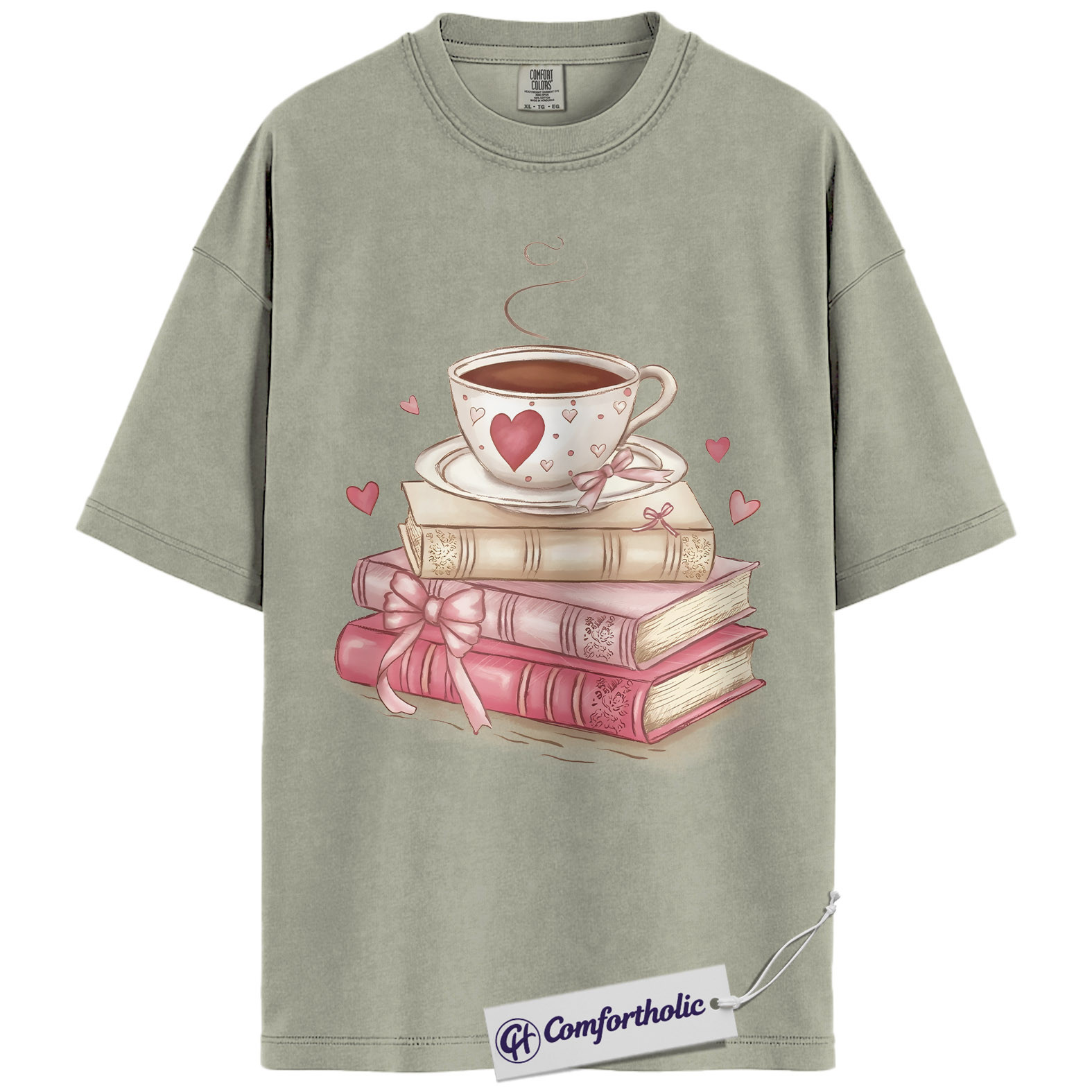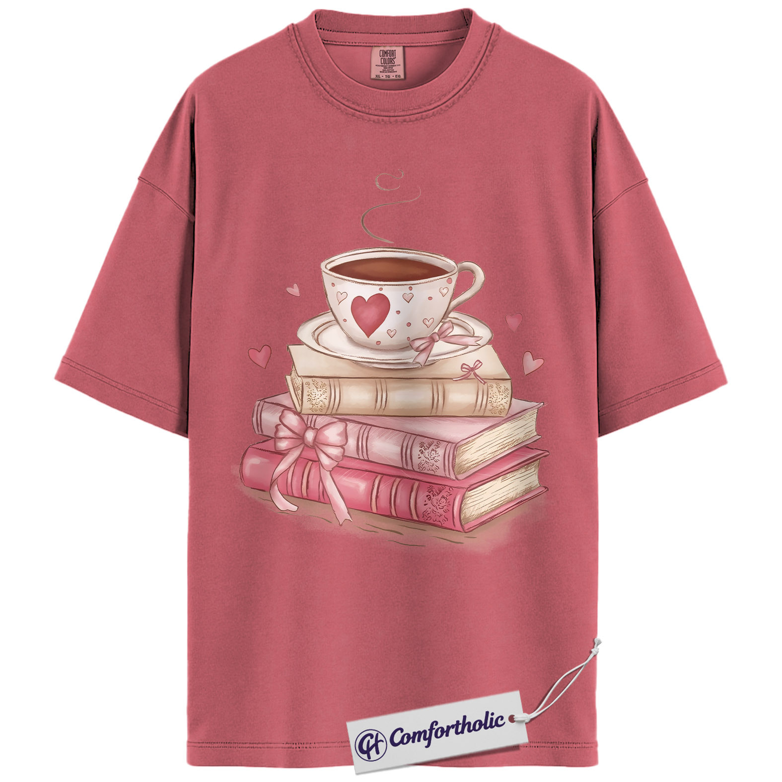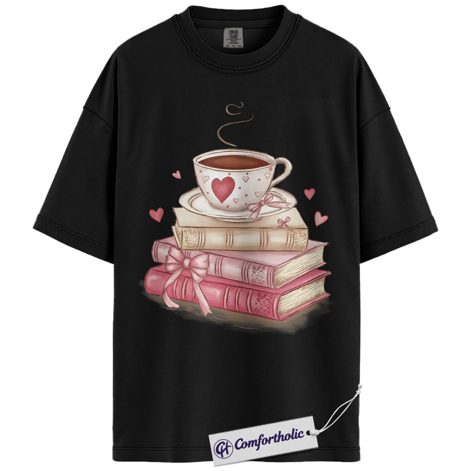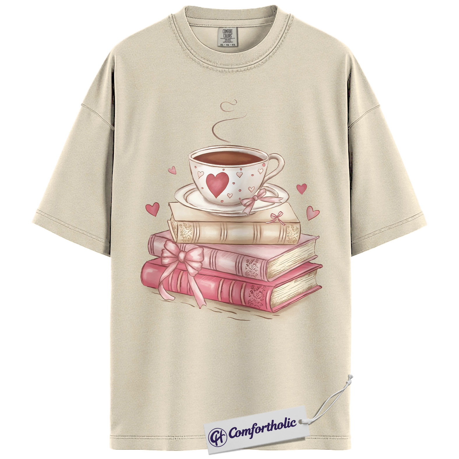 Coffee & Books Shirt, Coquette Pink Book Lover Graphic Tee, Romance Reader Valentine T-Shirt, Gift for Bookworms & Coffee Lovers, Comfort Colors Shirt