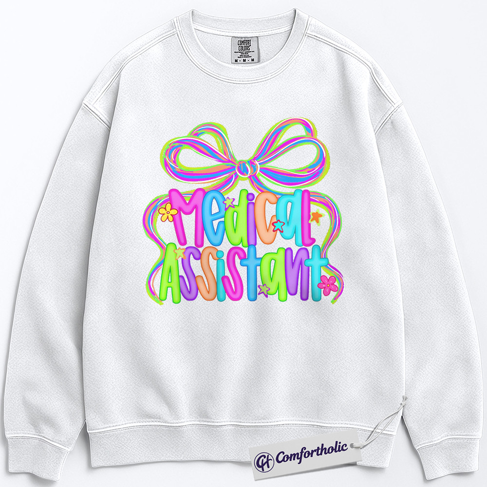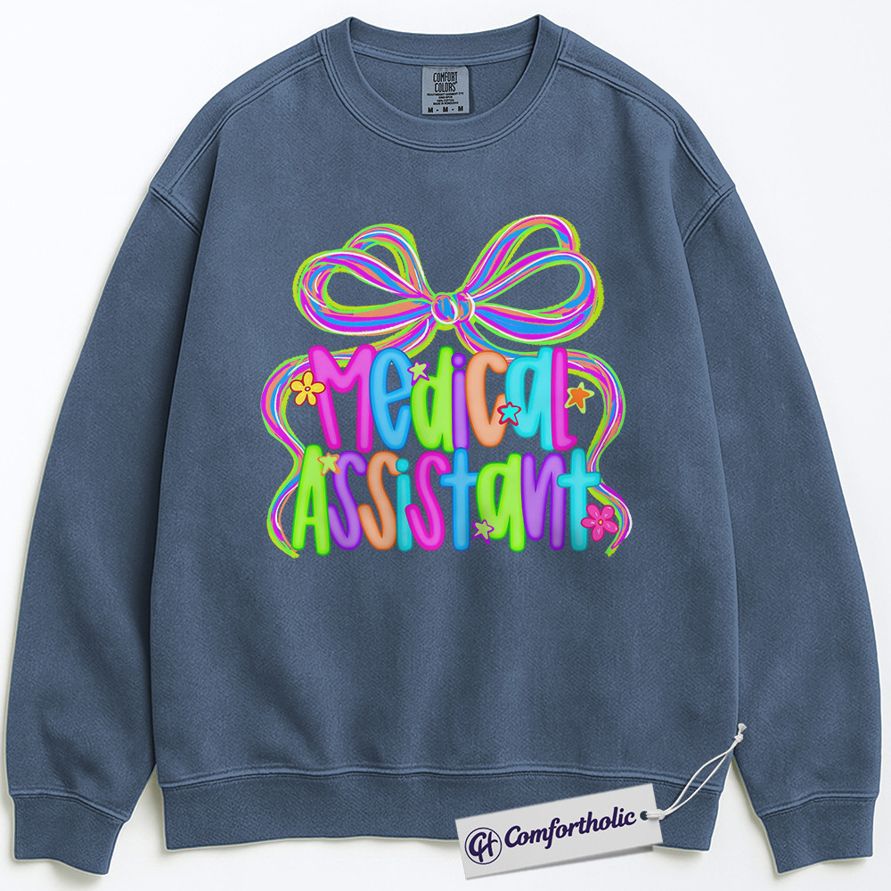 Colorful Medical Assistant Sweatshirt, Cute Healthcare Worker Pullover, Bright Neon Medical Staff Graphic Crewneck, Fun MA Appreciation Gift, Medical Assistant Comfort Colors Sweatshirt