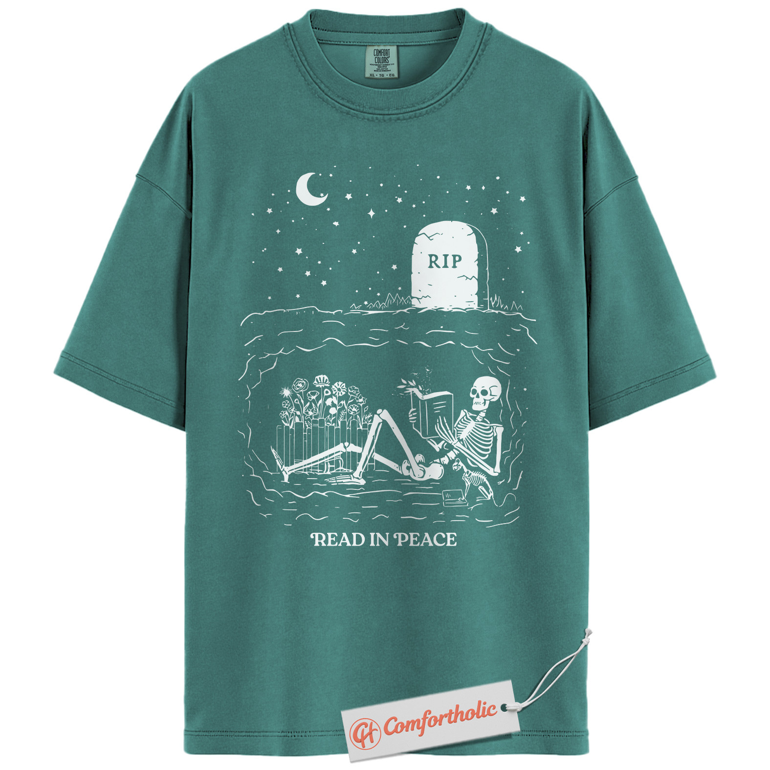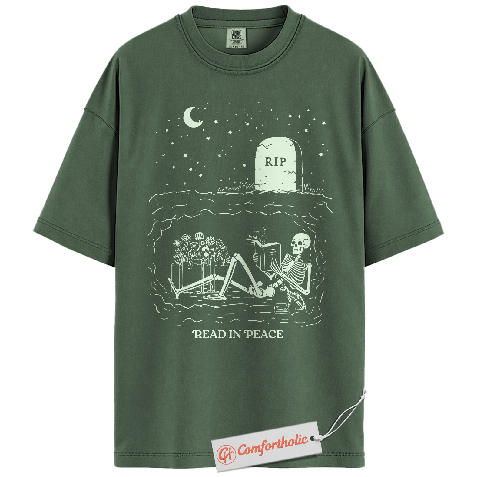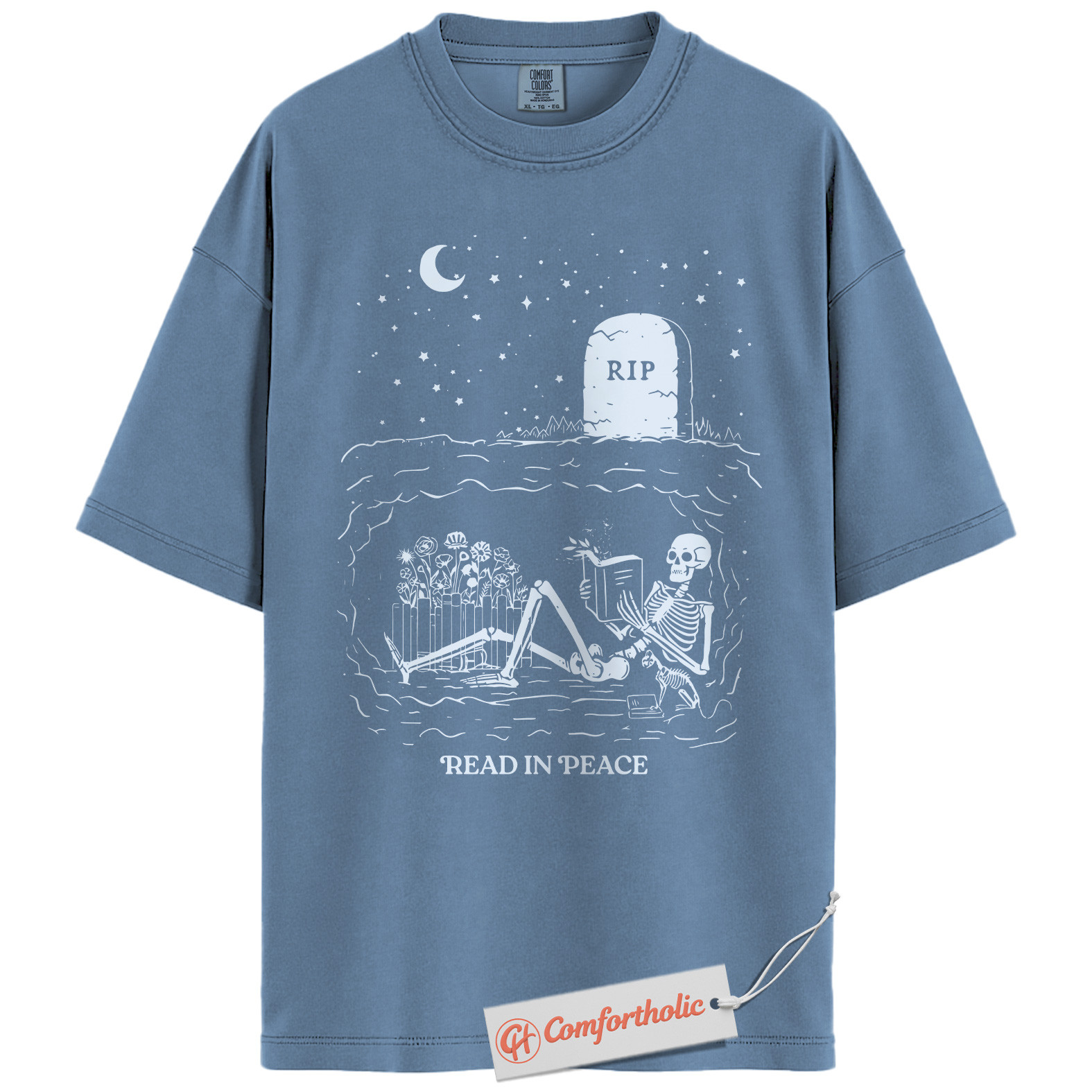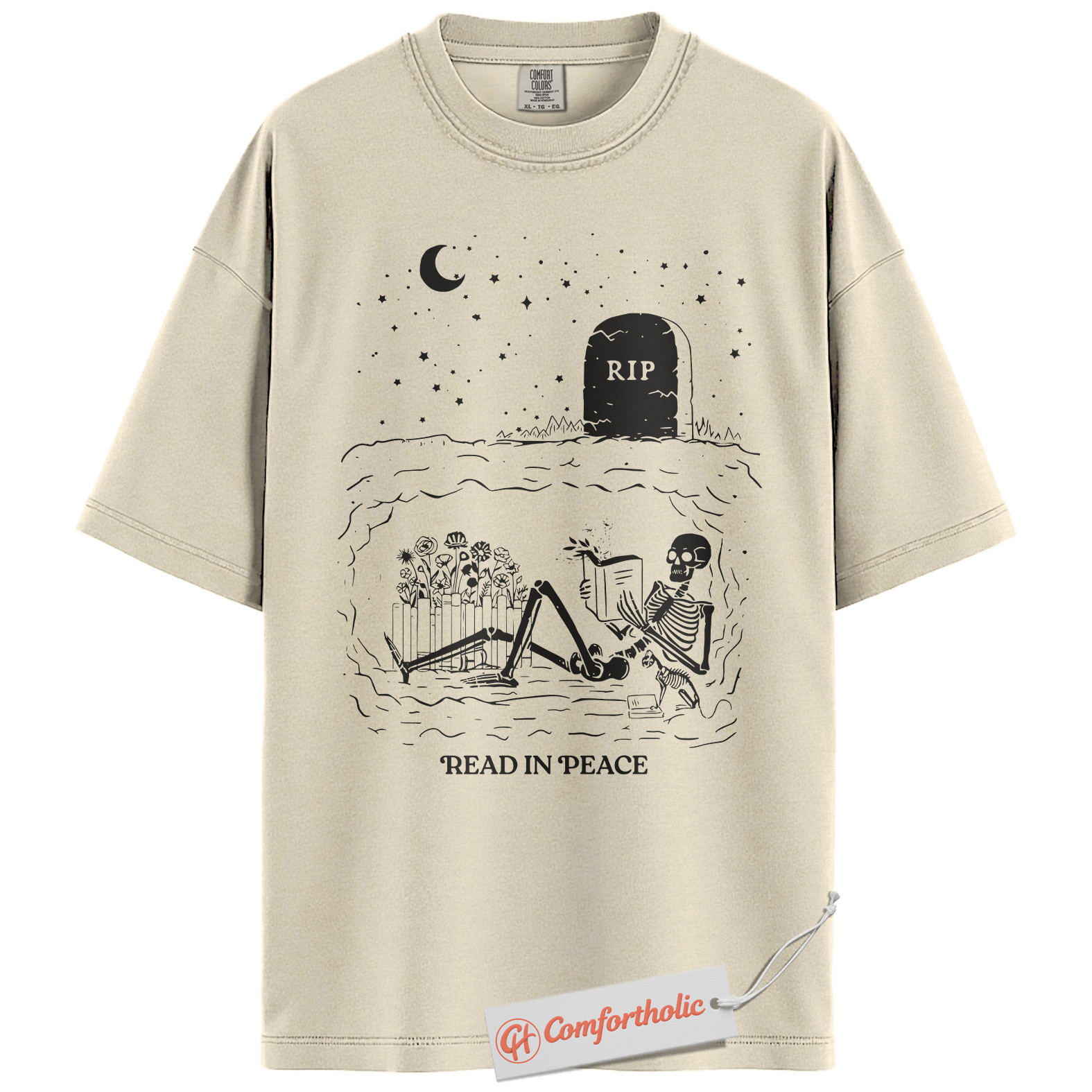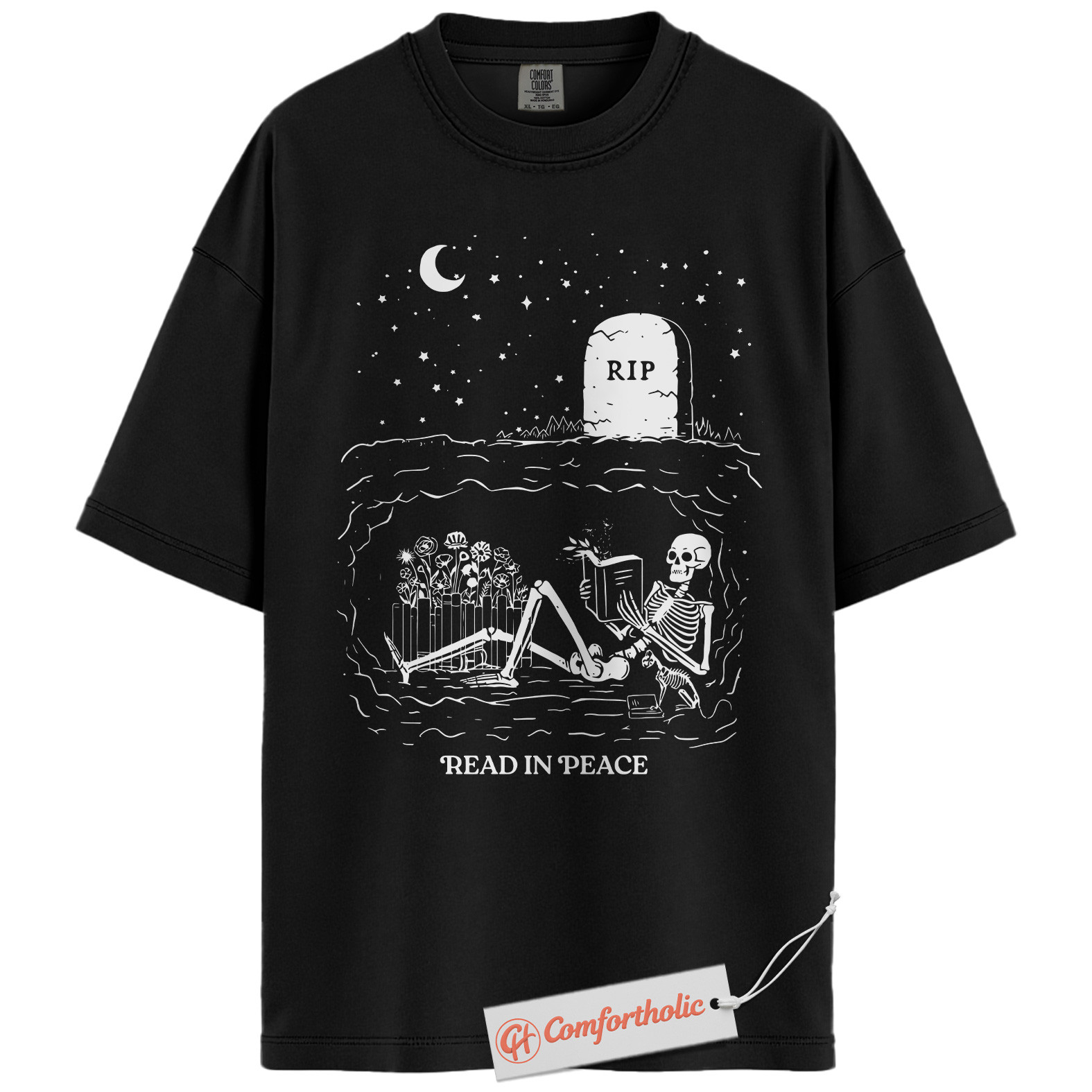 Comfort Colors Read in Peace Shirt, Skeleton Reading T-Shirt, Funny Dark Academia Tee, Spooky Gift for Readers, Book Lover Comfort Colors Shirt