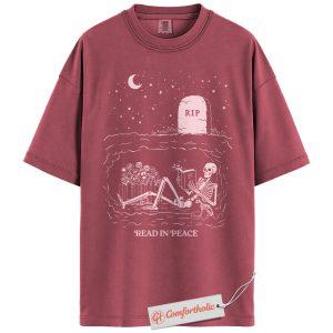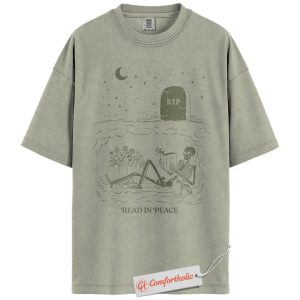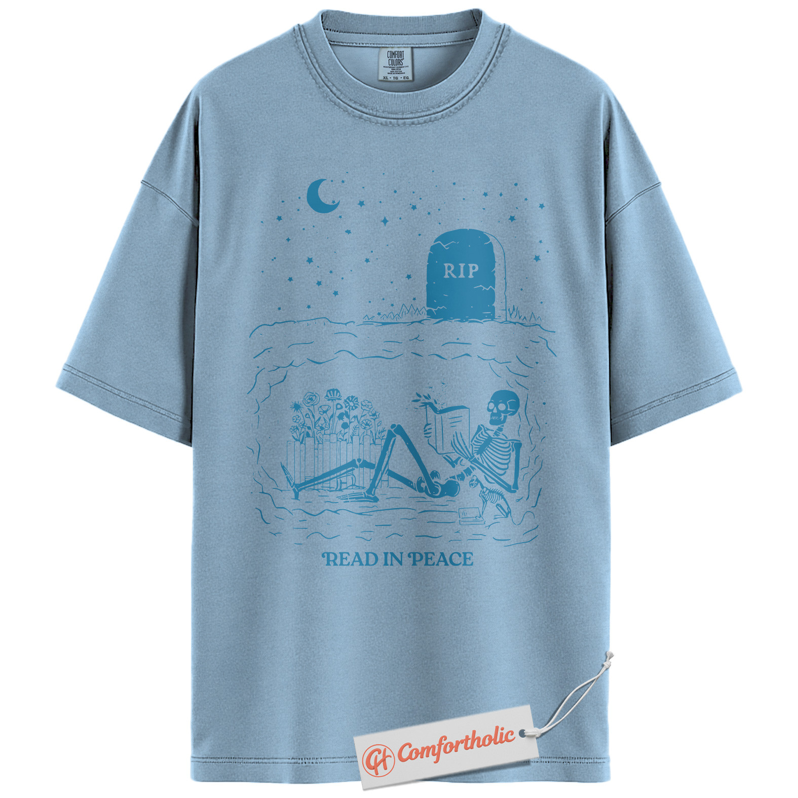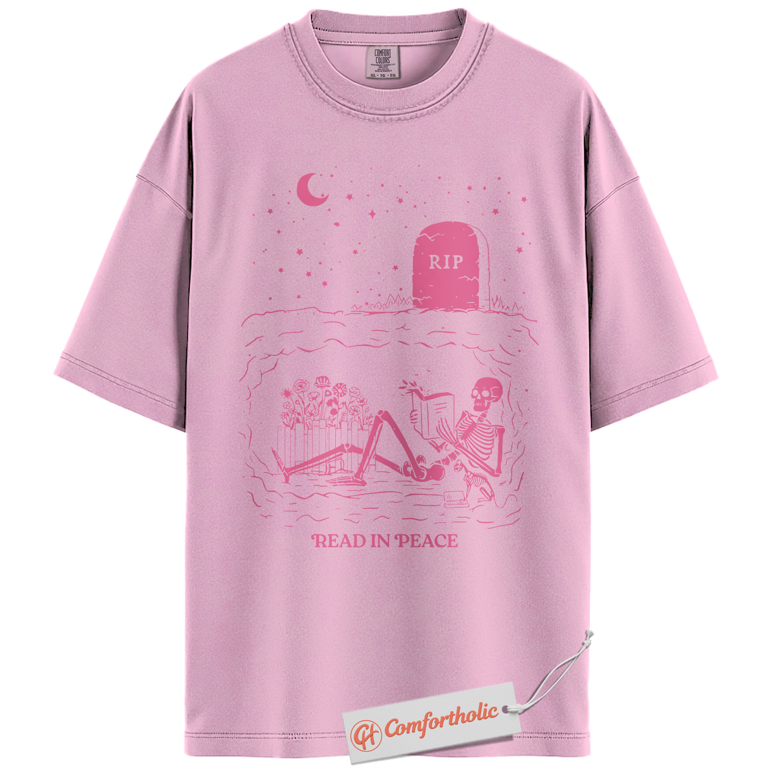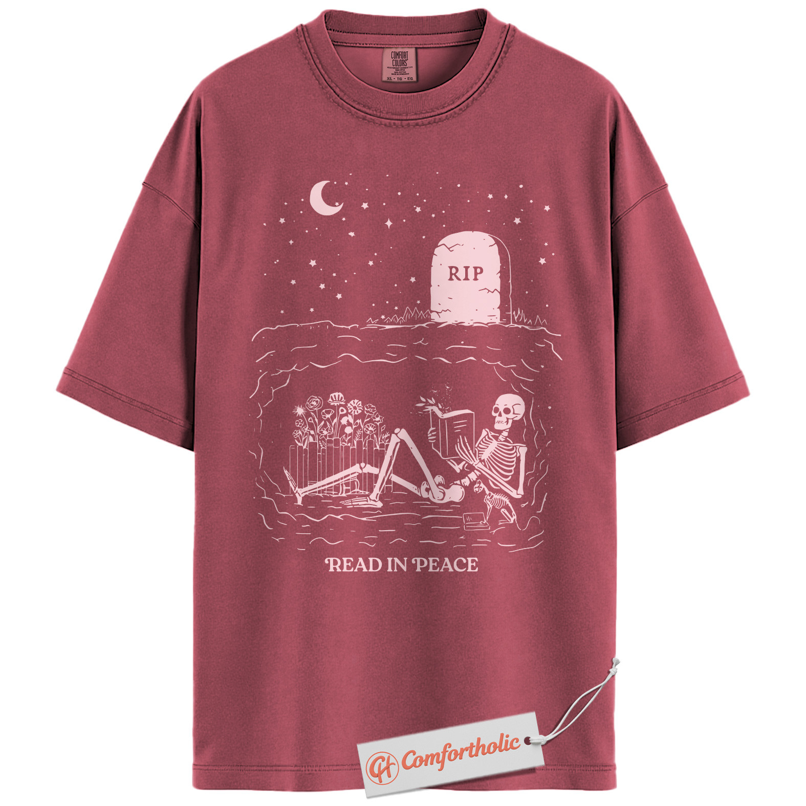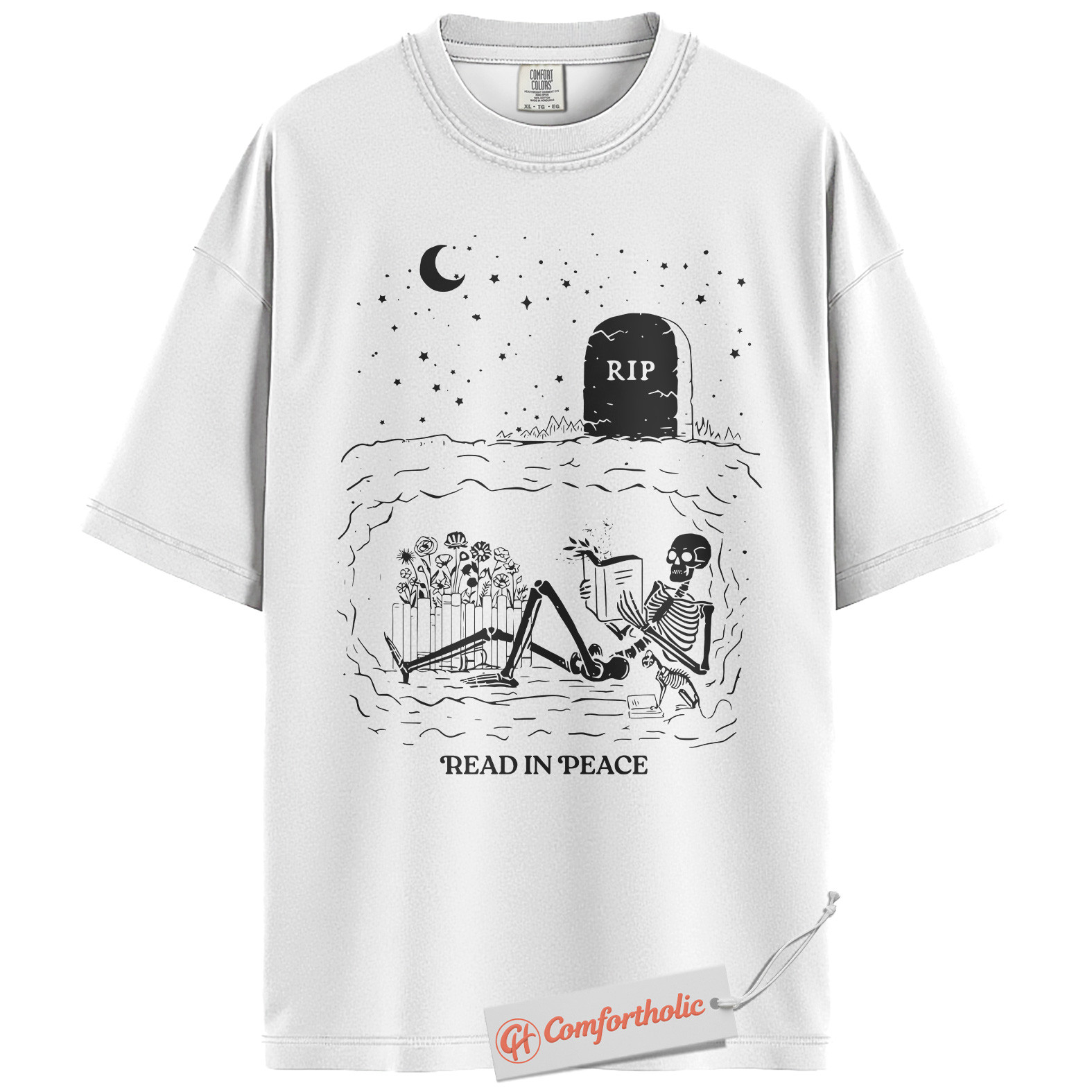Comfort Colors Read in Peace Shirt, Skeleton Reading T-Shirt, Funny Dark Academia Tee, Spooky Gift for Readers, Book Lover Comfort Colors Shirt