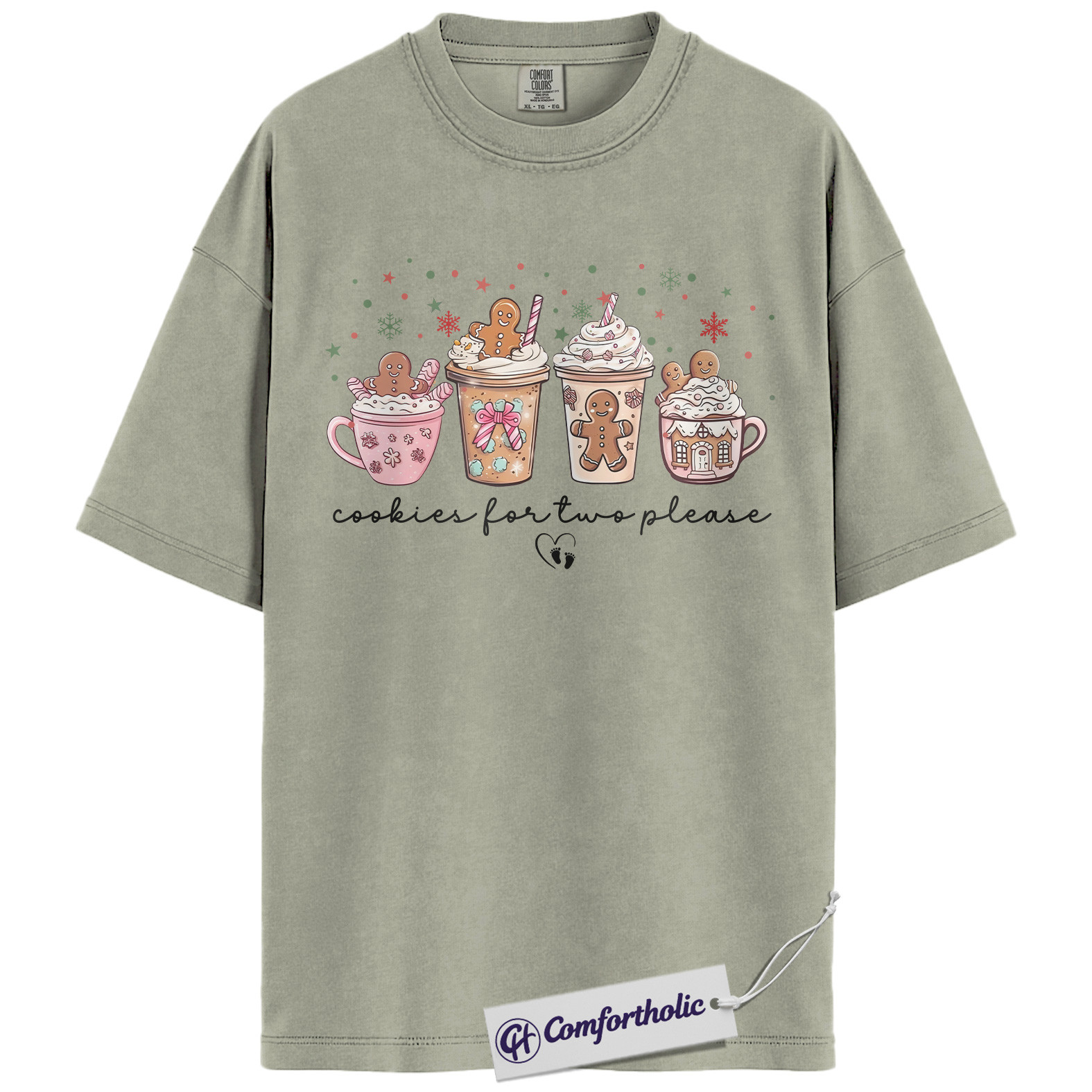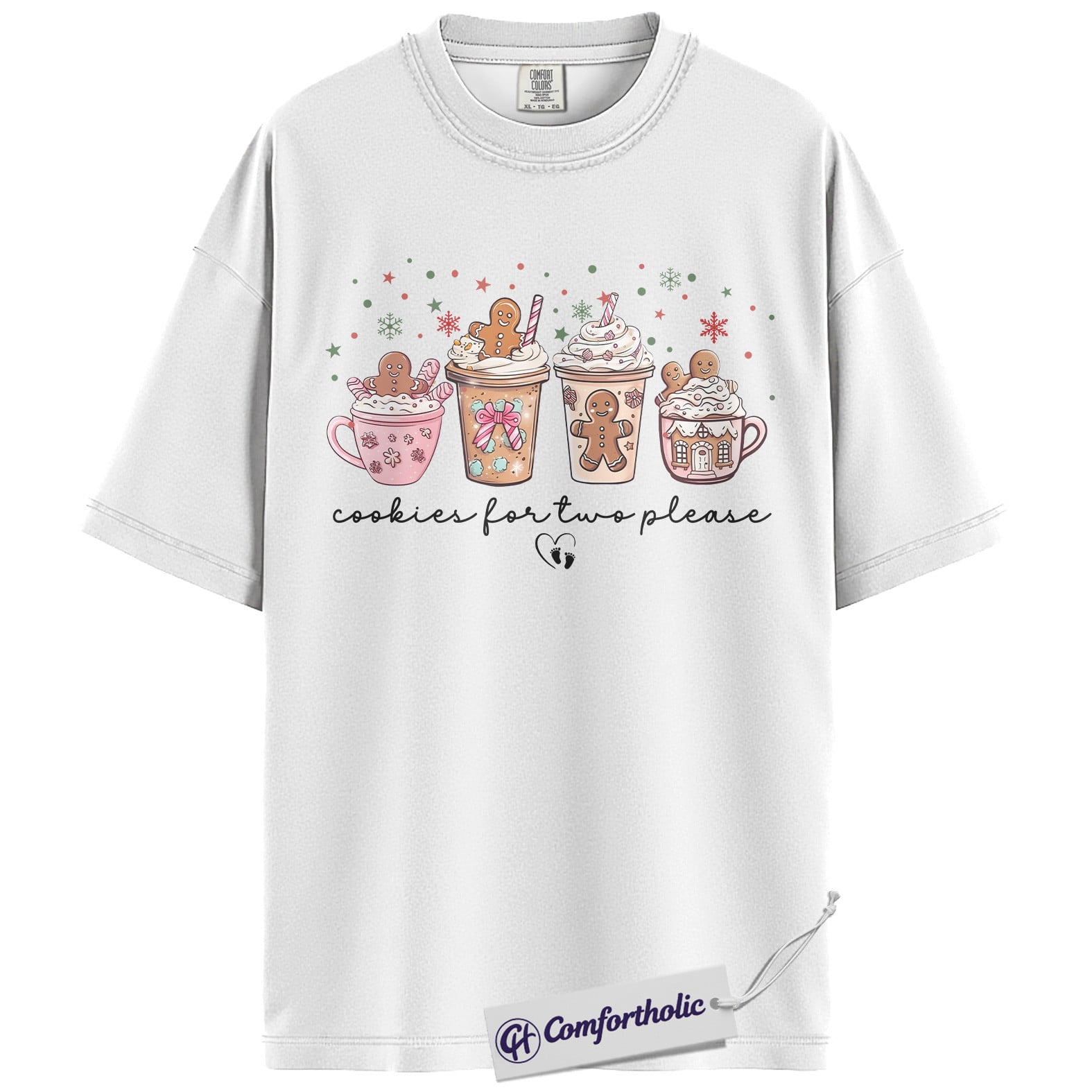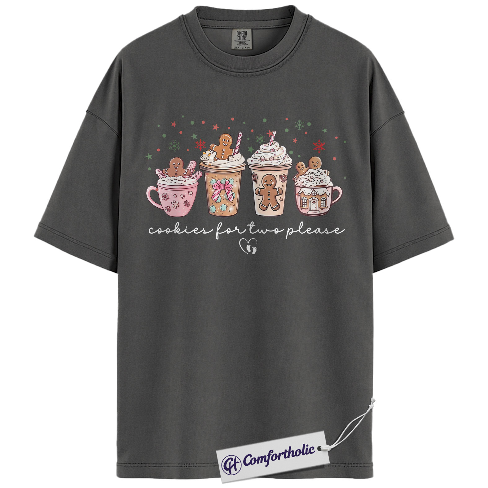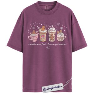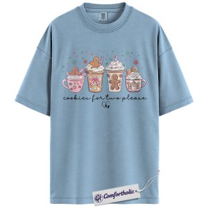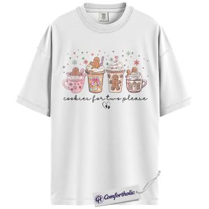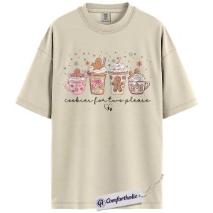 Cookies for Two Please Shirt, Christmas Pregnancy Announcement T-Shirt, Cute Gingerbread Hot Cocoa Graphic Tee, Holiday Reveal Gift for Moms-to-Be, Christmas Comfort Colors Shirt