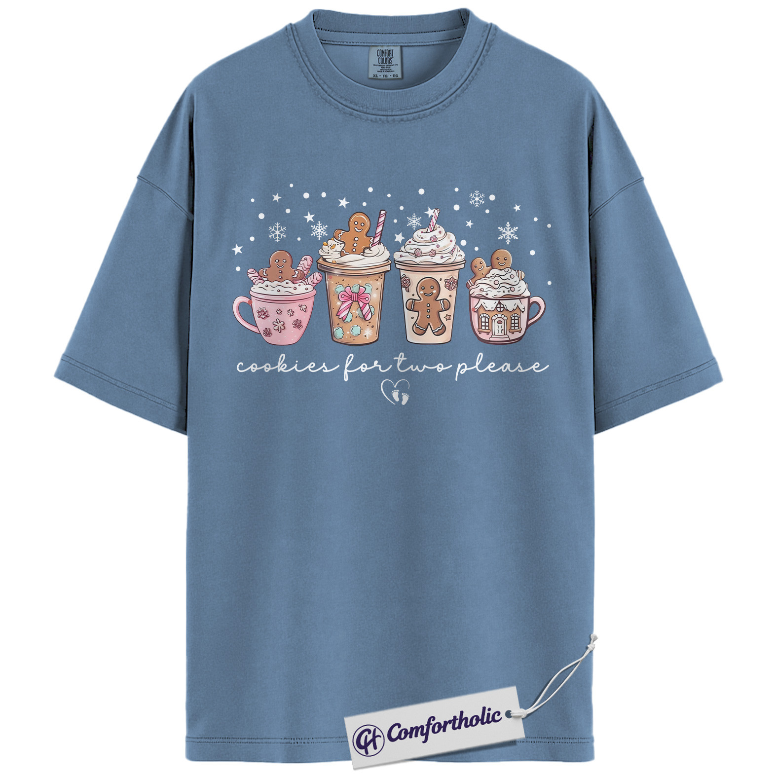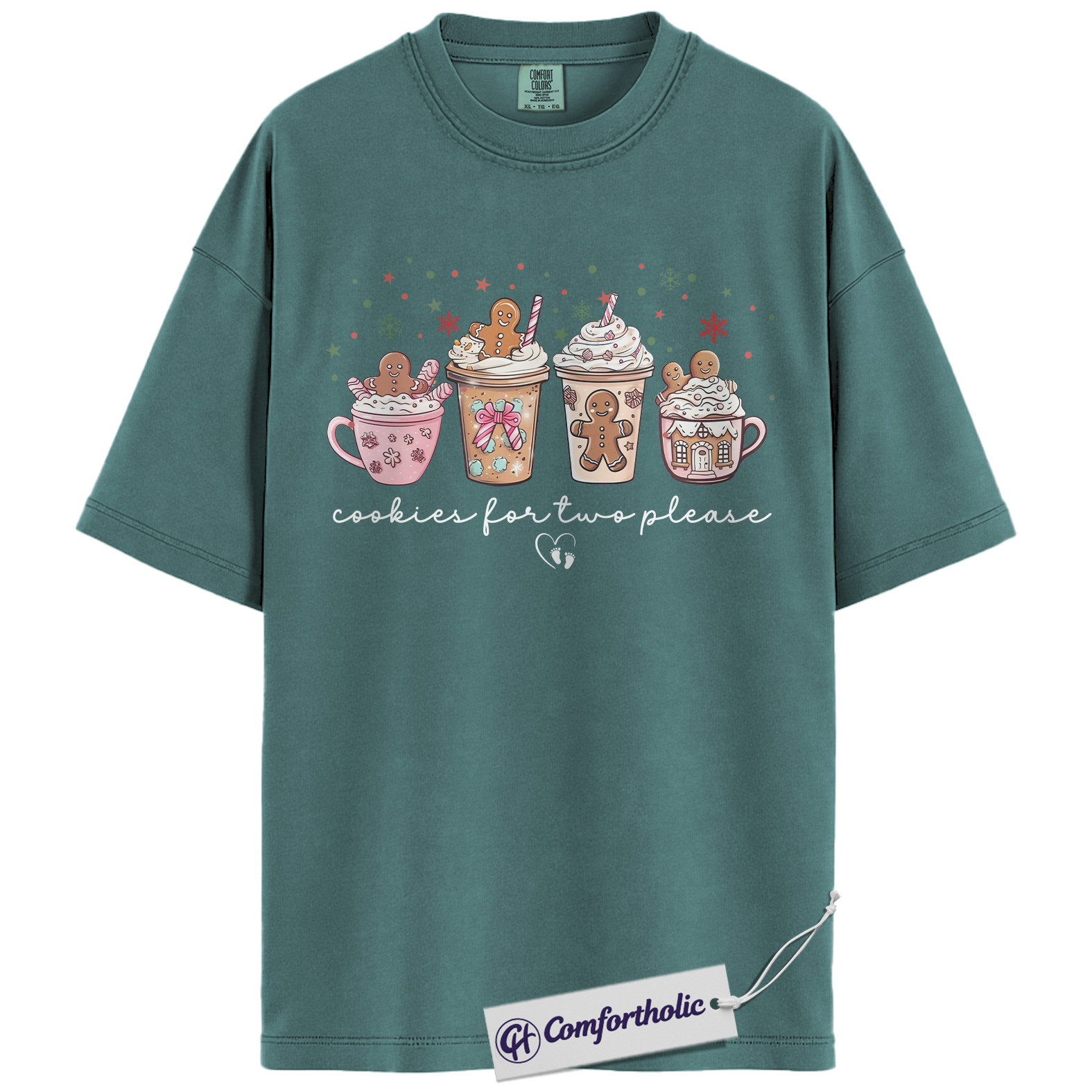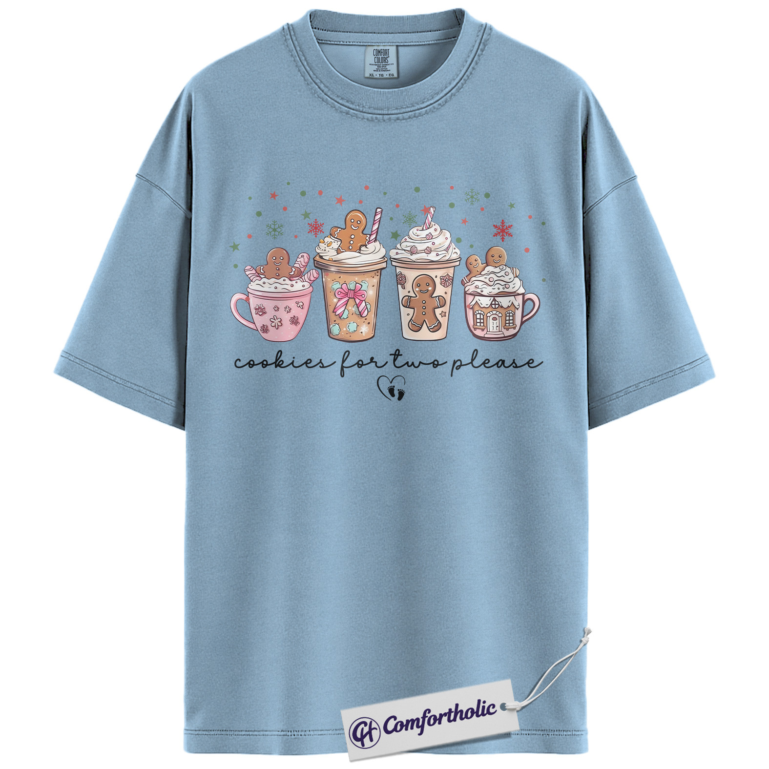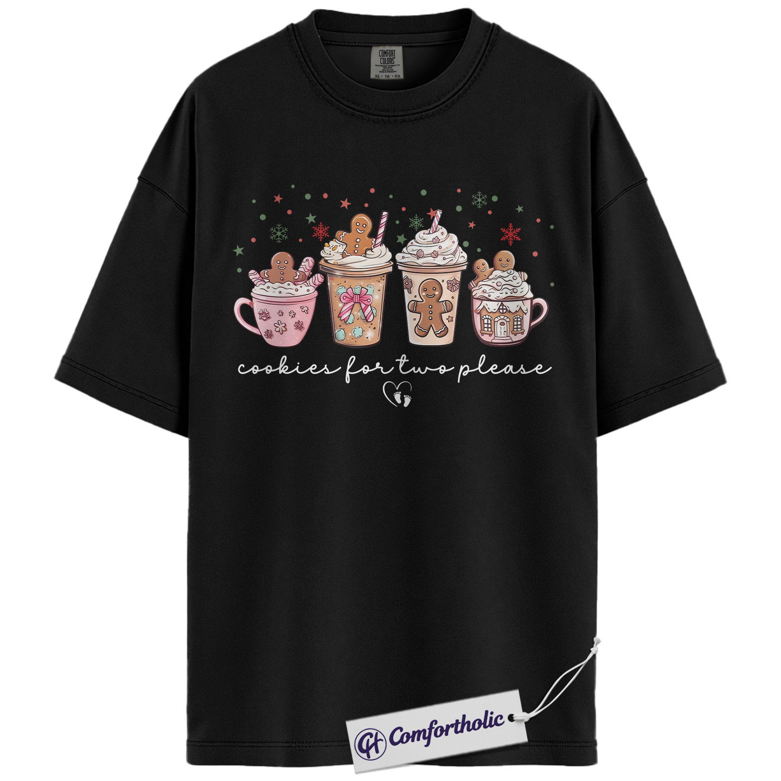 Cookies for Two Please Shirt, Christmas Pregnancy Announcement T-Shirt, Cute Gingerbread Hot Cocoa Graphic Tee, Holiday Reveal Gift for Moms-to-Be, Christmas Comfort Colors Shirt
