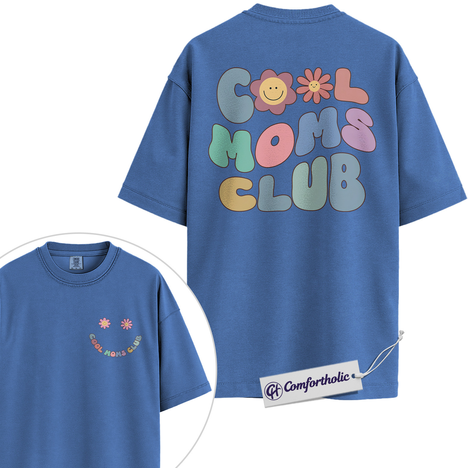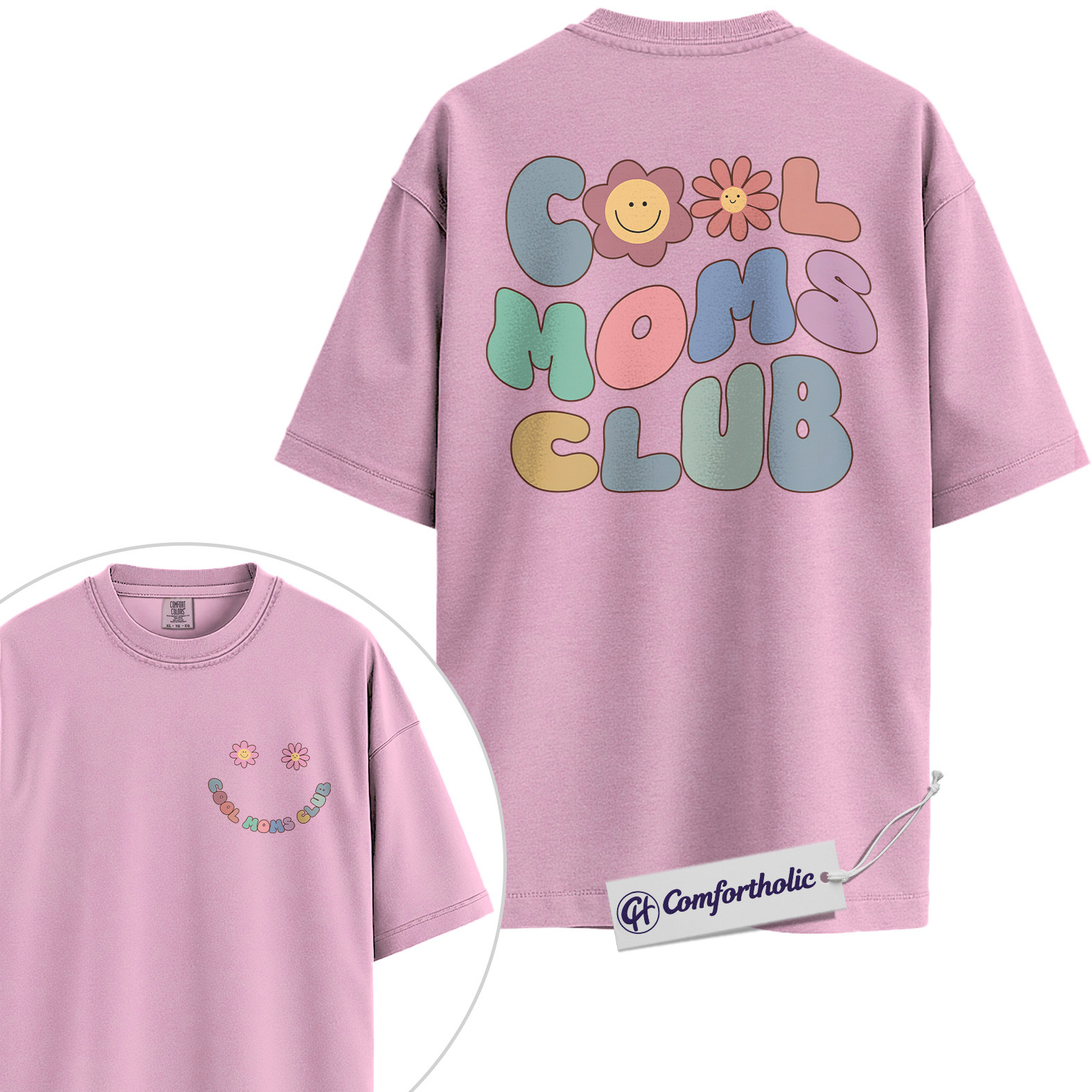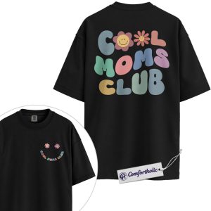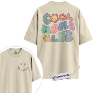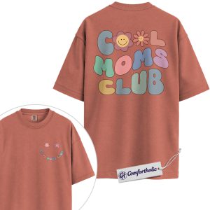 Cool Moms Club Shirt, Retro Pastel Smiley Flower Mom Life Graphic T-Shirt, Aesthetic Cute Mama Tee, Mother’s Day Gift for Moms, Family Comfort Colors Shirt 2-Sided
