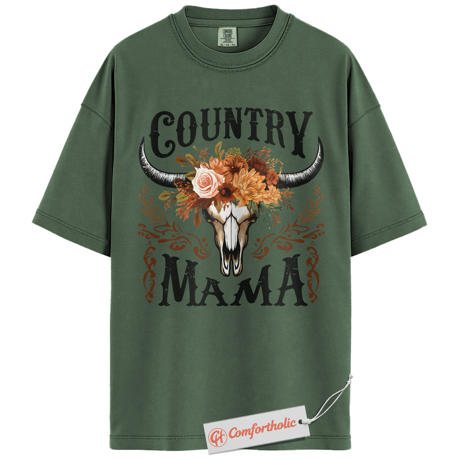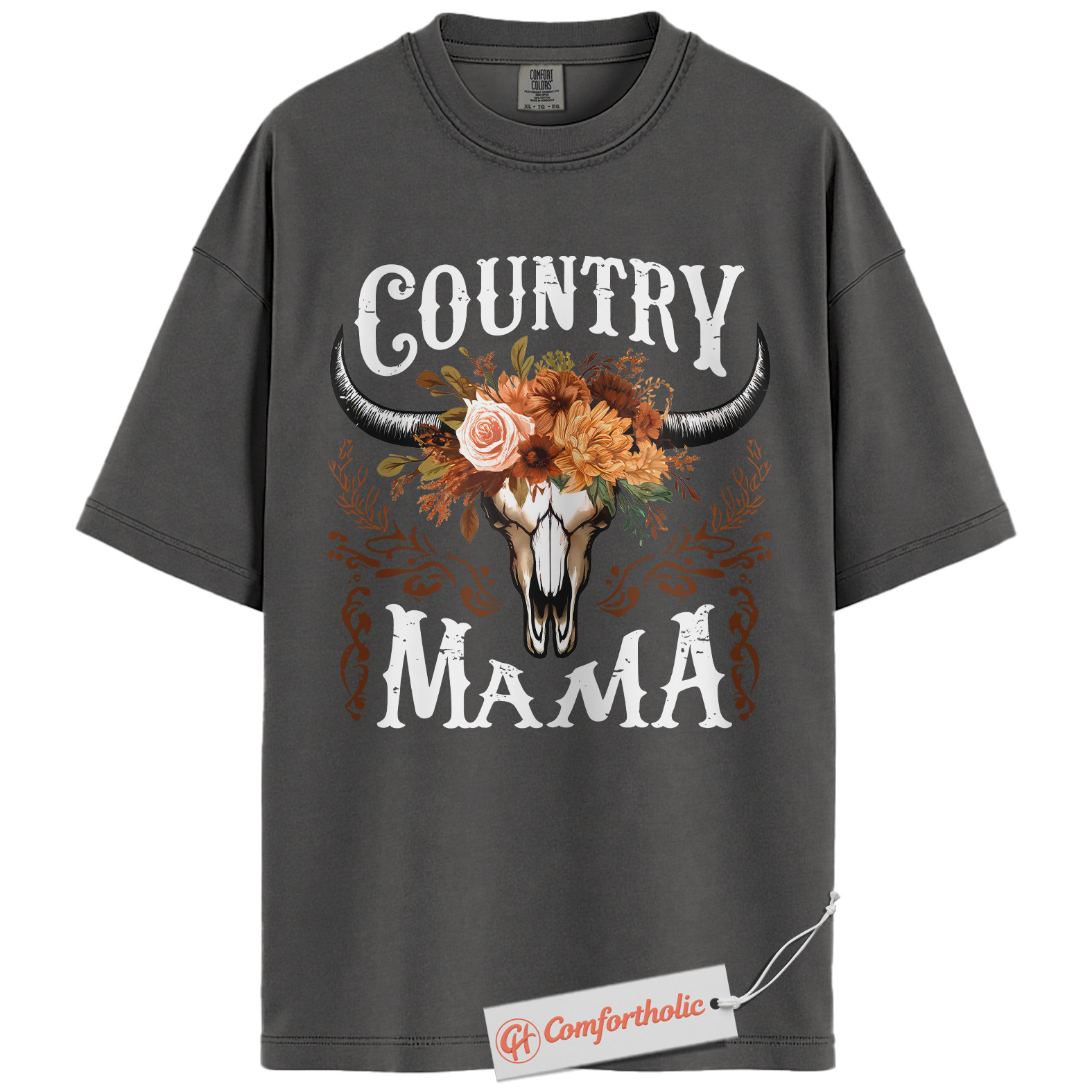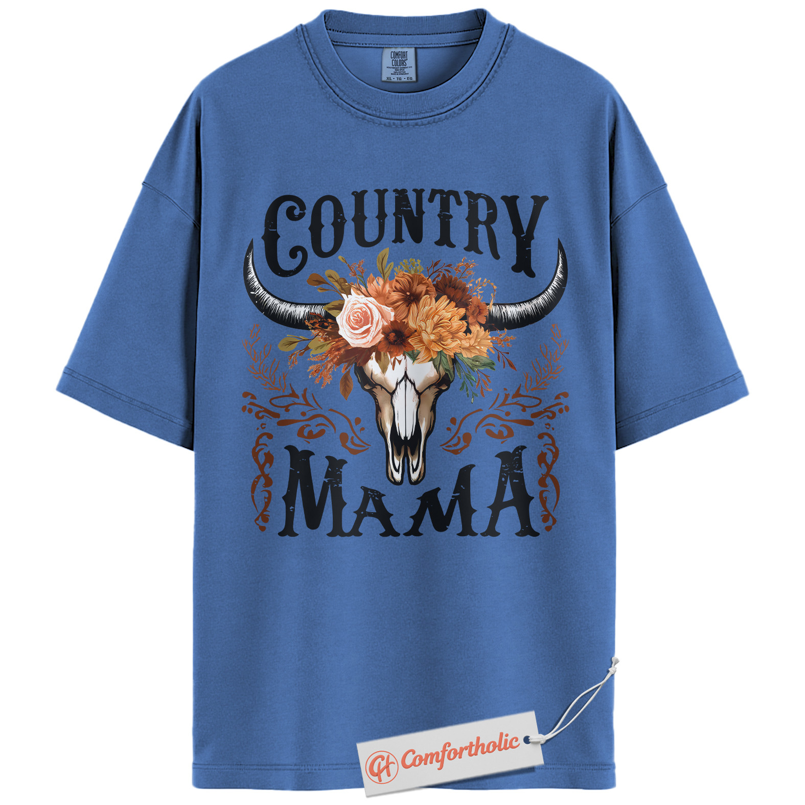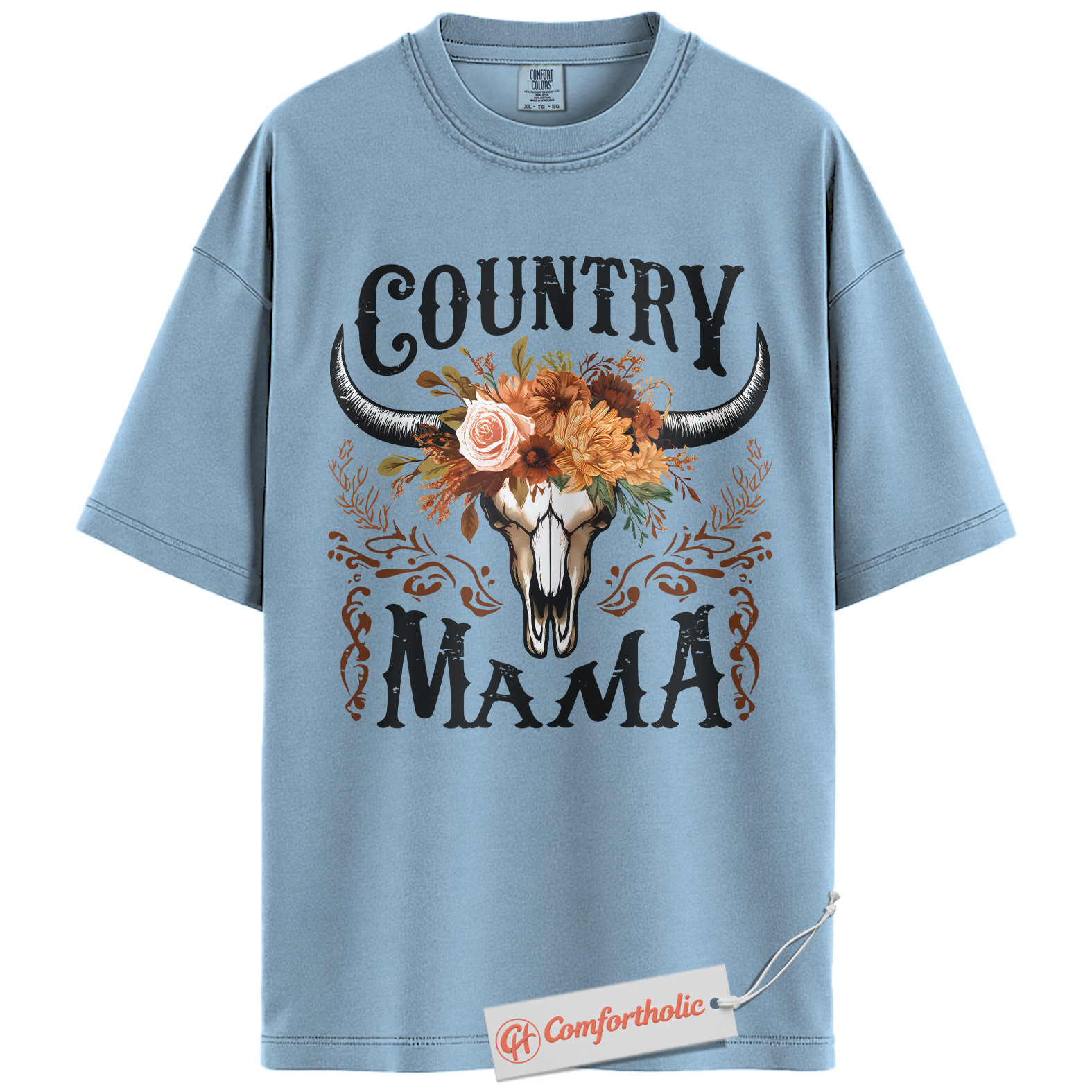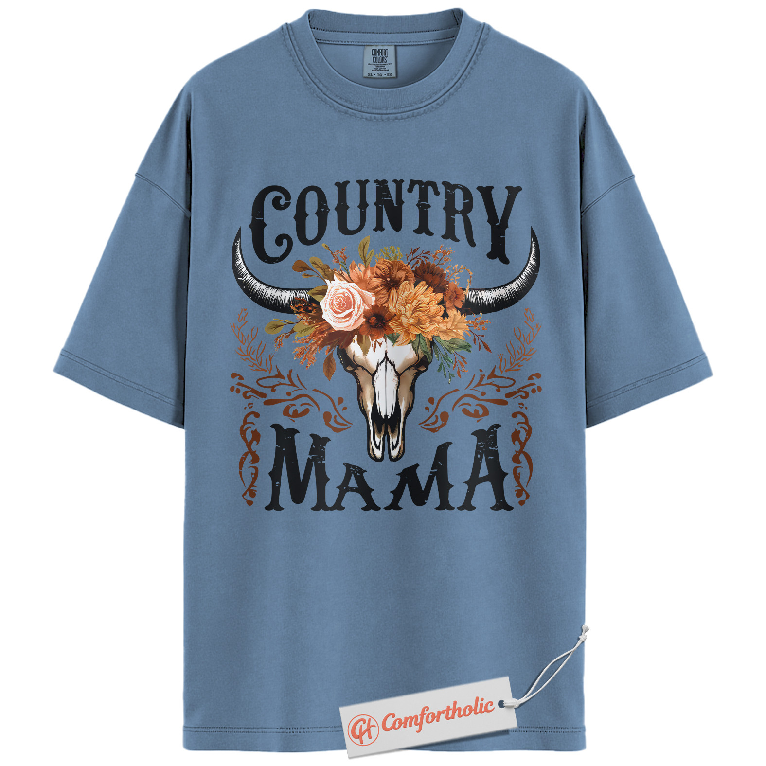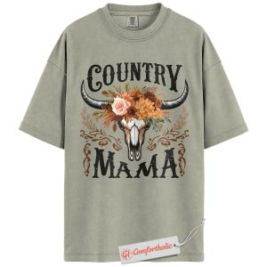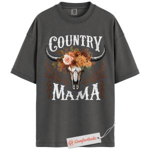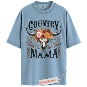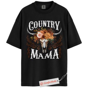 Country Mama Shirt, Western Cow Skull Mama T-Shirt, Boho Cowgirl Women’s Graphic Tee, Rustic Farm Mom Gift, Family Comfort Colors Shirt