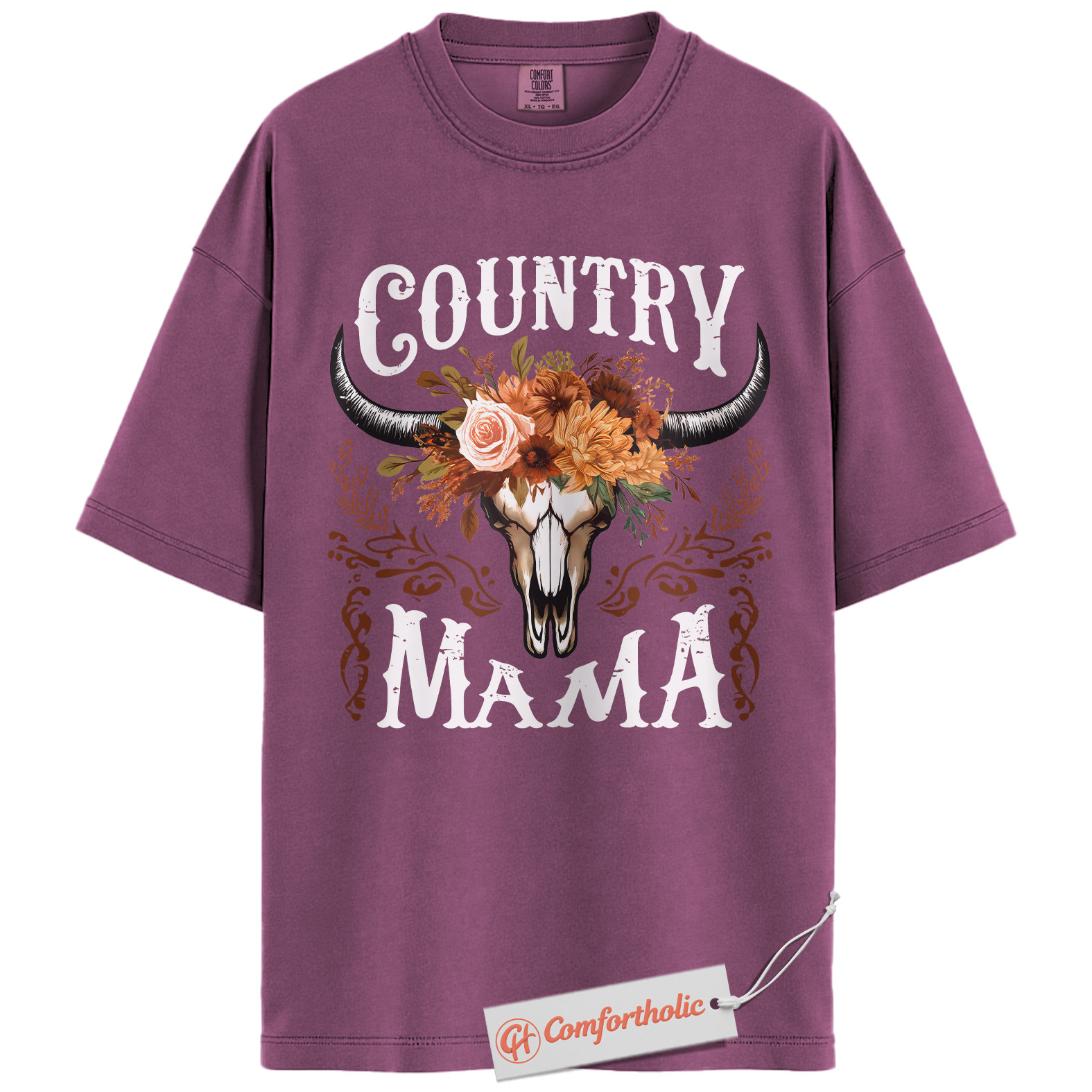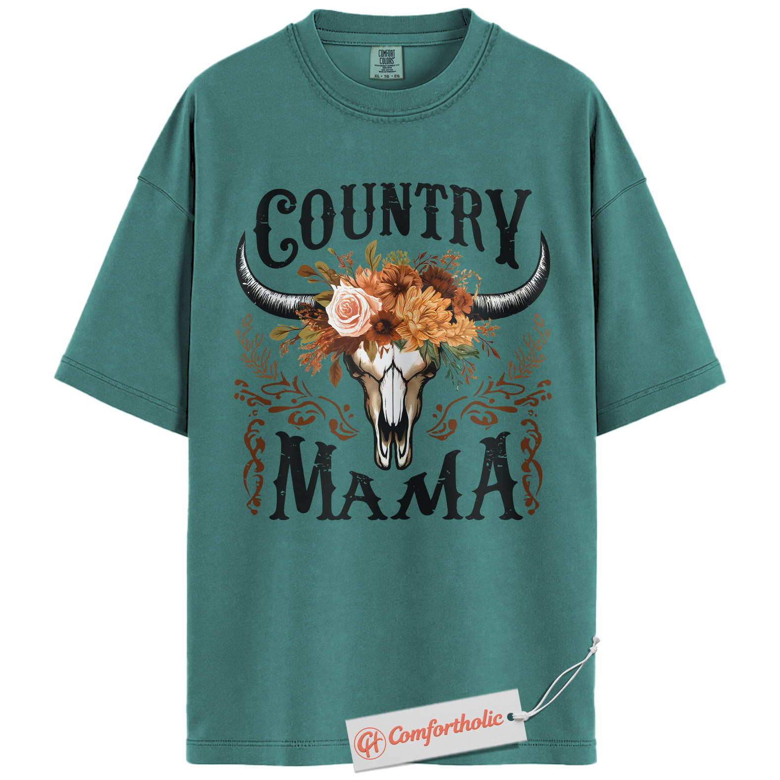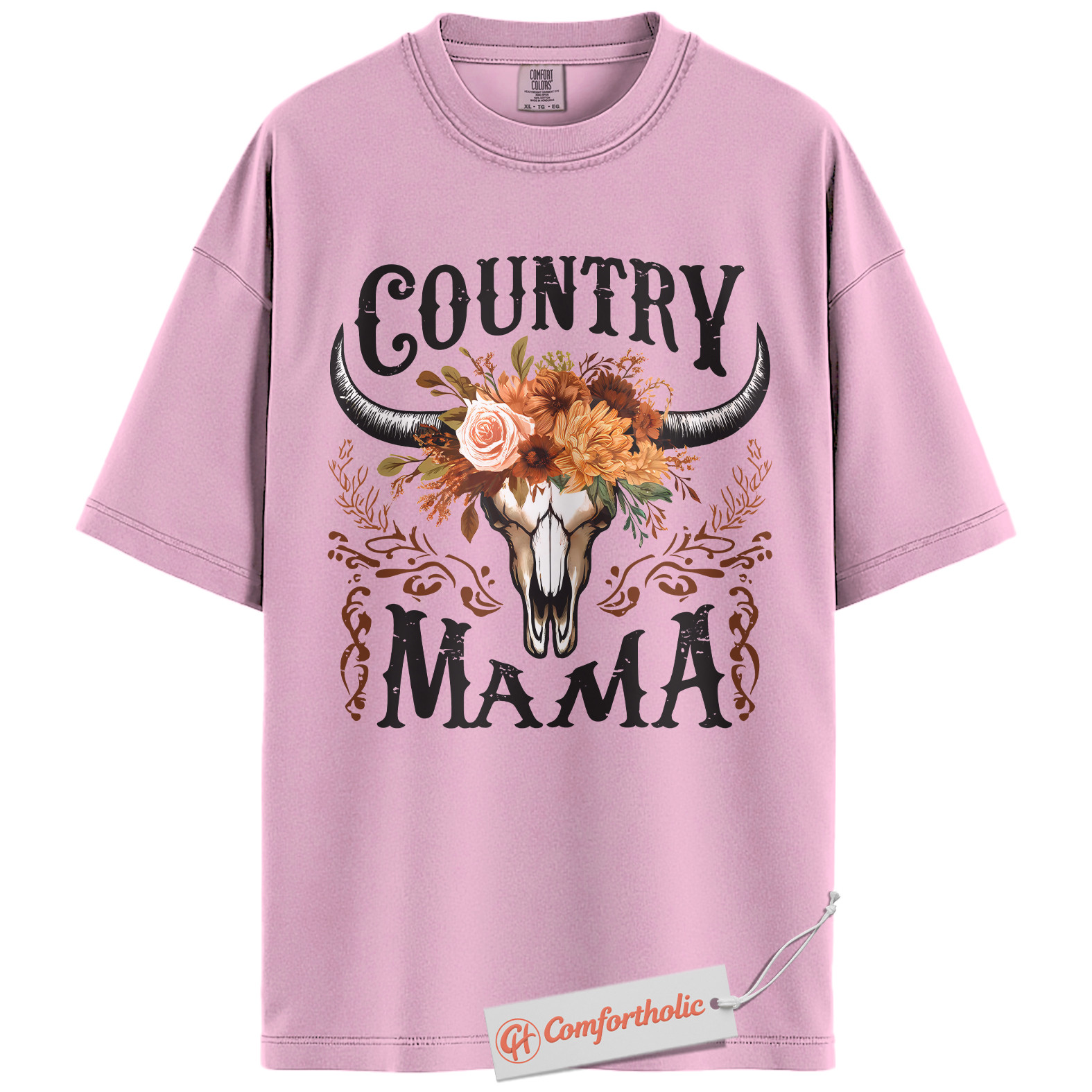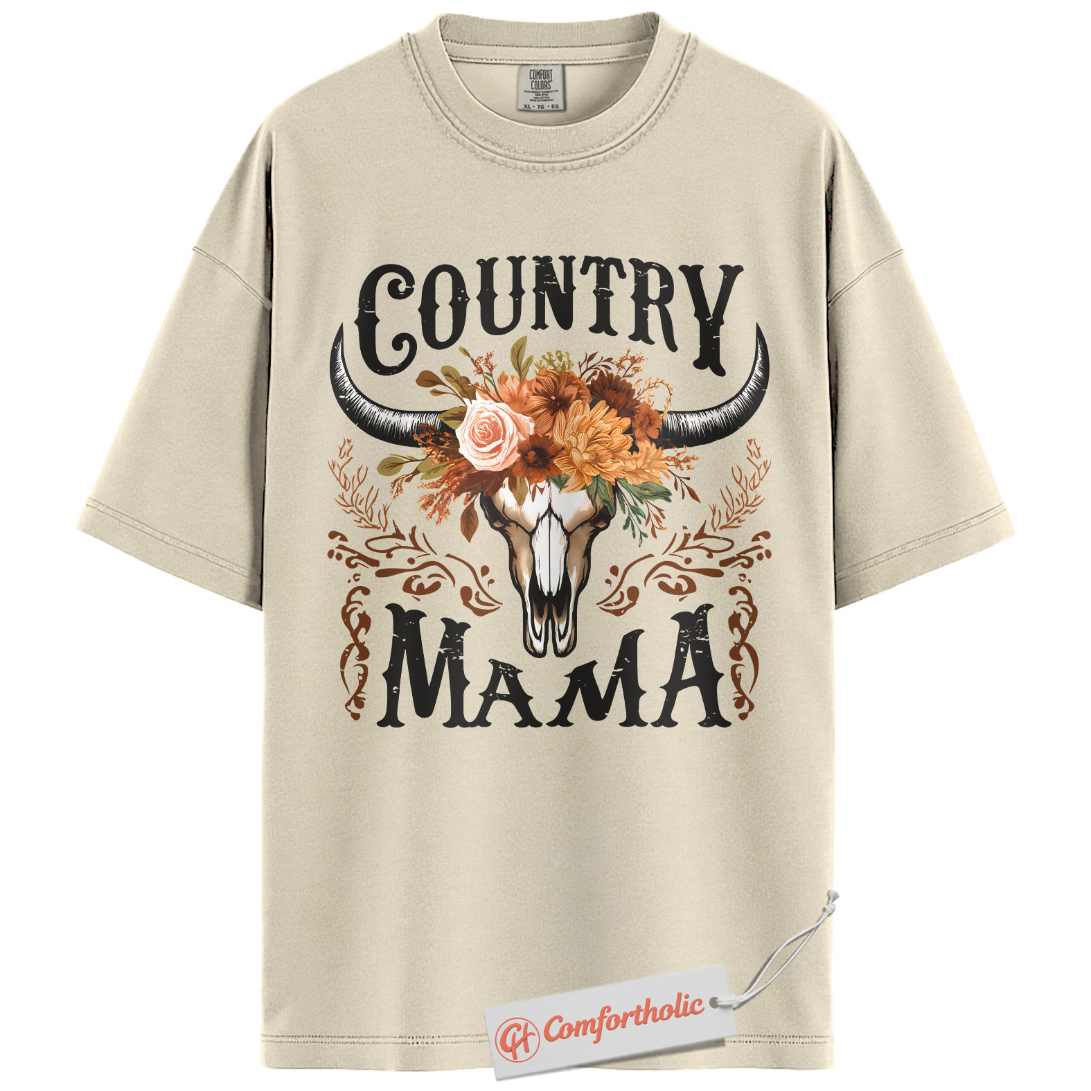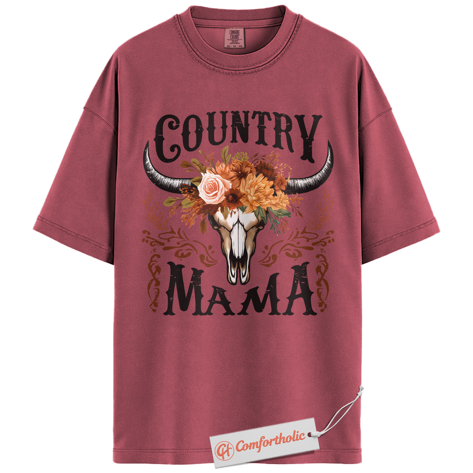 Country Mama Shirt, Western Cow Skull Mama T-Shirt, Boho Cowgirl Women’s Graphic Tee, Rustic Farm Mom Gift, Family Comfort Colors Shirt