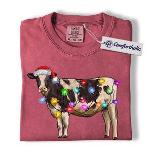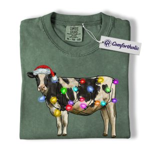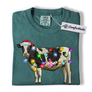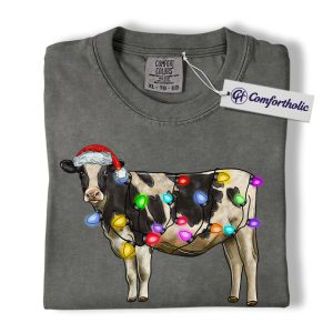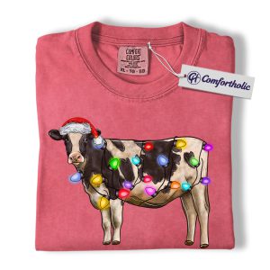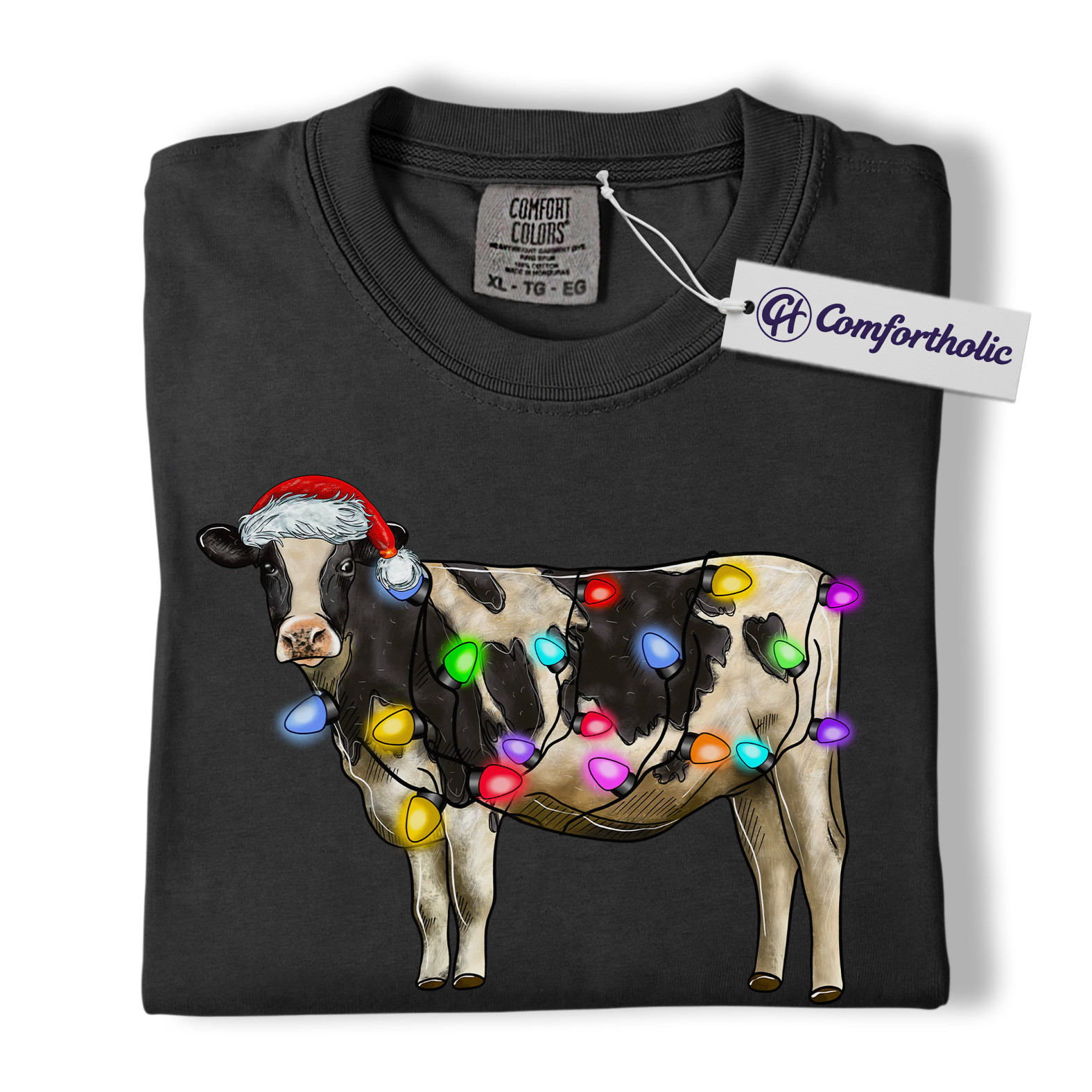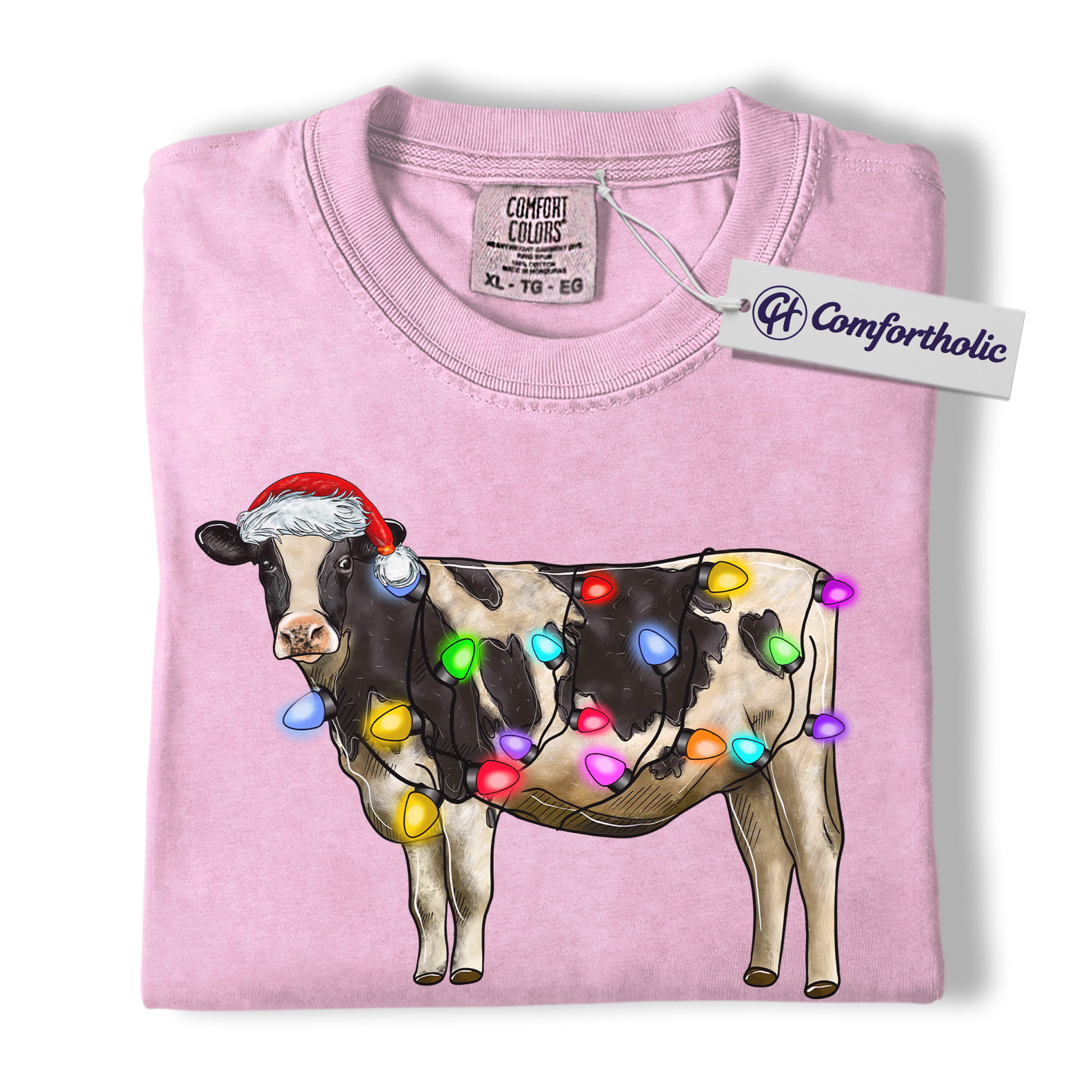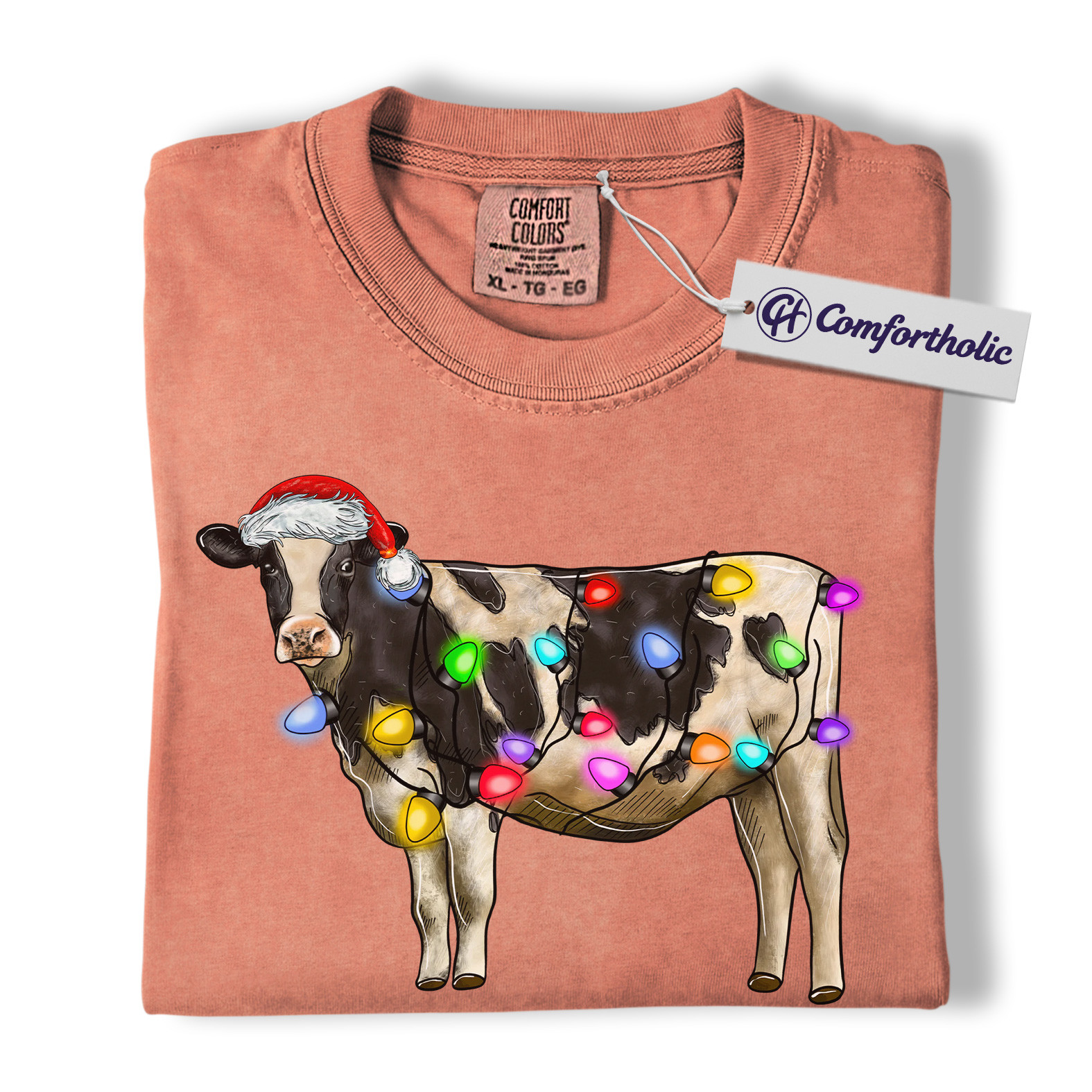 Cow Christmas Shirt, Funny Farm Animal Holiday T-Shirt, Cute Cow Lover Graphic Tee, Christmas Gift for Farmers and Cow Lovers, Christmas Comfort Colors Shirt