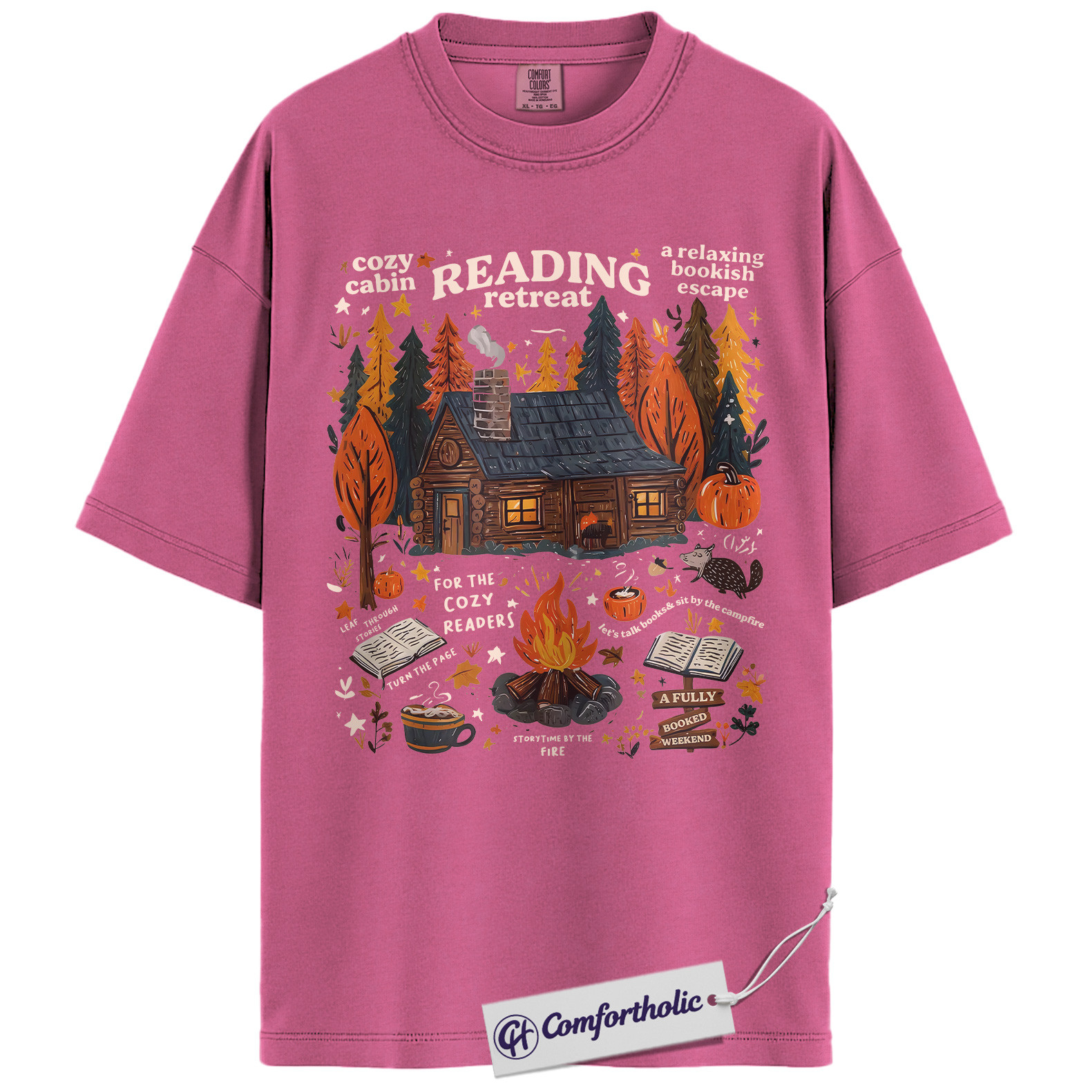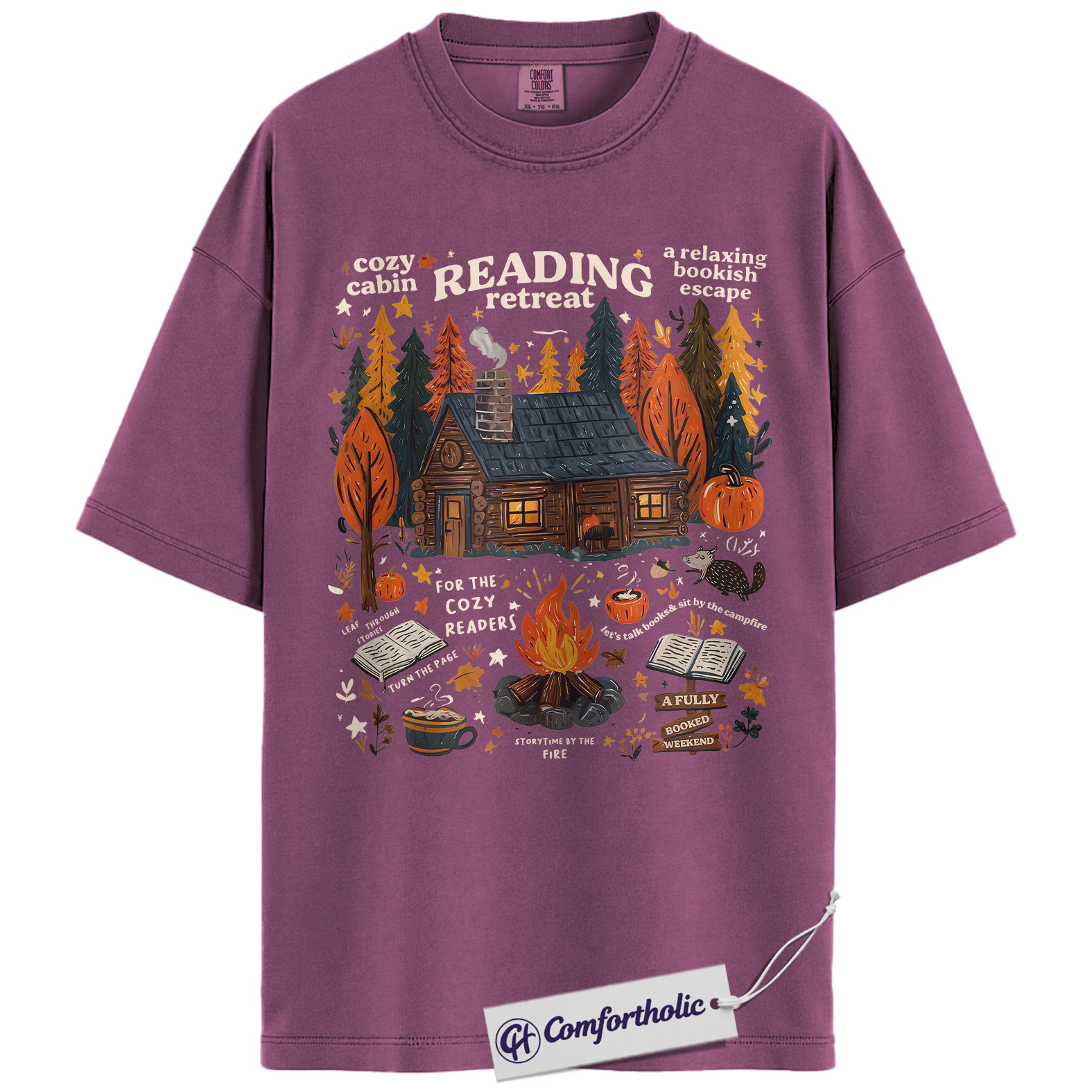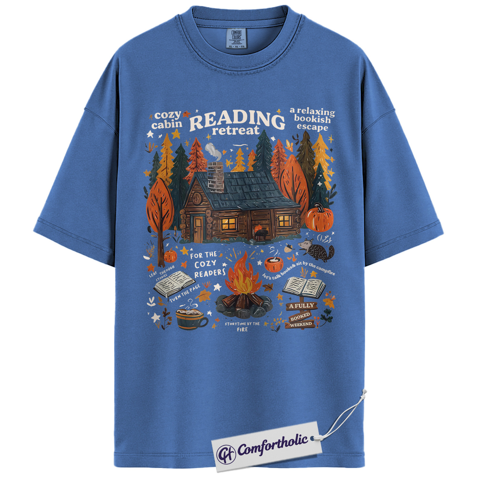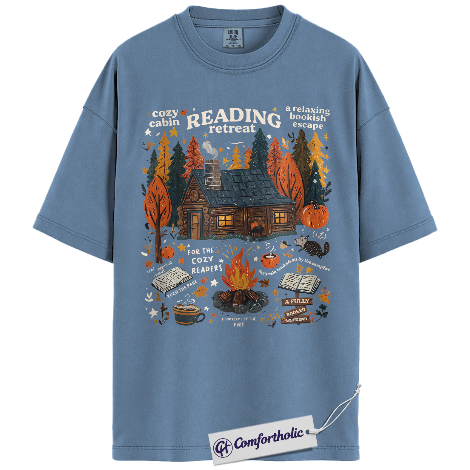 Cozy Reading Retreat Shirt, Fall Bookish Cabin T-Shirt, Autumn Reader Graphic Tee, Cozy Campfire Reading Lover Gift, Book Lover Comfort Colors Shirt