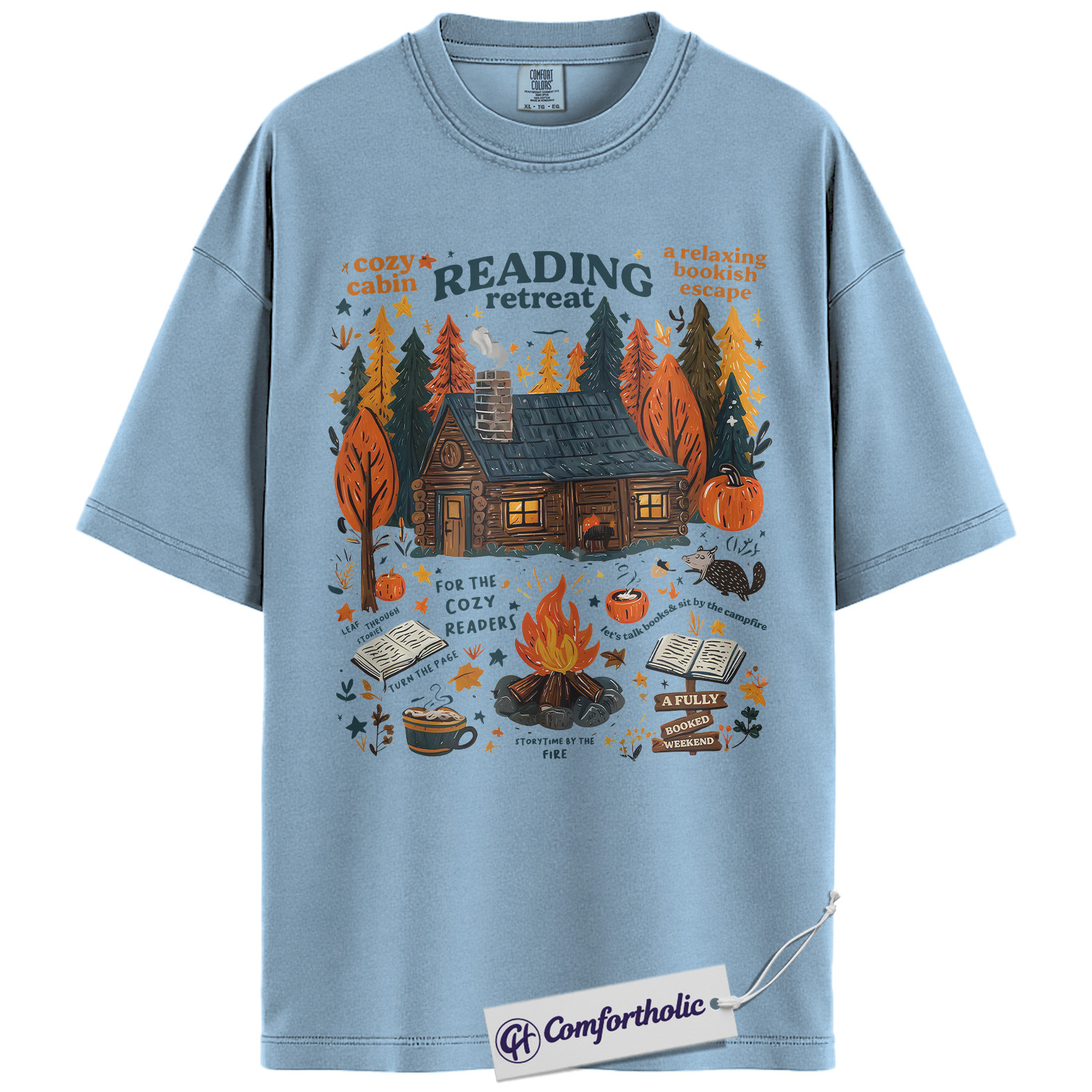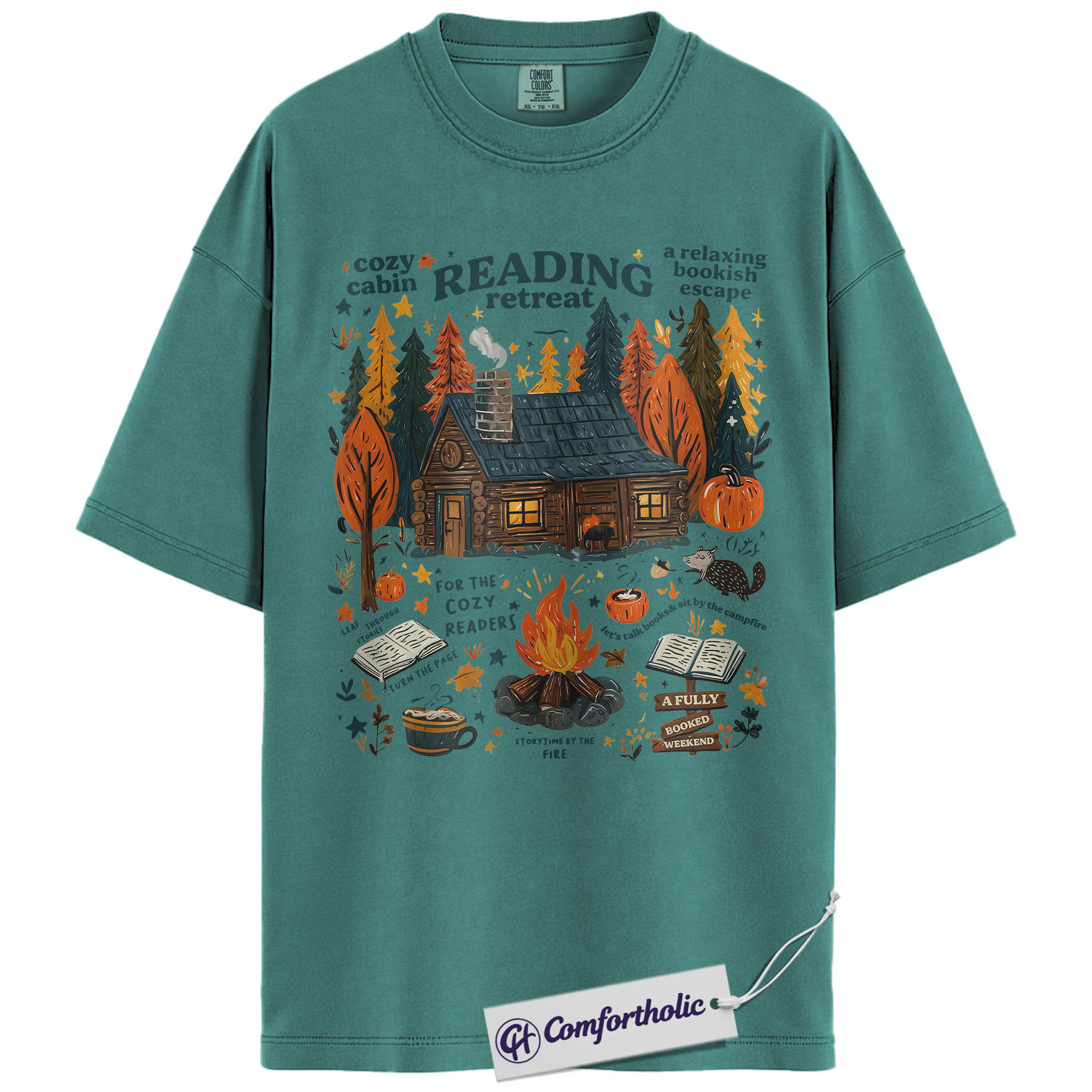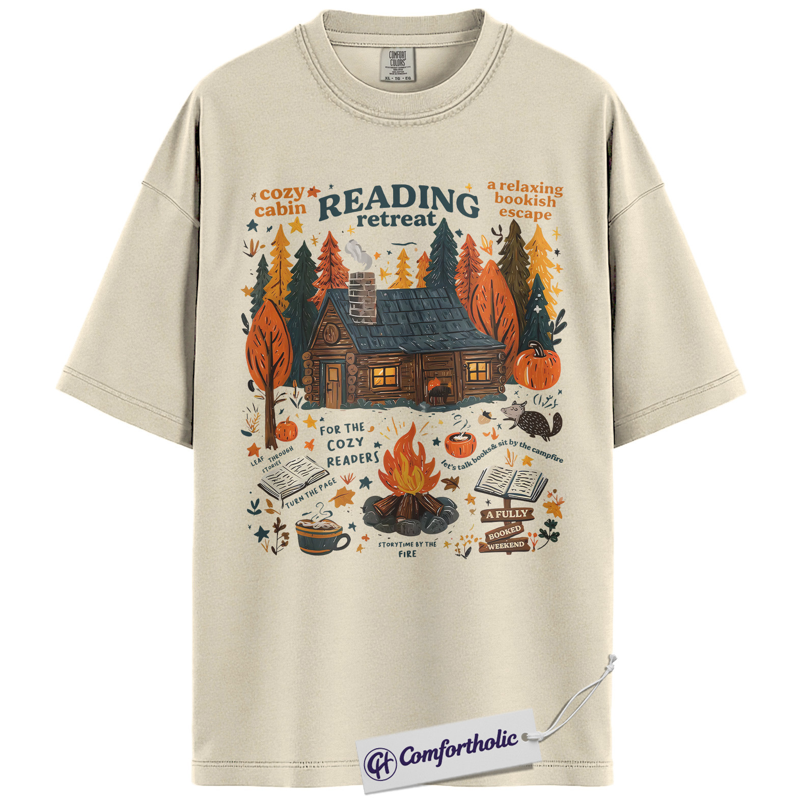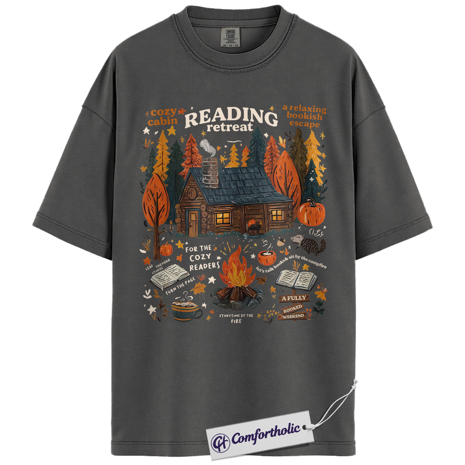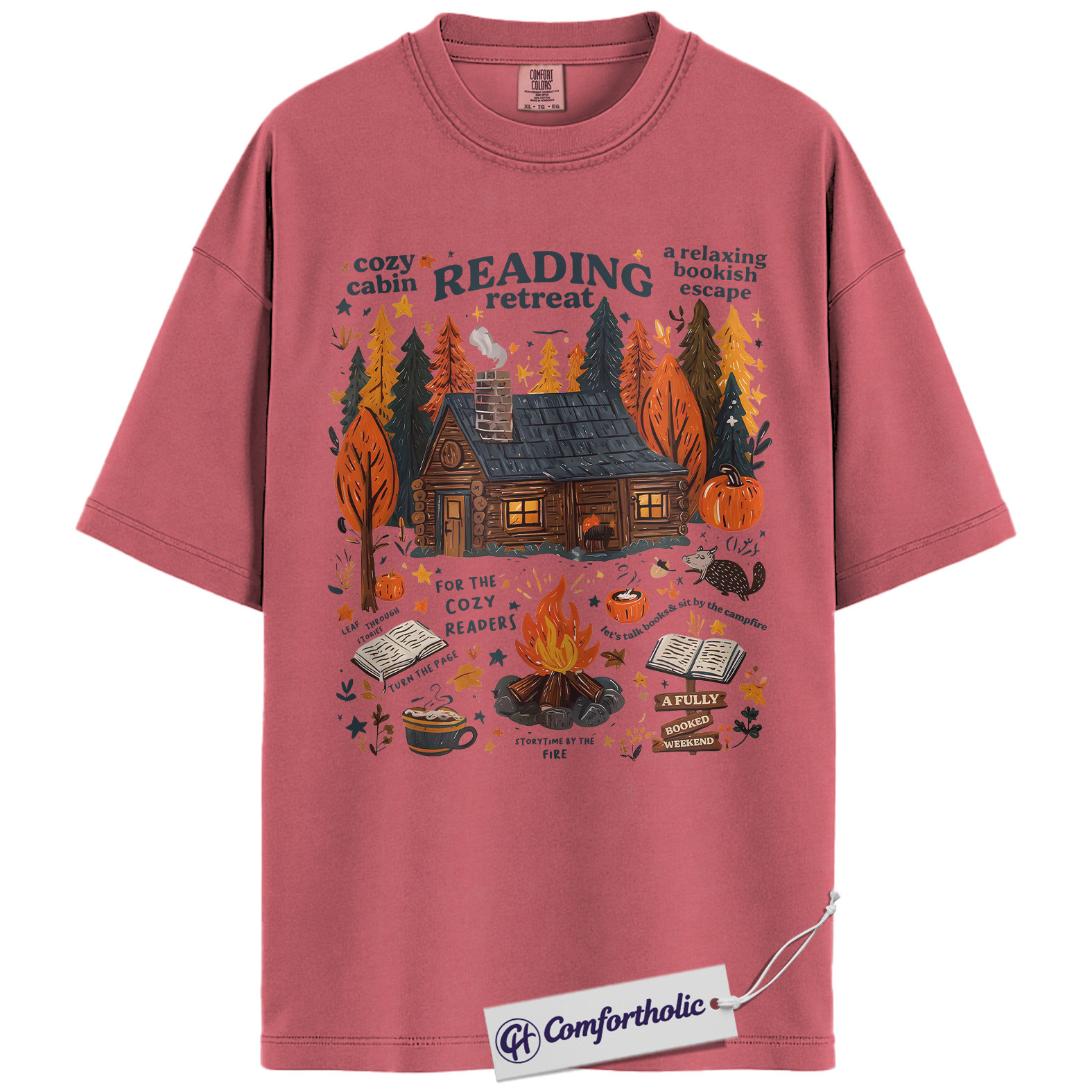 Cozy Reading Retreat Shirt, Fall Bookish Cabin T-Shirt, Autumn Reader Graphic Tee, Cozy Campfire Reading Lover Gift, Book Lover Comfort Colors Shirt
