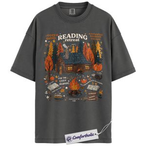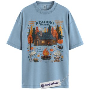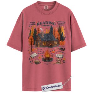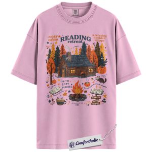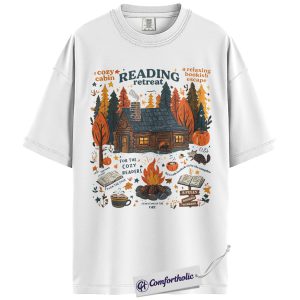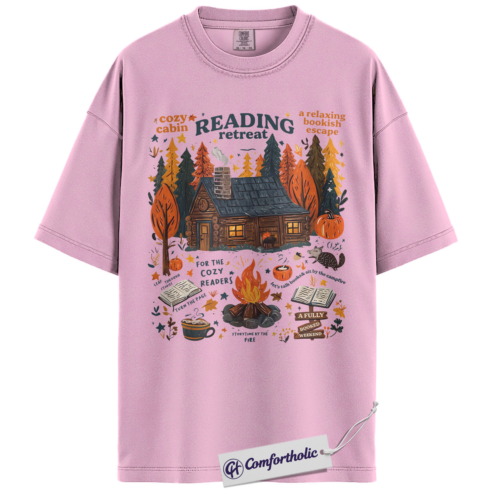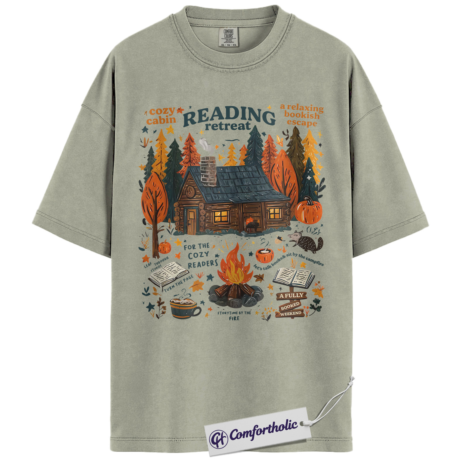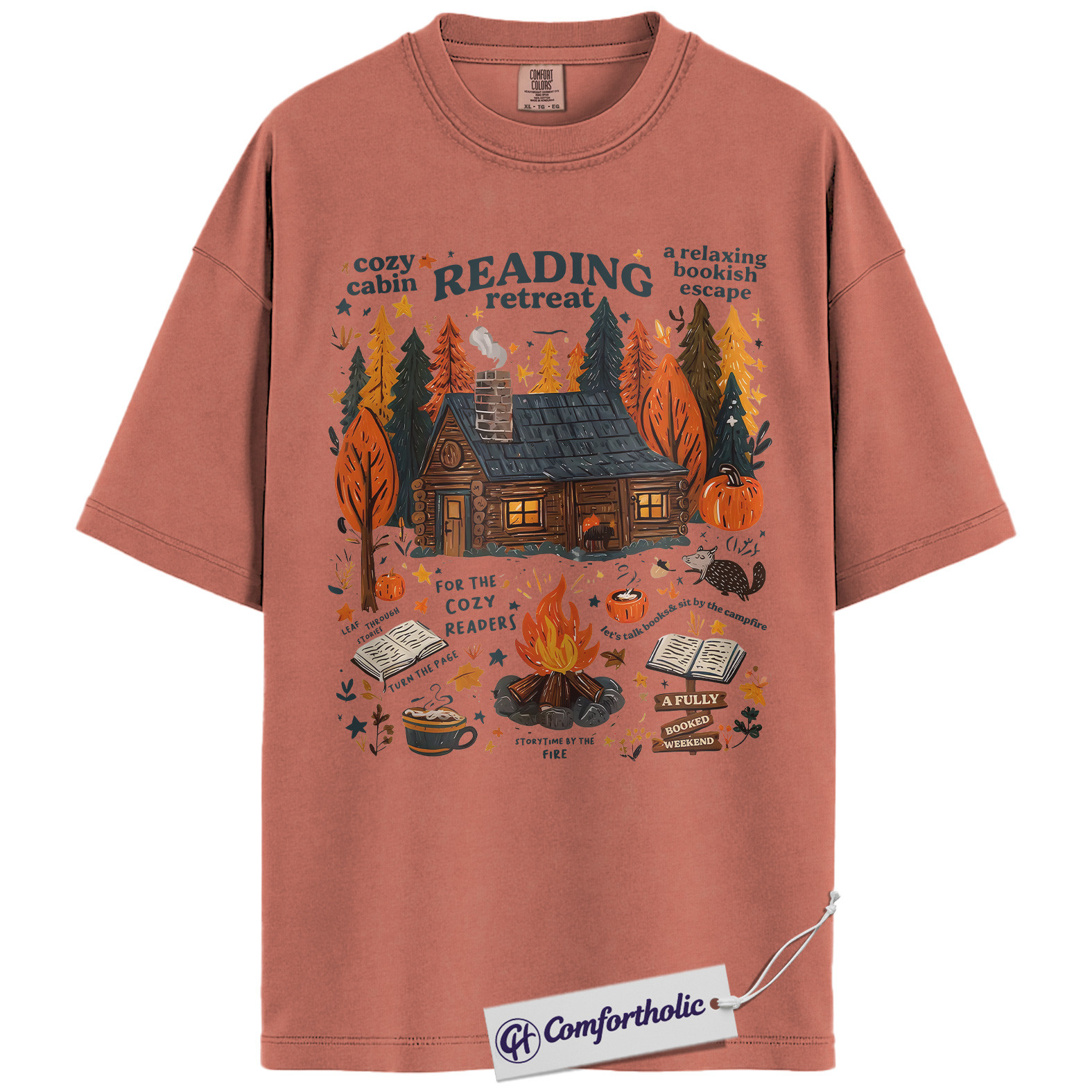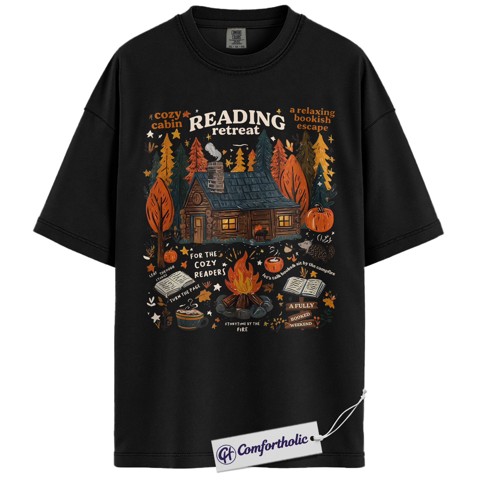 Cozy Reading Retreat Shirt, Fall Bookish Cabin T-Shirt, Autumn Reader Graphic Tee, Cozy Campfire Reading Lover Gift, Book Lover Comfort Colors Shirt