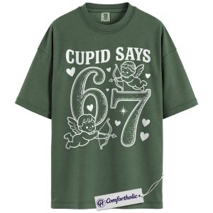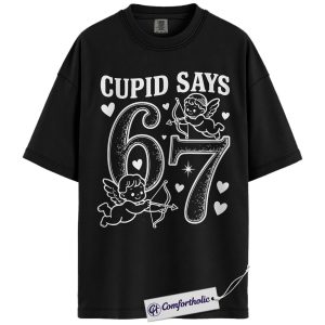 Cupid Says Shirt, Retro Valentine Cupid Graphic Tee, Cute Angel Aesthetic T-Shirt for Couples, Romantic Valentine’s Day Gift for Women, Comfort Colors Shirt