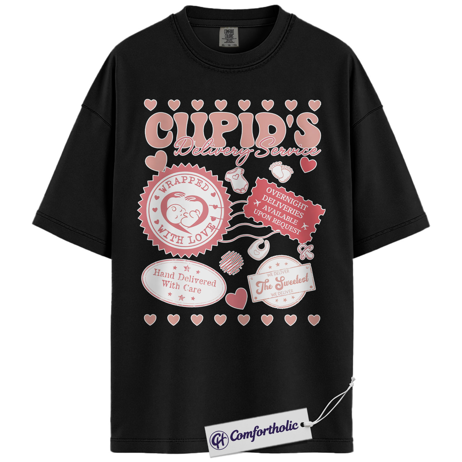 Cupid’s Delivery Service Shirt, Cute Valentine Graphic Tee, Romantic Love Heart T-Shirt, Valentine’s Day Gift for Couples, Comfort Colors Shirt