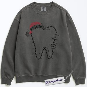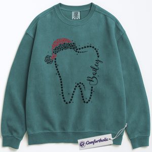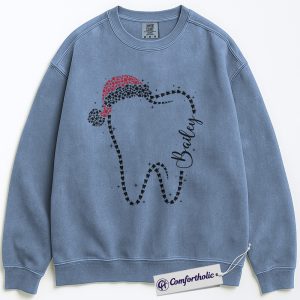 Custom Dental Christmas Sweatshirt, Personalized Tooth Pullover, Cute Dentist Holiday Graphic Crewneck, Gift for Dental Hygienist or Assistant, Christmas Comfort Colors Sweatshirt