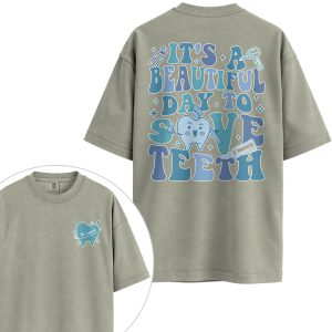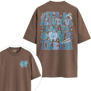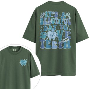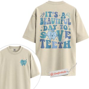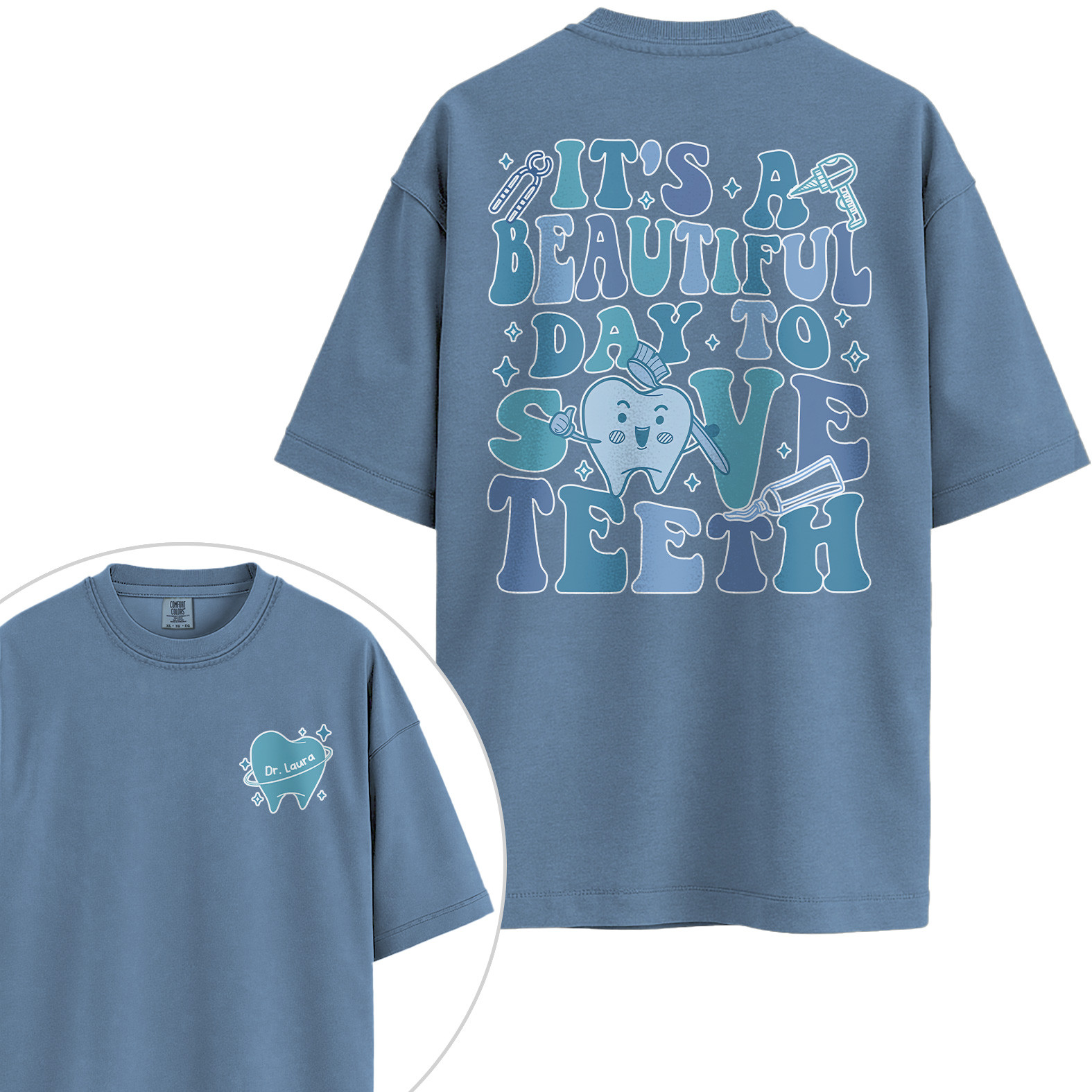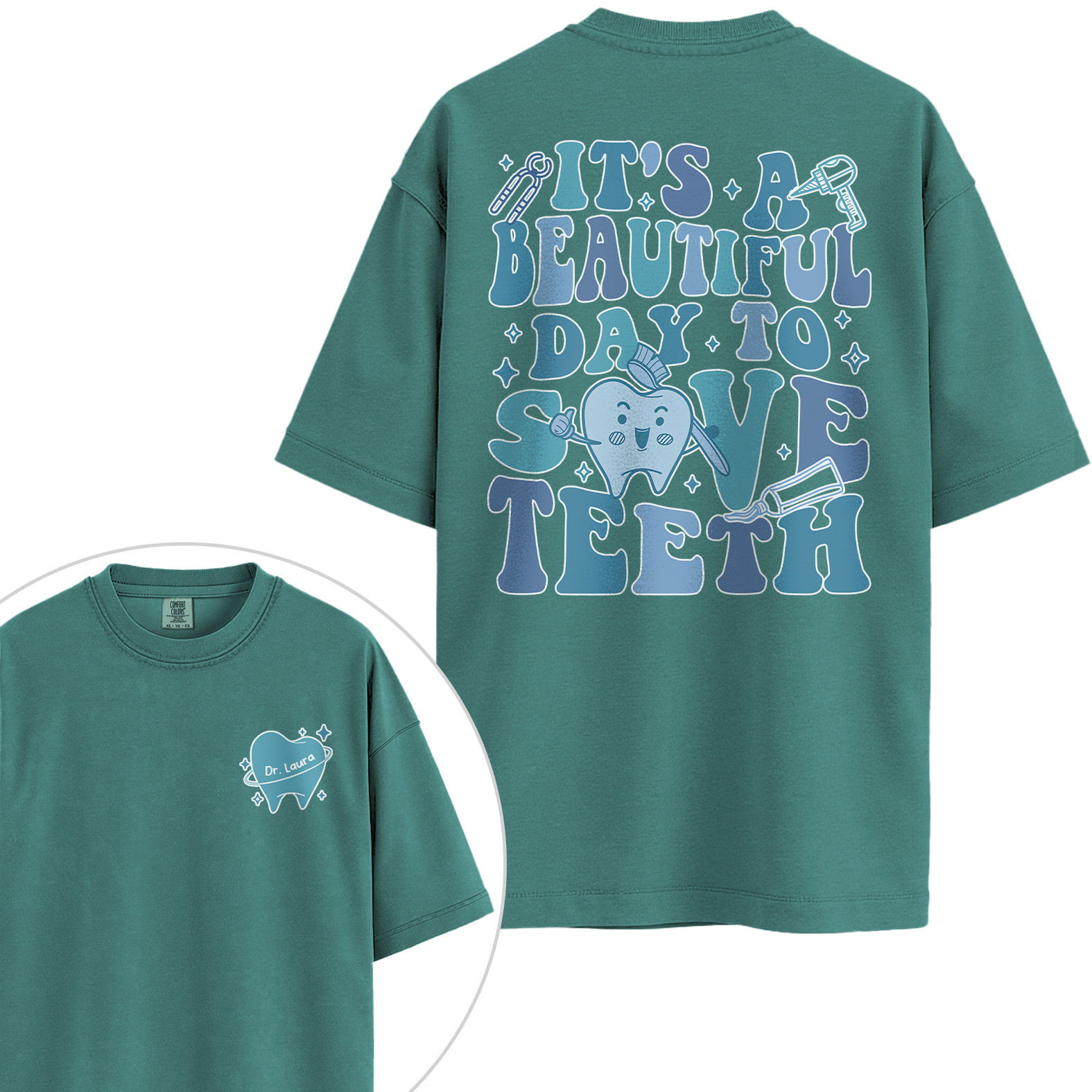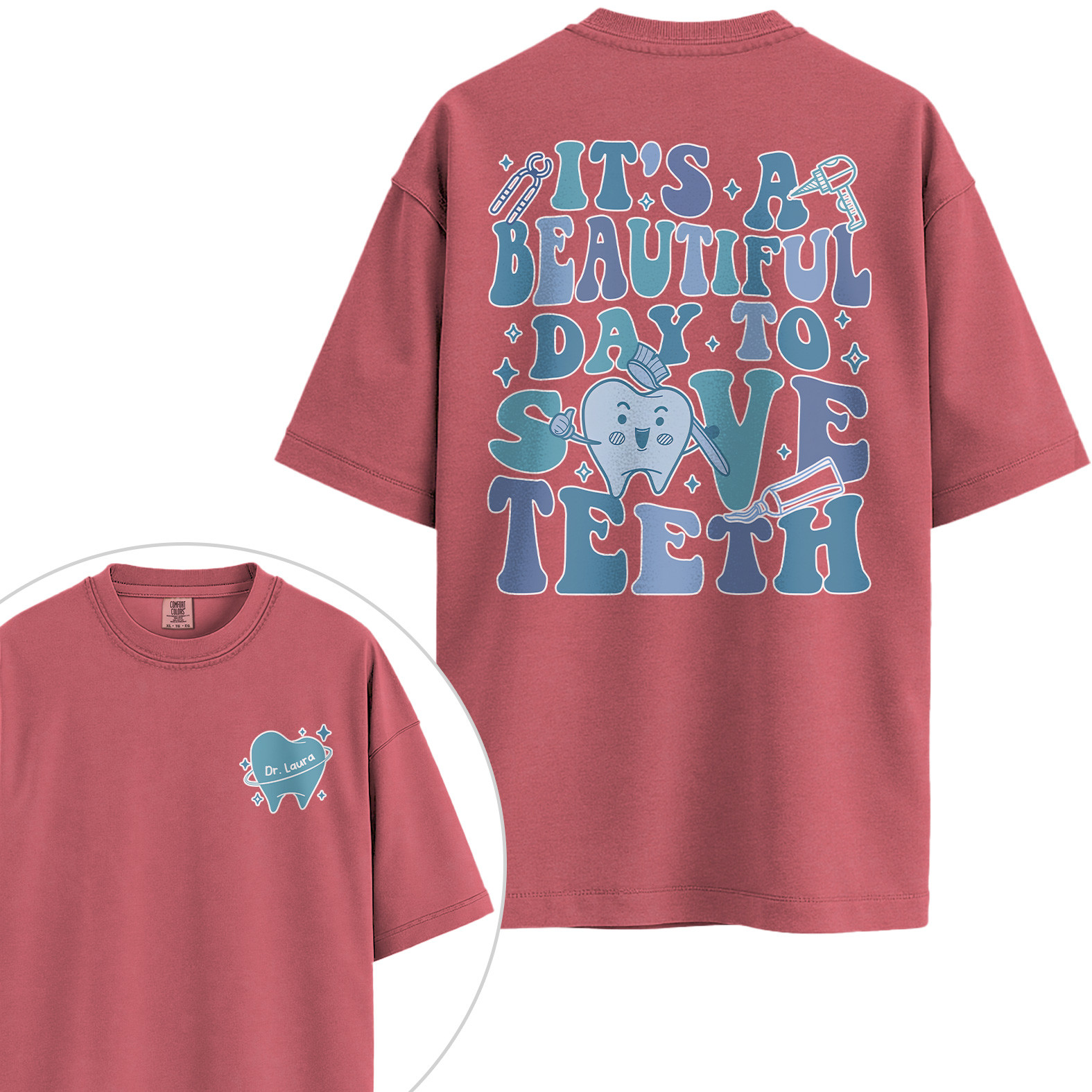 Custom Dentist Shirt, It’s a Beautiful Day to Save Teeth T-Shirt, Cute Tooth Graphic Tee, Personalized Gift for Dental Hygienists, Dental Comfort Colors Shirt 2-Sided