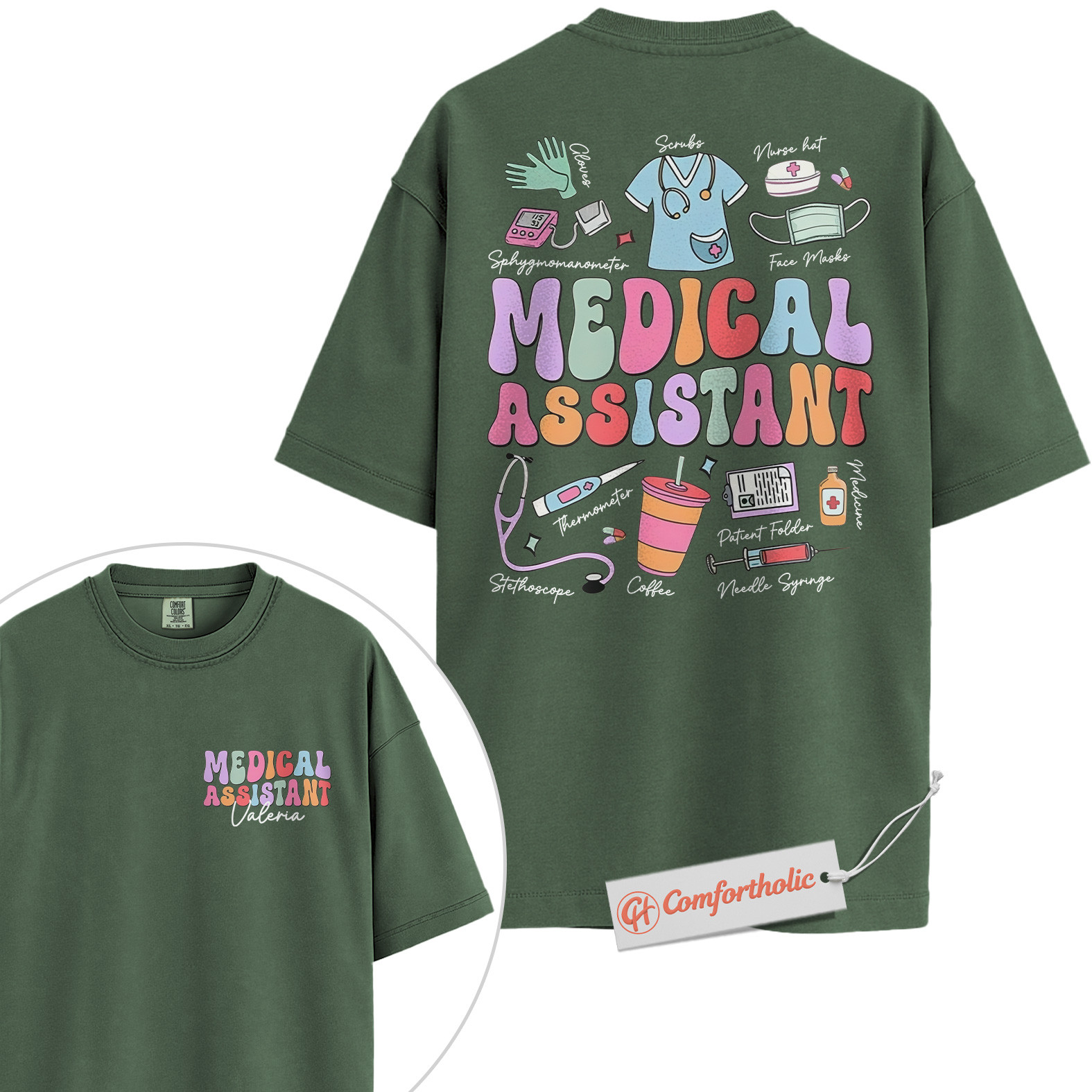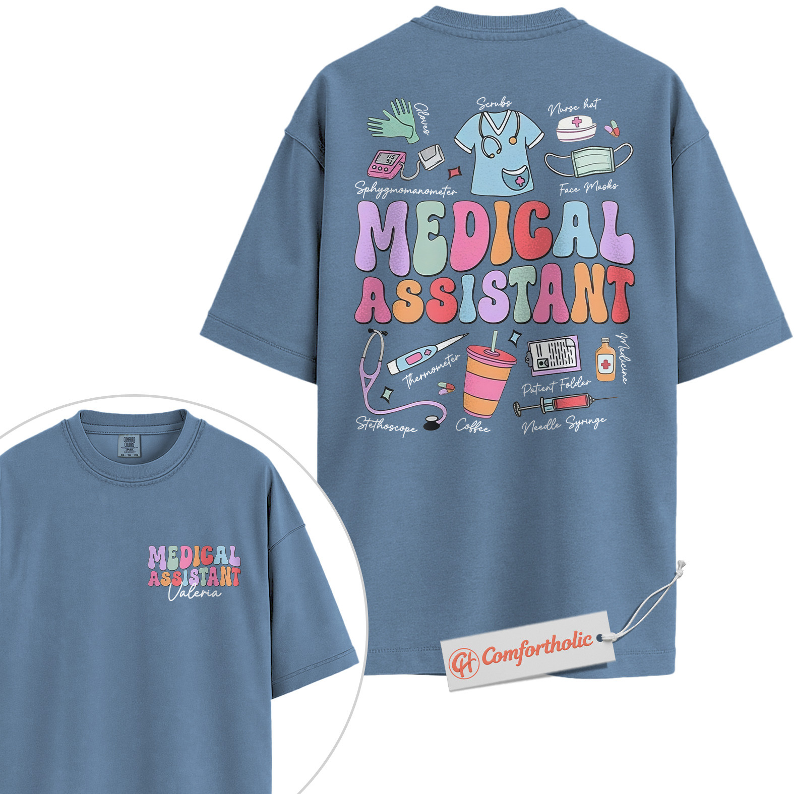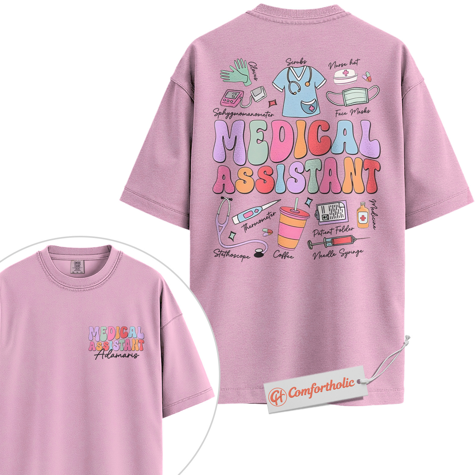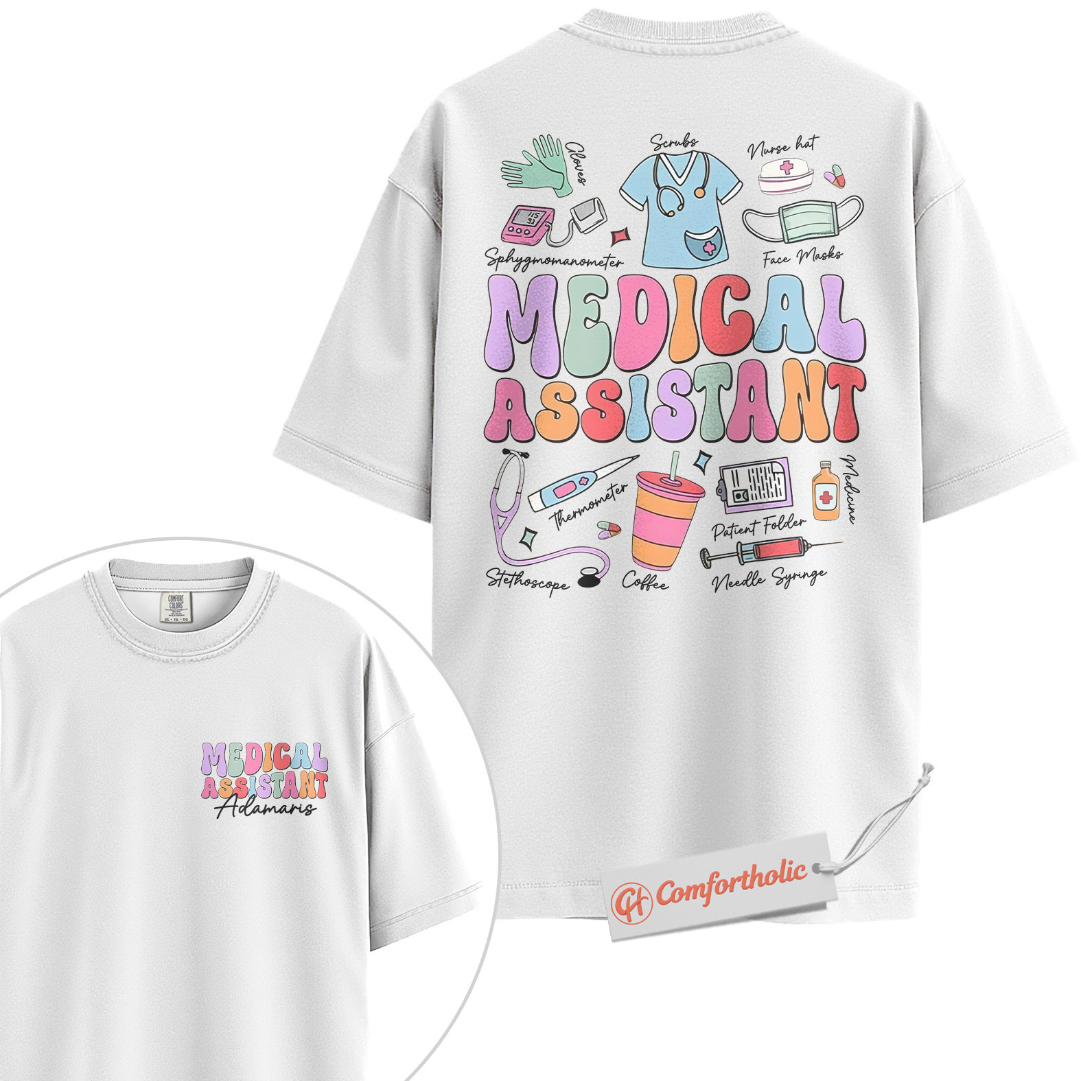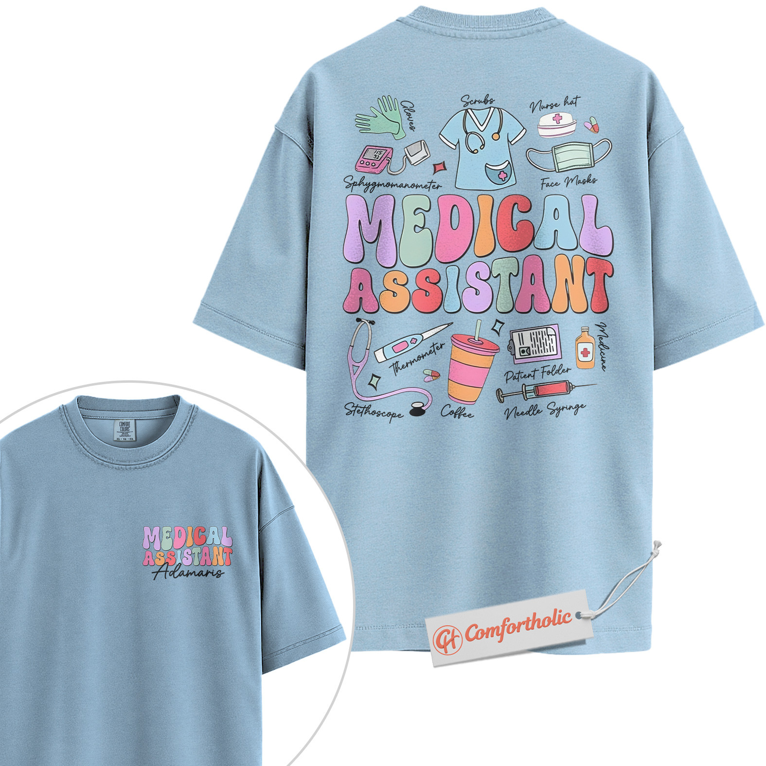 Custom Medical Assistant Shirt, Personalized Healthcare Worker T-Shirt, Cute Medical Supplies Graphic Tee, Gift for MA Professionals, MA Comfort Colors Shirt 2-Sided