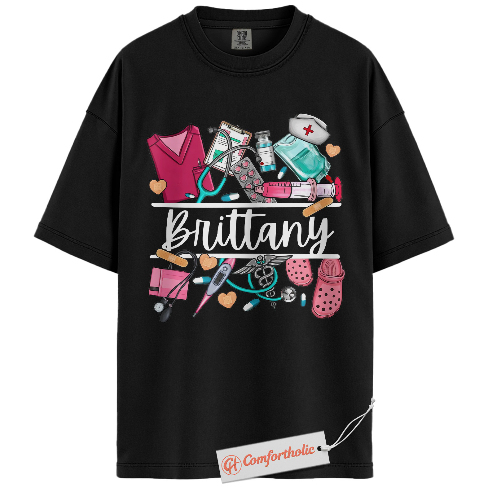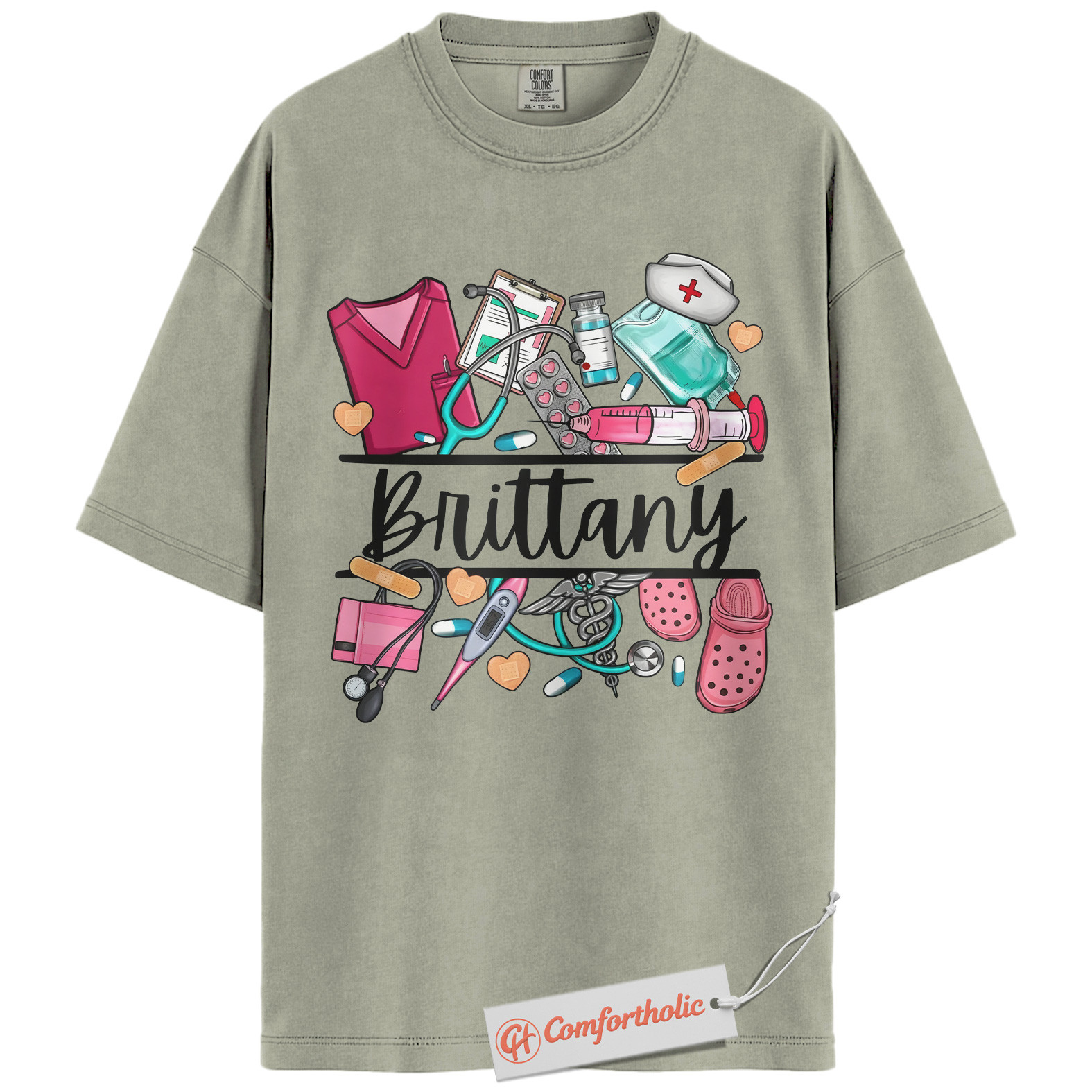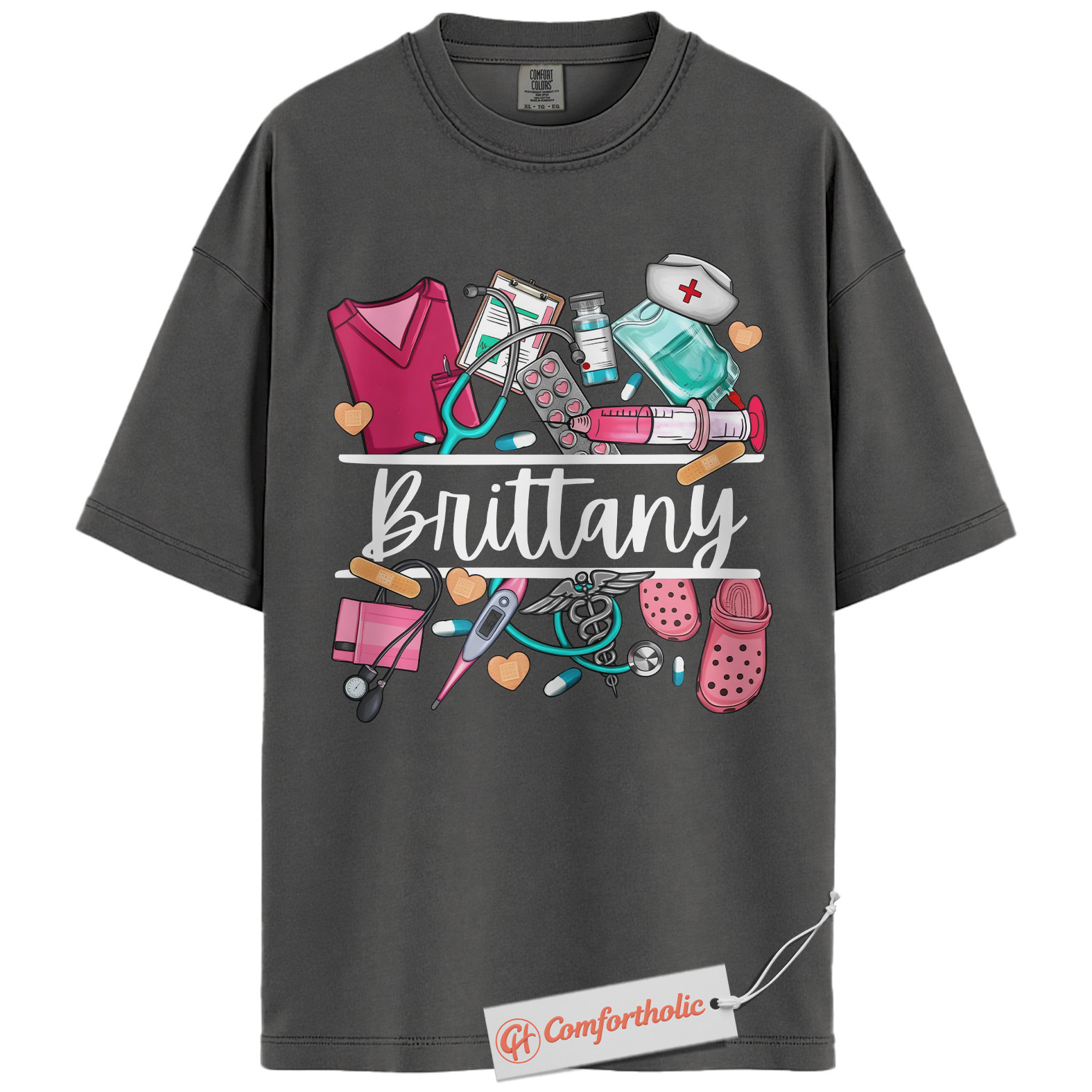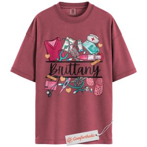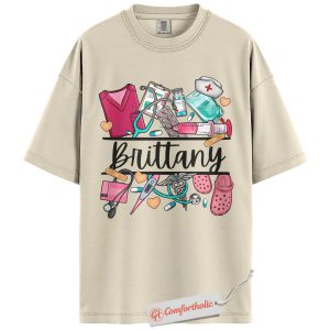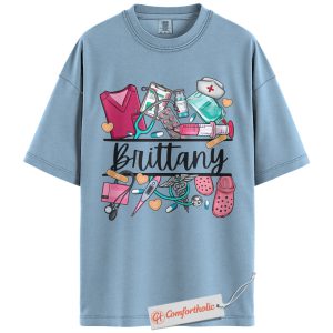 Custom Nurse Name Shirt, Personalized Medical Worker T-Shirt, Cute Healthcare Graphic Tee, Gift for Nurses and CNAs, RN Comfort Colors Shirt