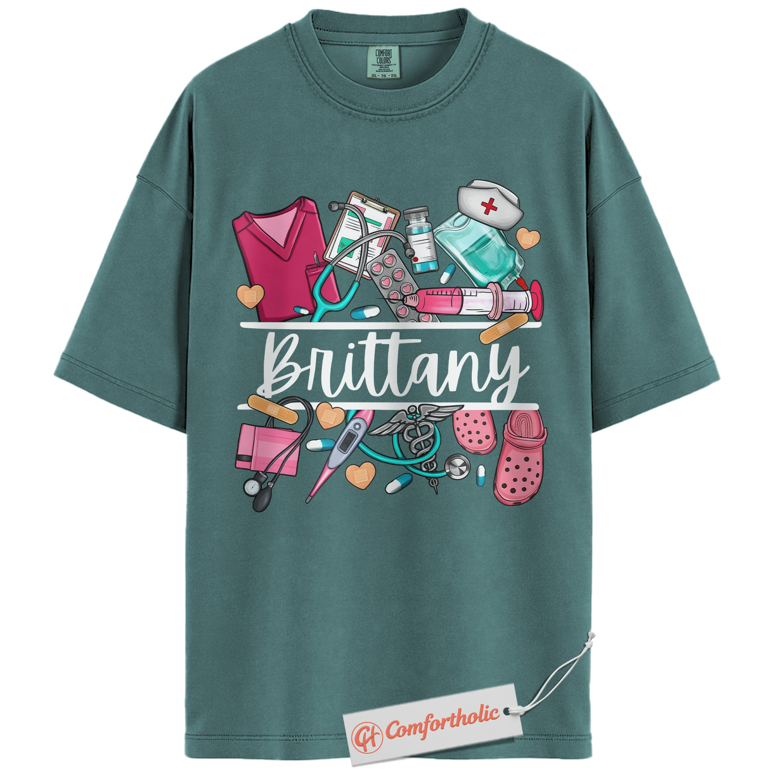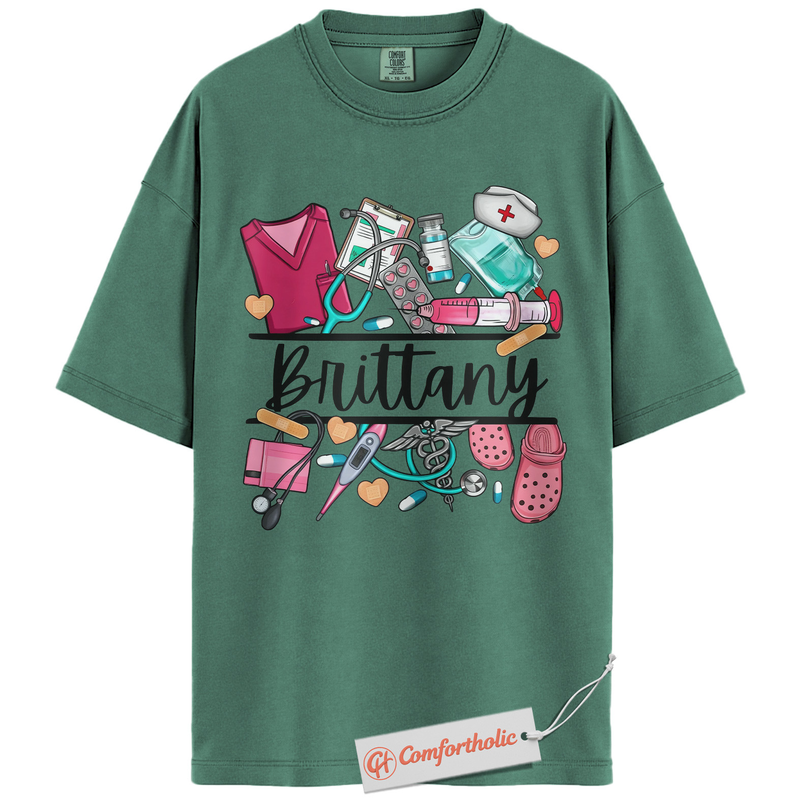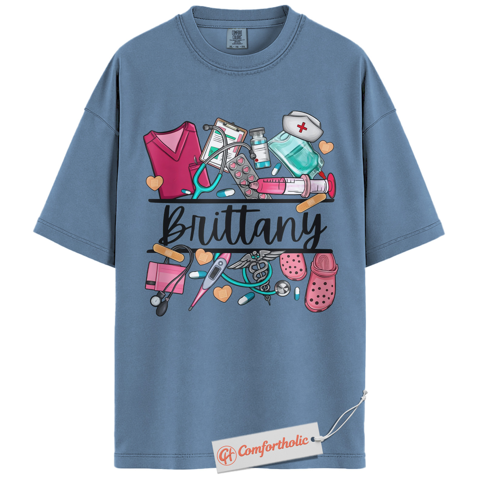 Custom Nurse Name Shirt, Personalized Medical Worker T-Shirt, Cute Healthcare Graphic Tee, Gift for Nurses and CNAs, RN Comfort Colors Shirt