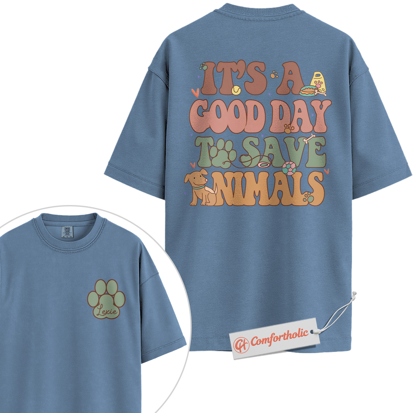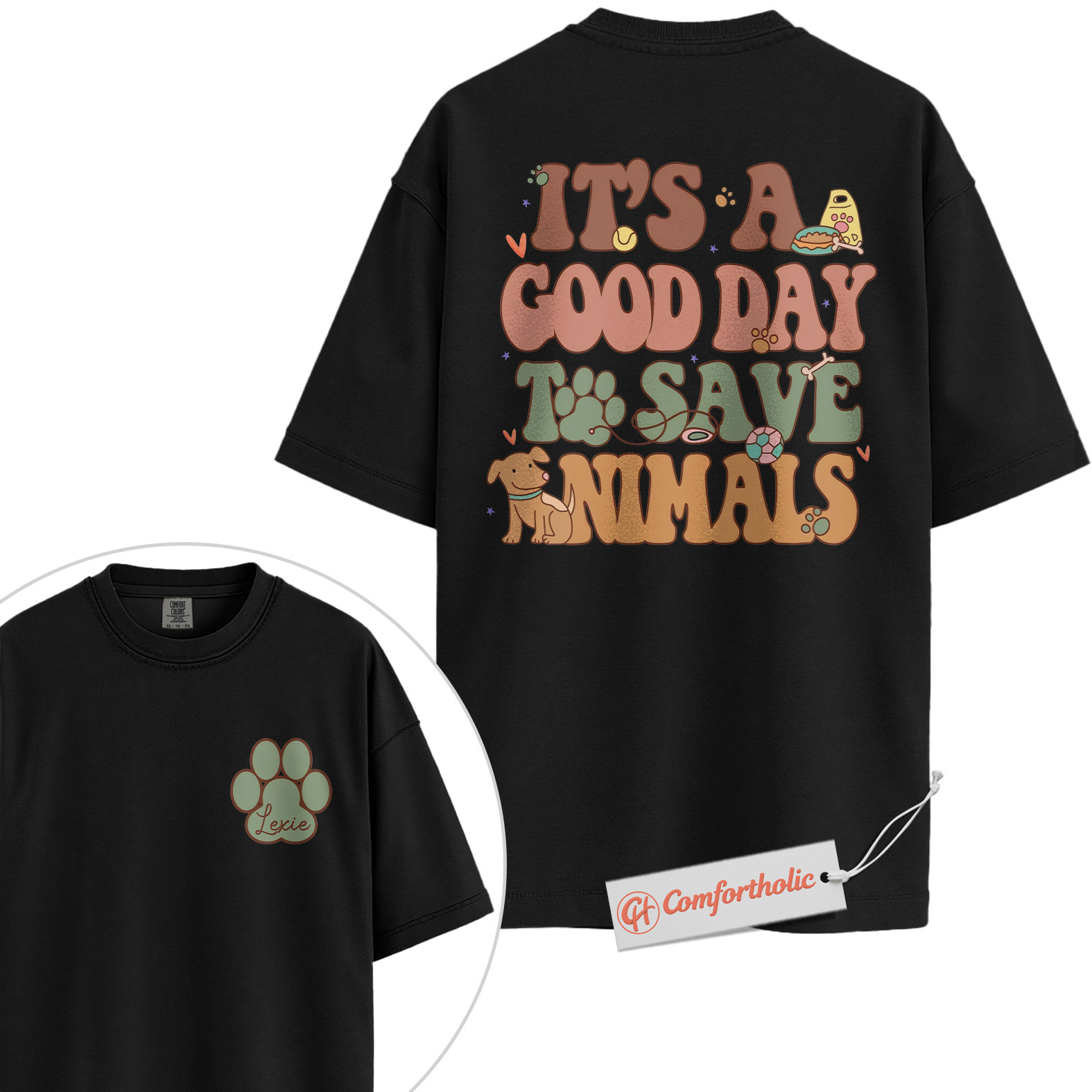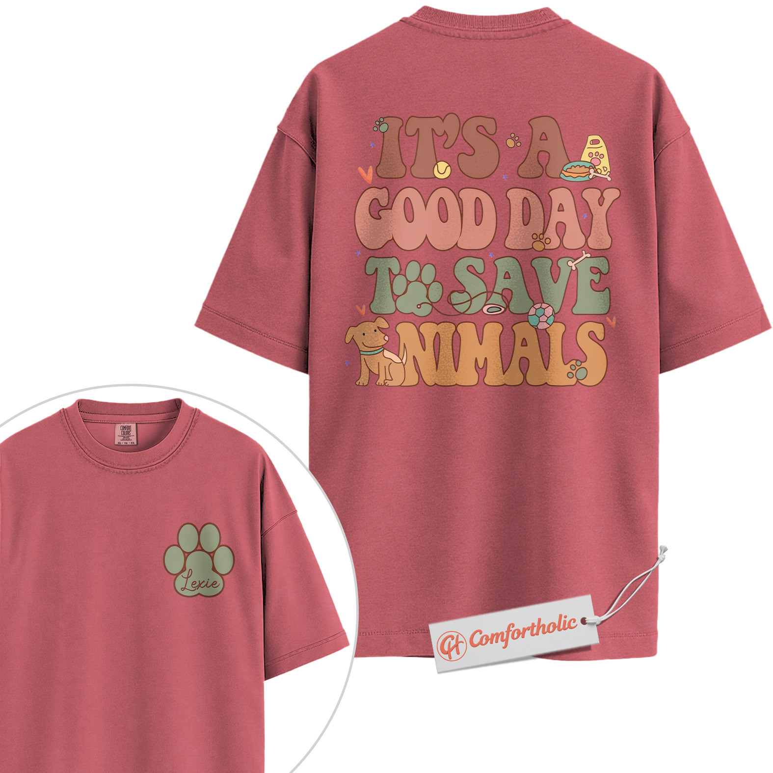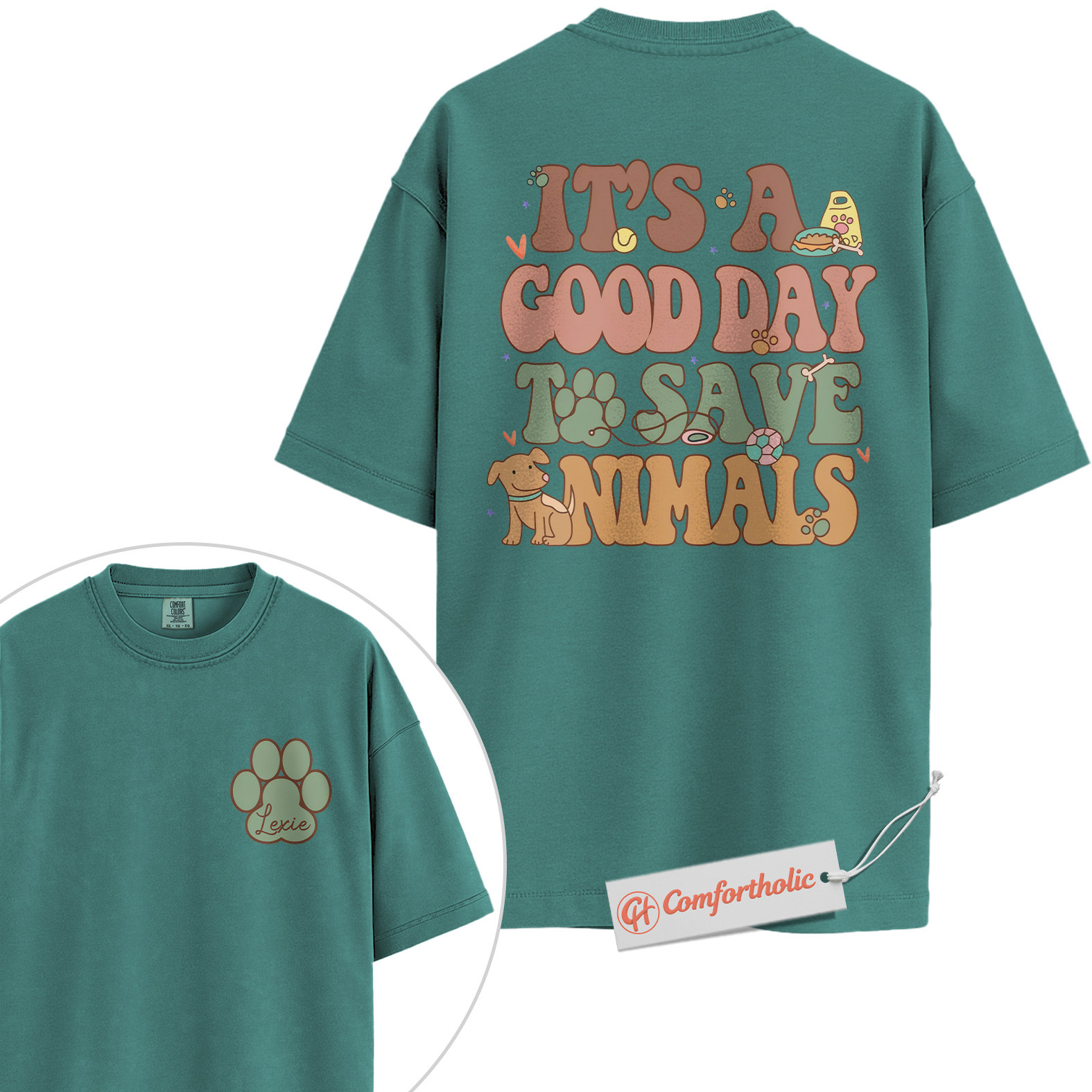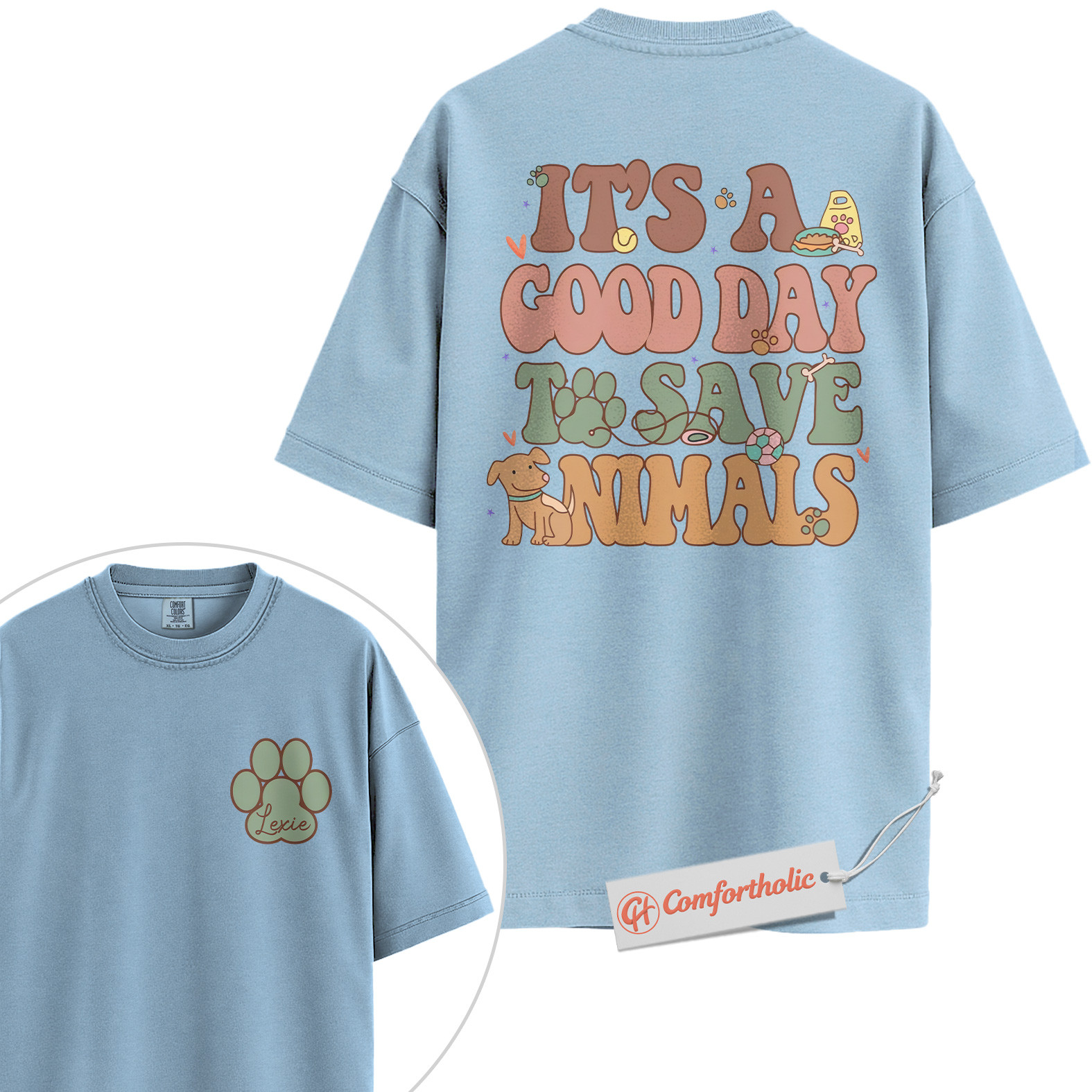 Custom Vet Tech Shirt, It’s a Good Day to Save Animals T-Shirt, Cute Rescue Pet Graphic Tee, Personalized Veterinary Technician Comfort Colors Shirt 2-Sided